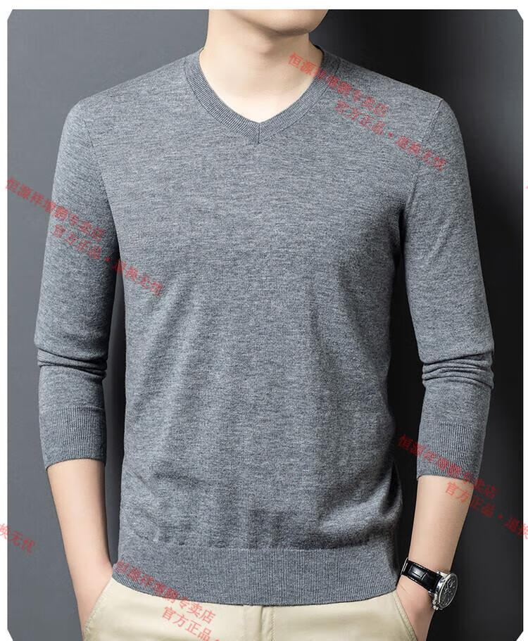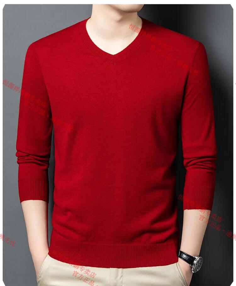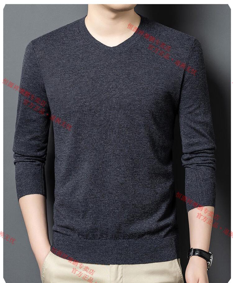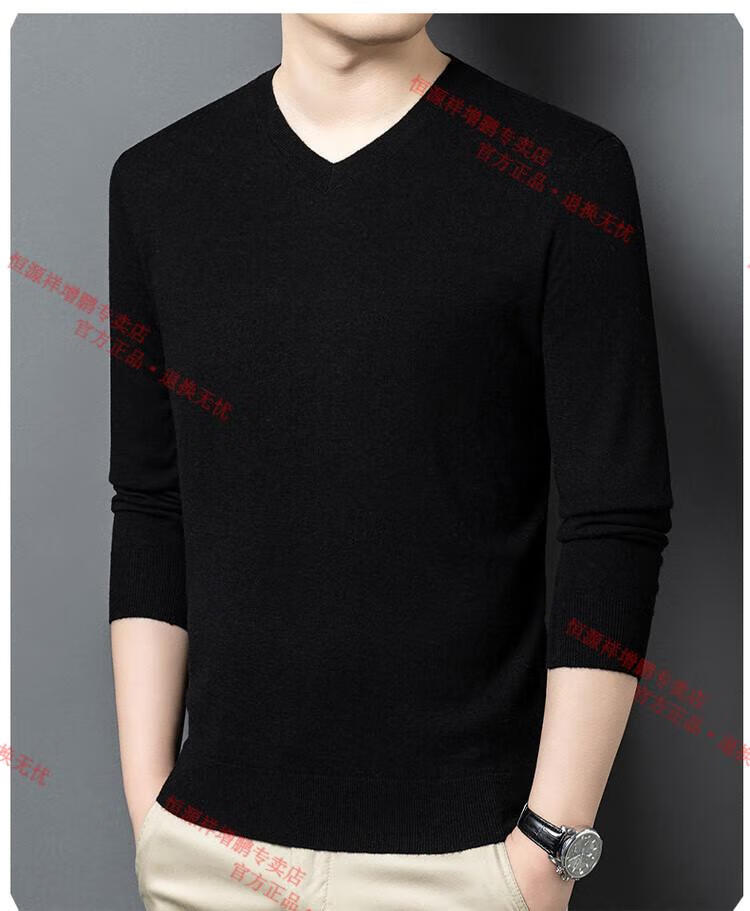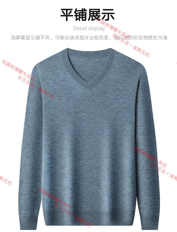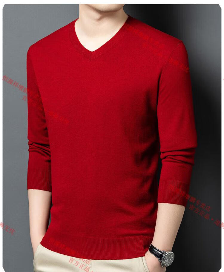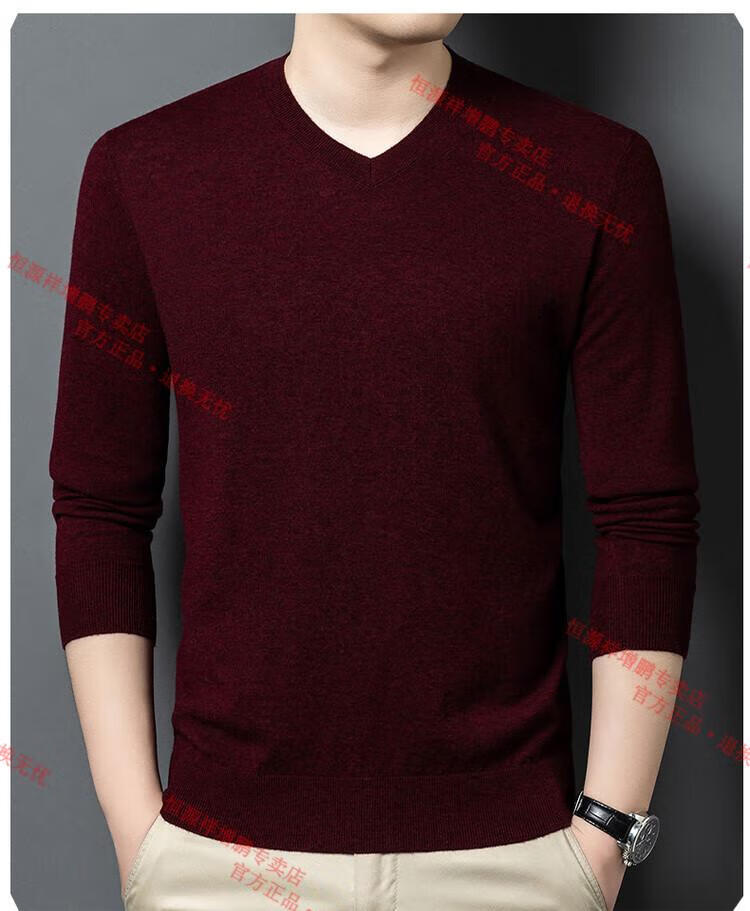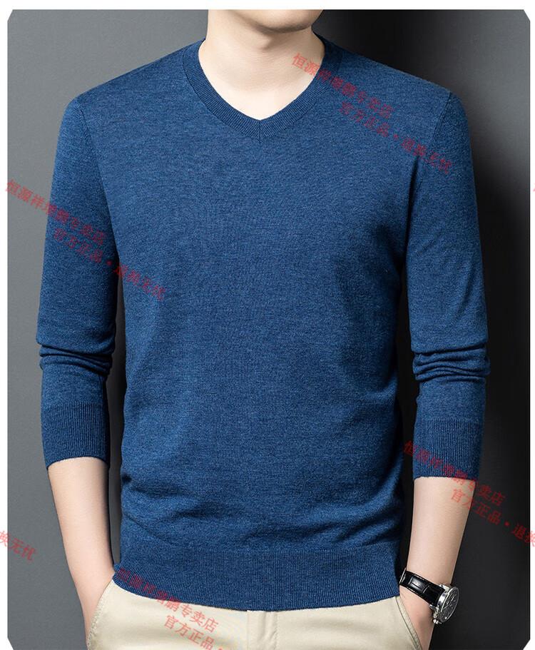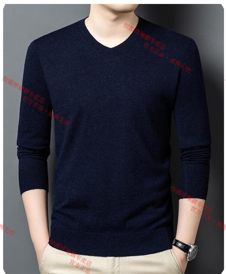 Hengyuanxiang high-end thin worsted wool sweater for men 100% pure wool autumn and winter V-neck solid color sweater knitted base fleece sweater camel M 165