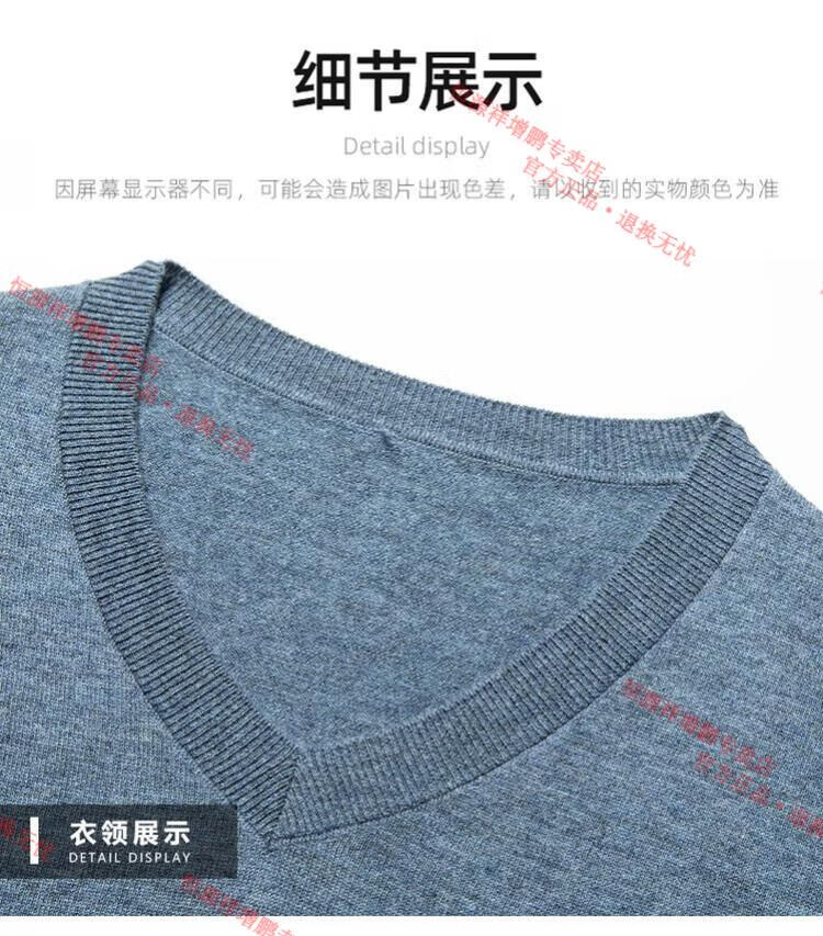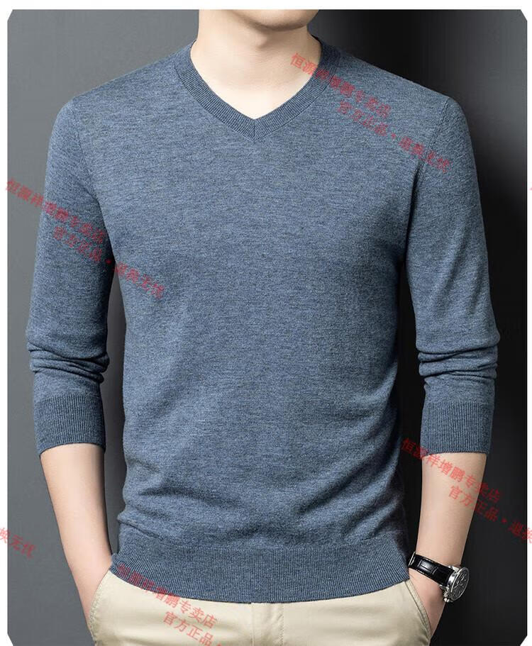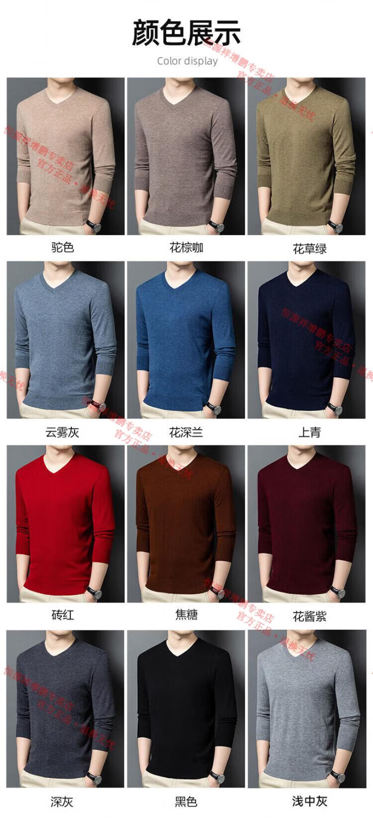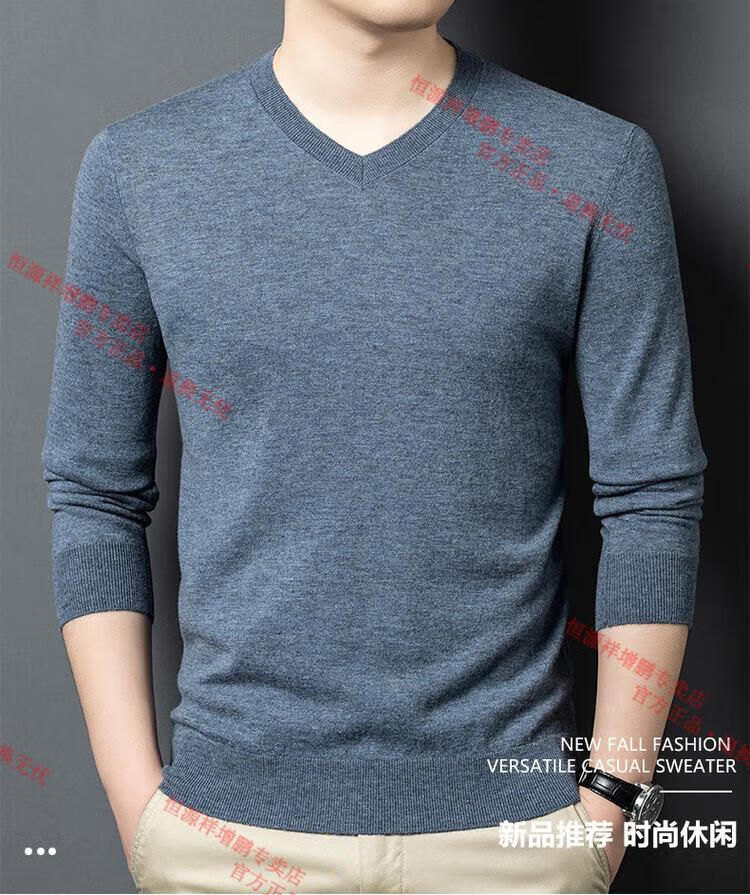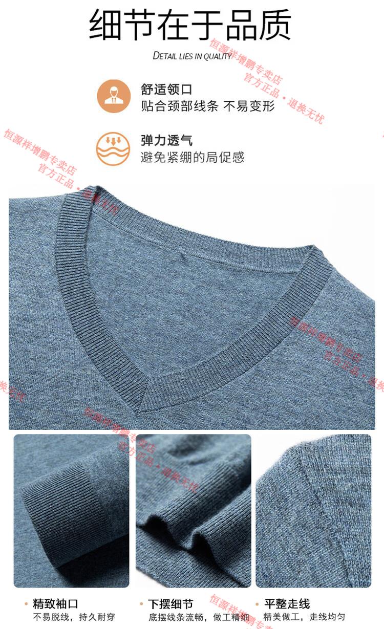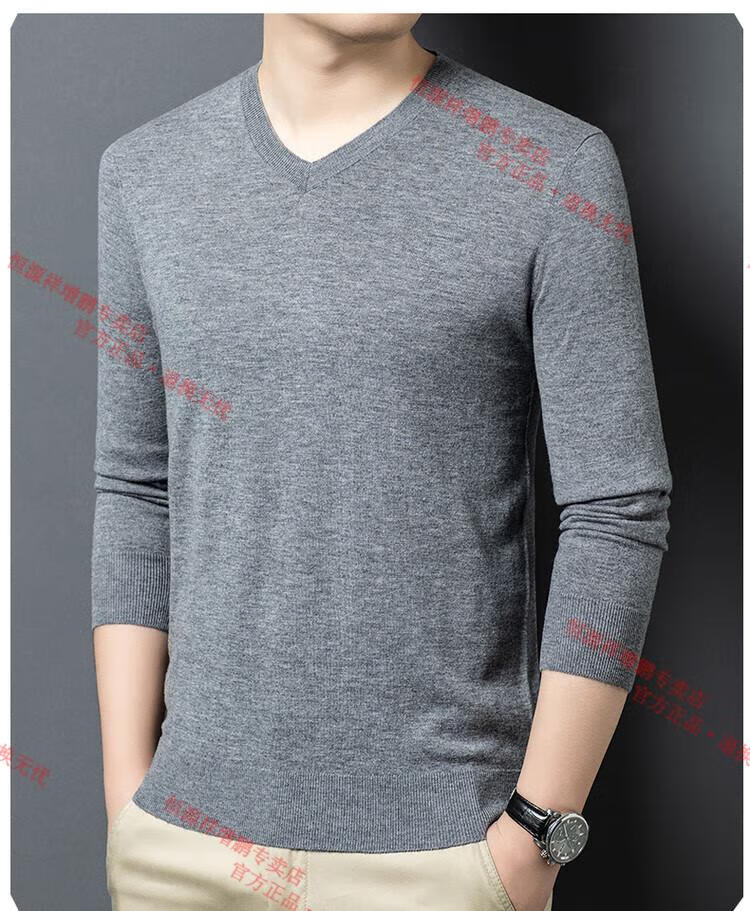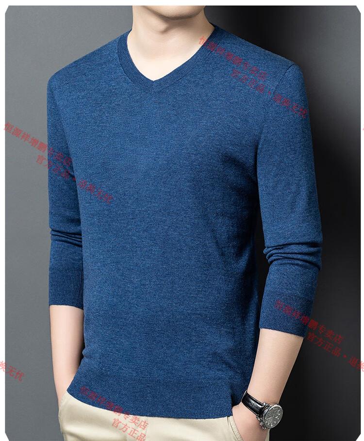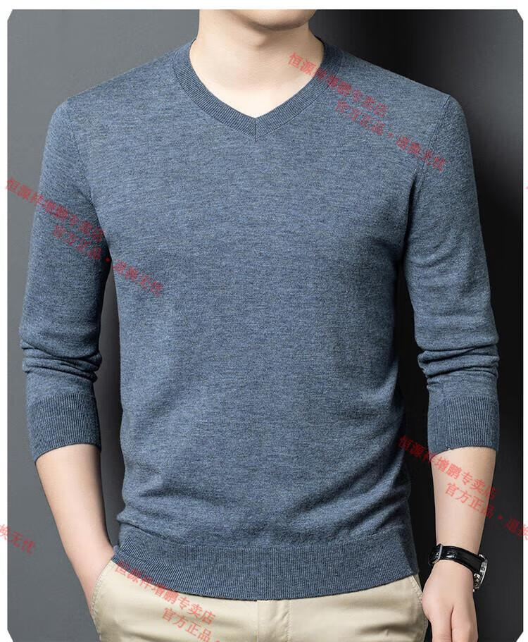 Hengyuanxiang high-end thin worsted wool sweater for men 100% pure wool autumn and winter V-neck solid color sweater knitted base fleece sweater camel M 165