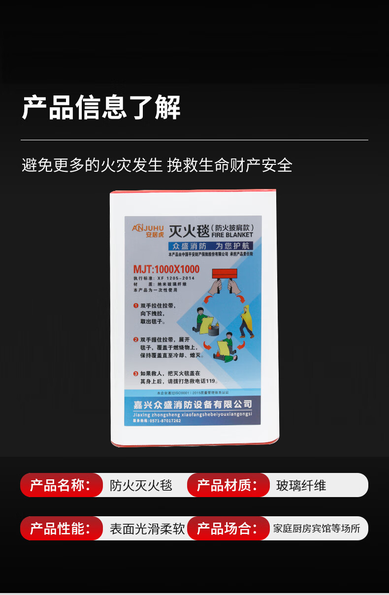 Anjuhu Fiberglass Fire Blanket Fire Blanket Kitchen Fireproof Fire Escape is Not Easy to Prick Fire Blanket