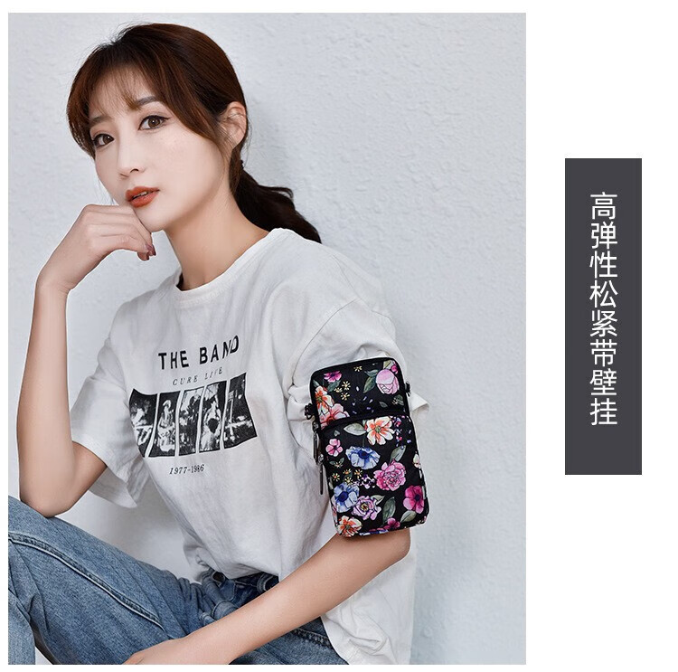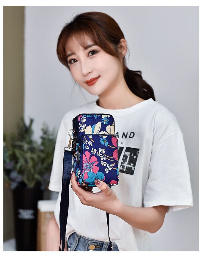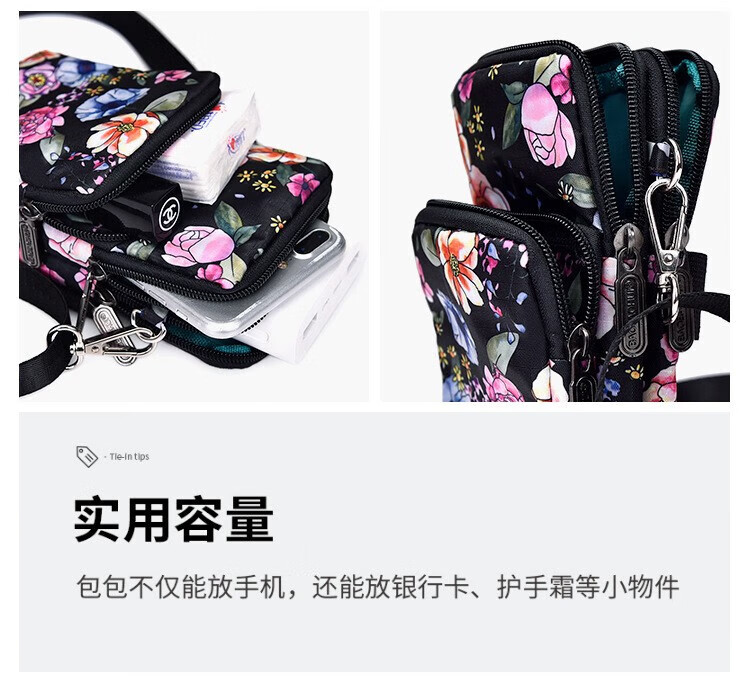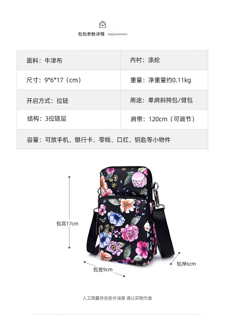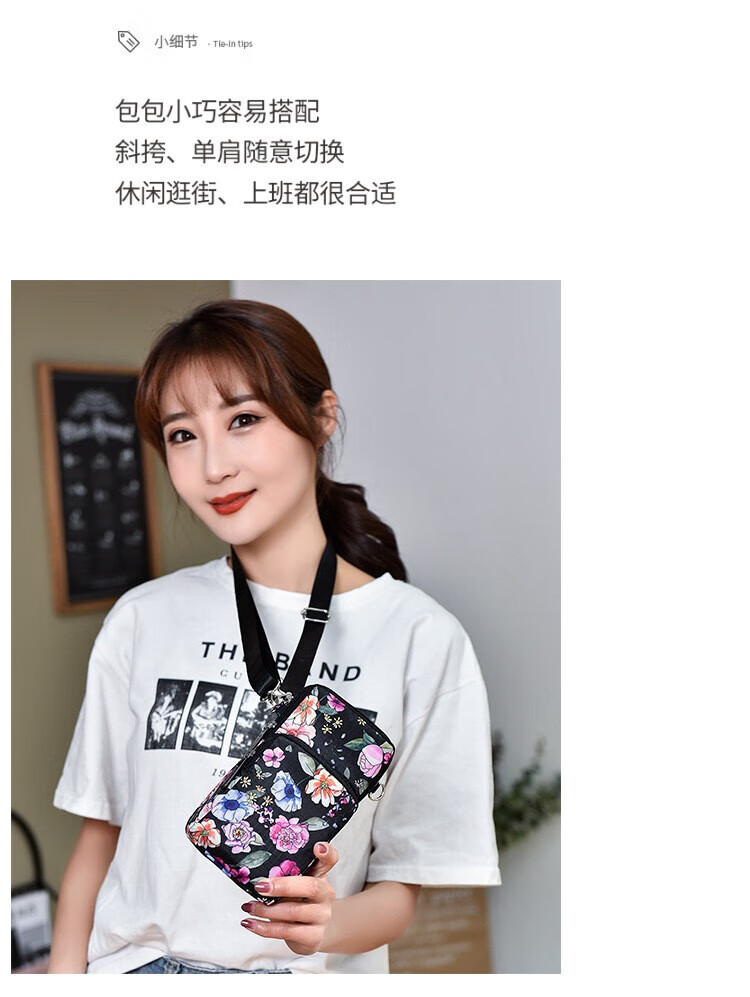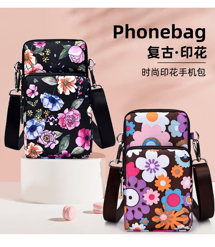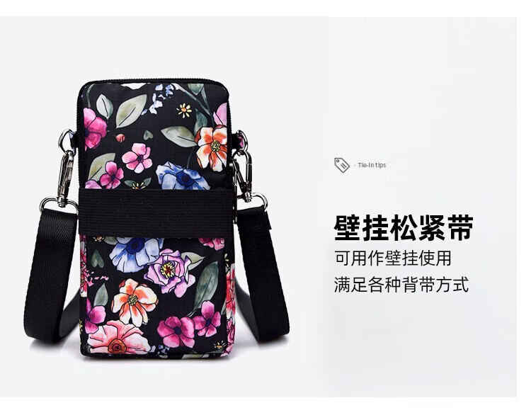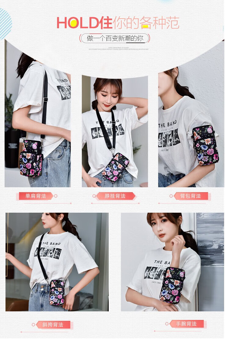 OEMG new mobile phone bag women's mini bag shoulder crossbody bag wrist coin purse casual sports dancing forearm bag black flower language