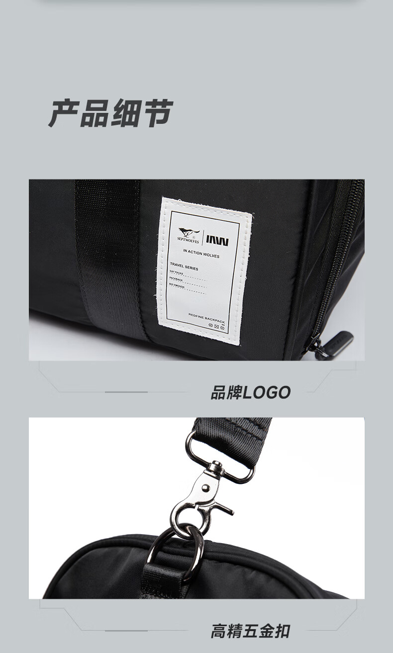 Septwolves travel bag men's short-distance business trip cross-body luggage bag 2025 new portable large-capacity travel boarding bag black (small size + mobile phone arm bag)