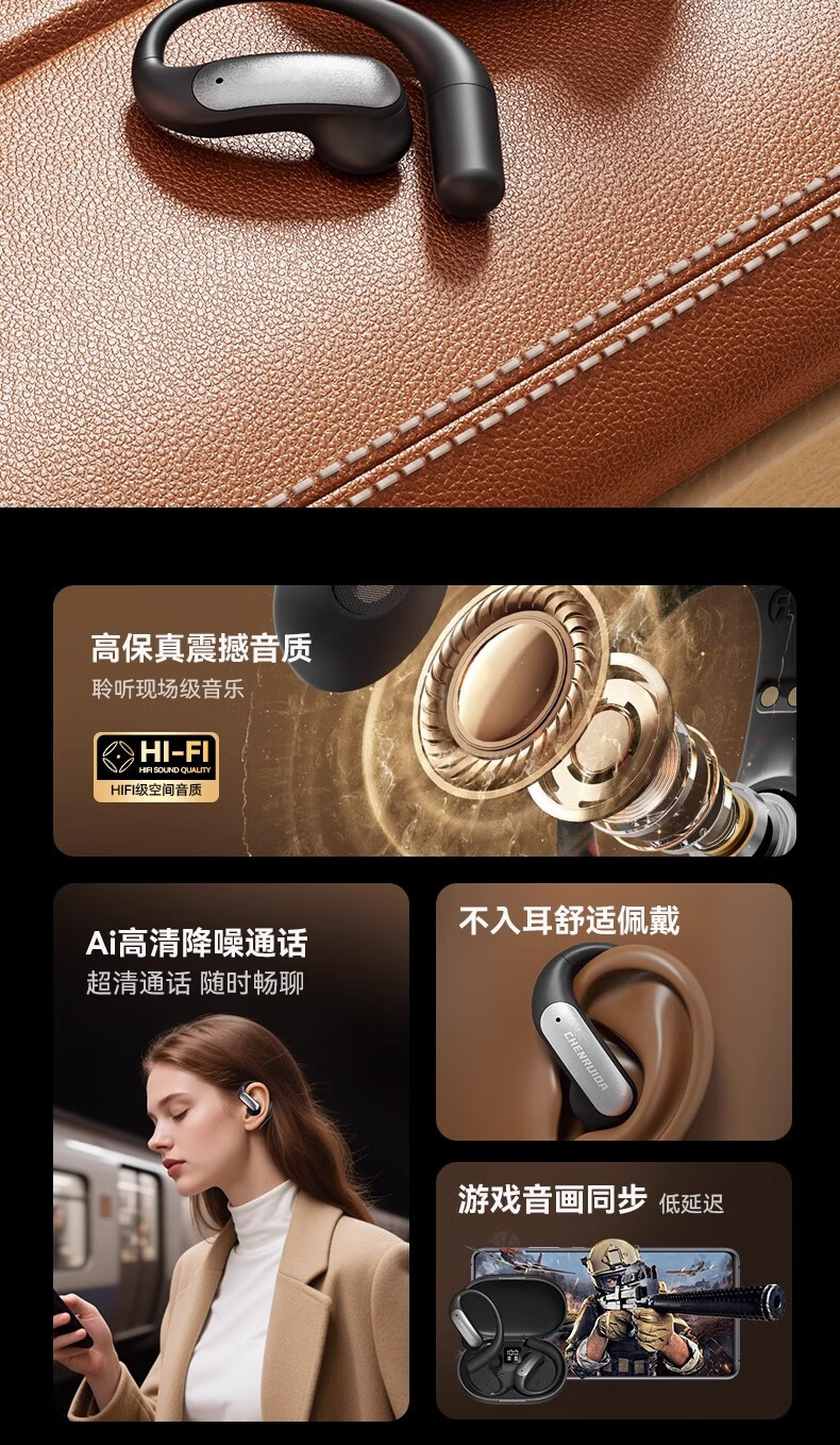 Chengruida Voice of Berlin 2025 latest wireless Bluetooth headset with ultra-long battery life, ear-mounted smart body, deep noise reduction, Huaqiangbei headphone list, top ten music gold list, No. 1 M127 Qianse-Supreme Edition | ACS sound effect | doubled battery life upgrade, high-fidelity noise reduction core | no sound leakage during sports