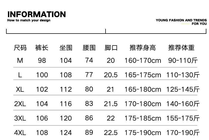 Outseam (cm) 99 cm 101.5 cm 104 cm 106.5 cm 109 cm