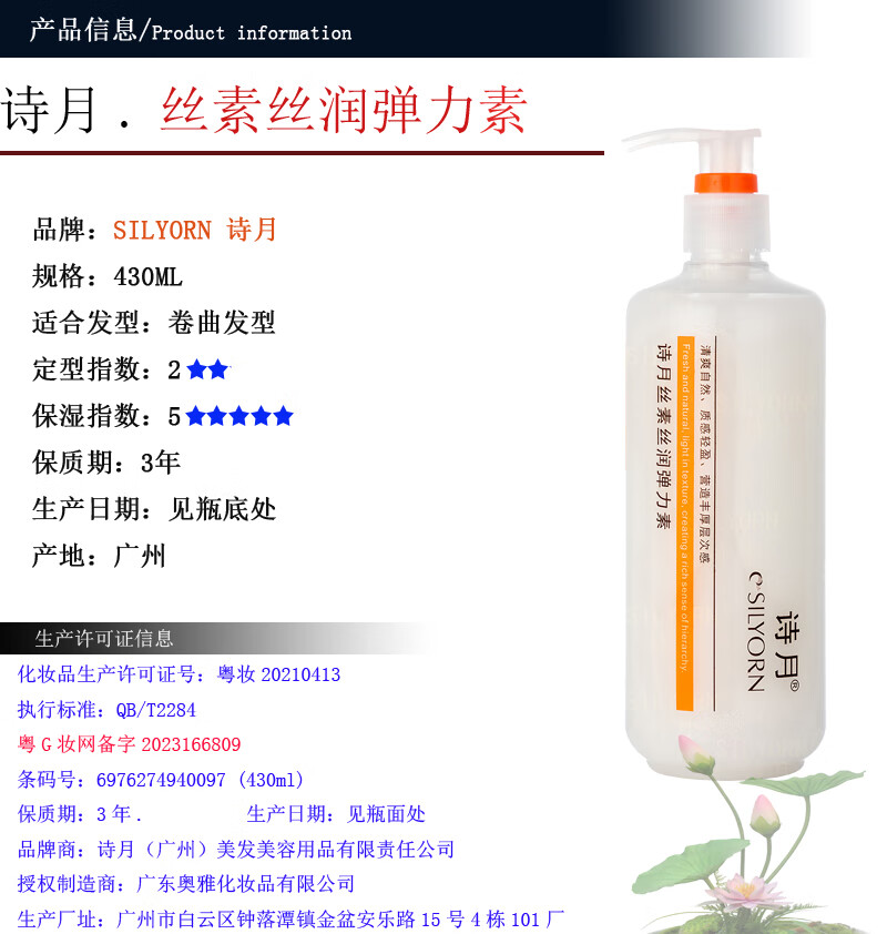 Shiyue Silk Moisturizing Elastin Curly Moisturizing Soft Styling Elasticity Dynamic Fluffy Curly Hair Styling Milk 250ml Silk Moisturizing Elastin 1 bottle