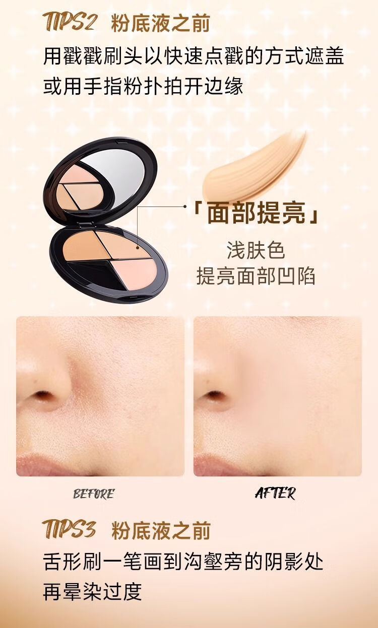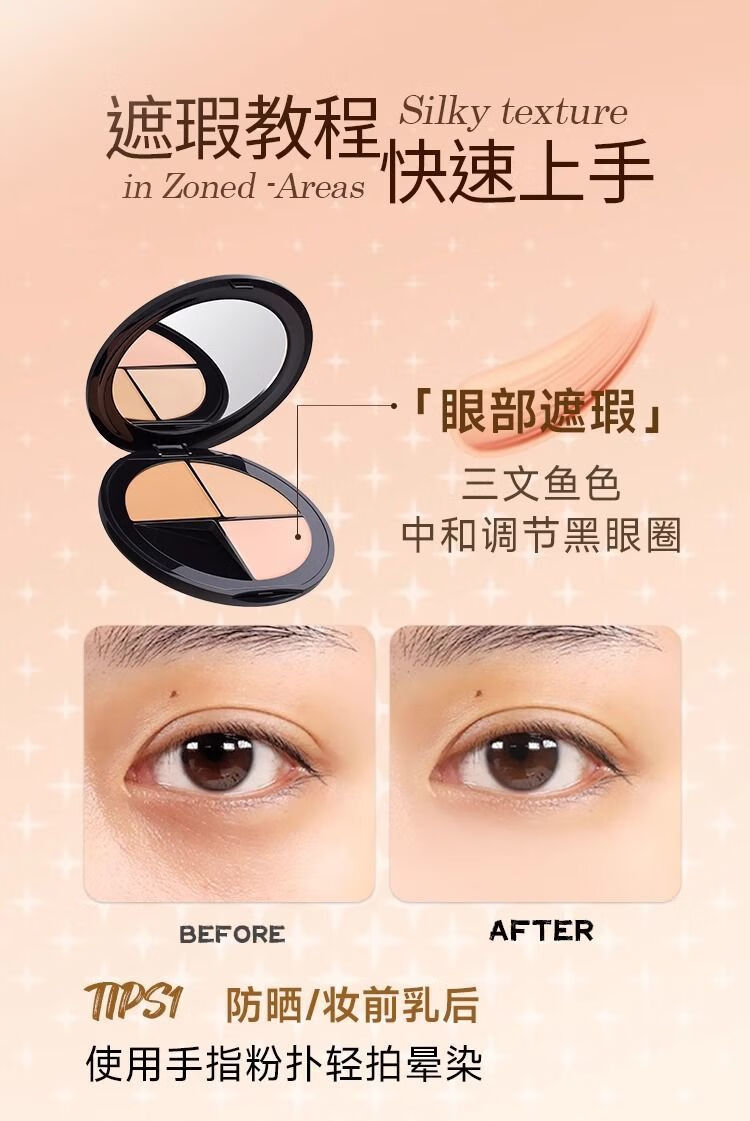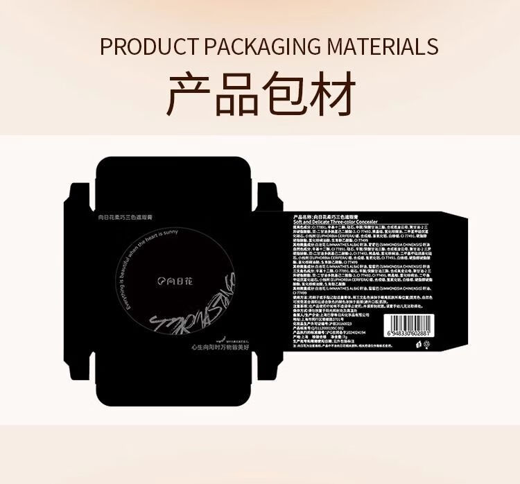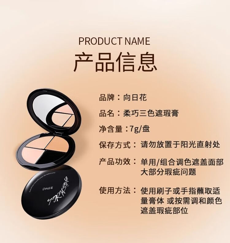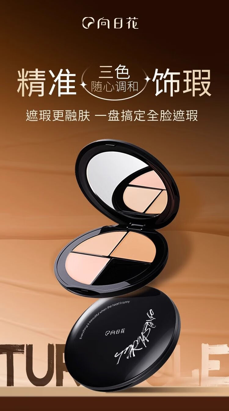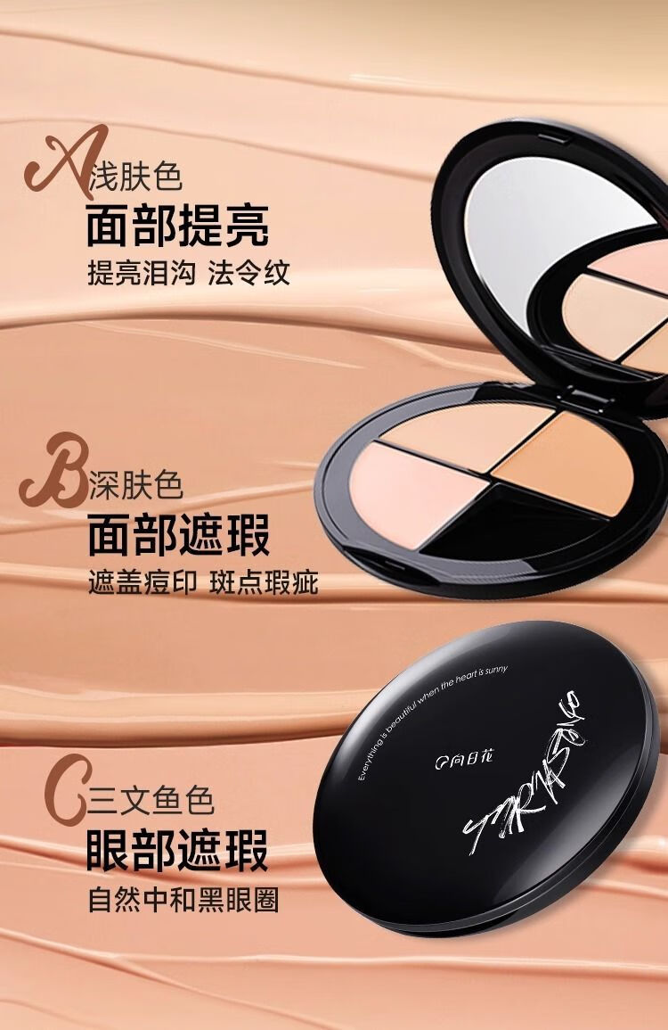 Sunflower Three-Color Concealer Palette Covers acne marks, spots, dark circles, tear troughs and nasolabial folds, fits and lasts long-lasting. Three-Color Concealer Palette/7g