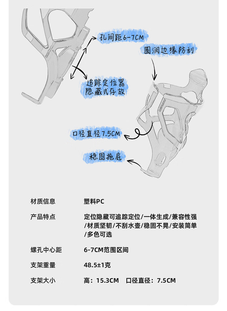 Bai Chao Ai Ruilun airtag bicycle water bottle rack mountain bike road bike riding water cup holder one-piece water bracket air tag water bottle rack white