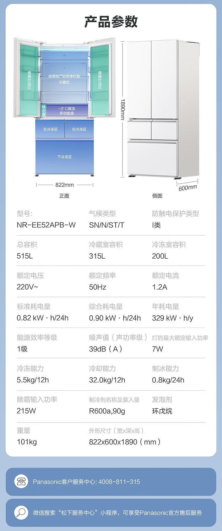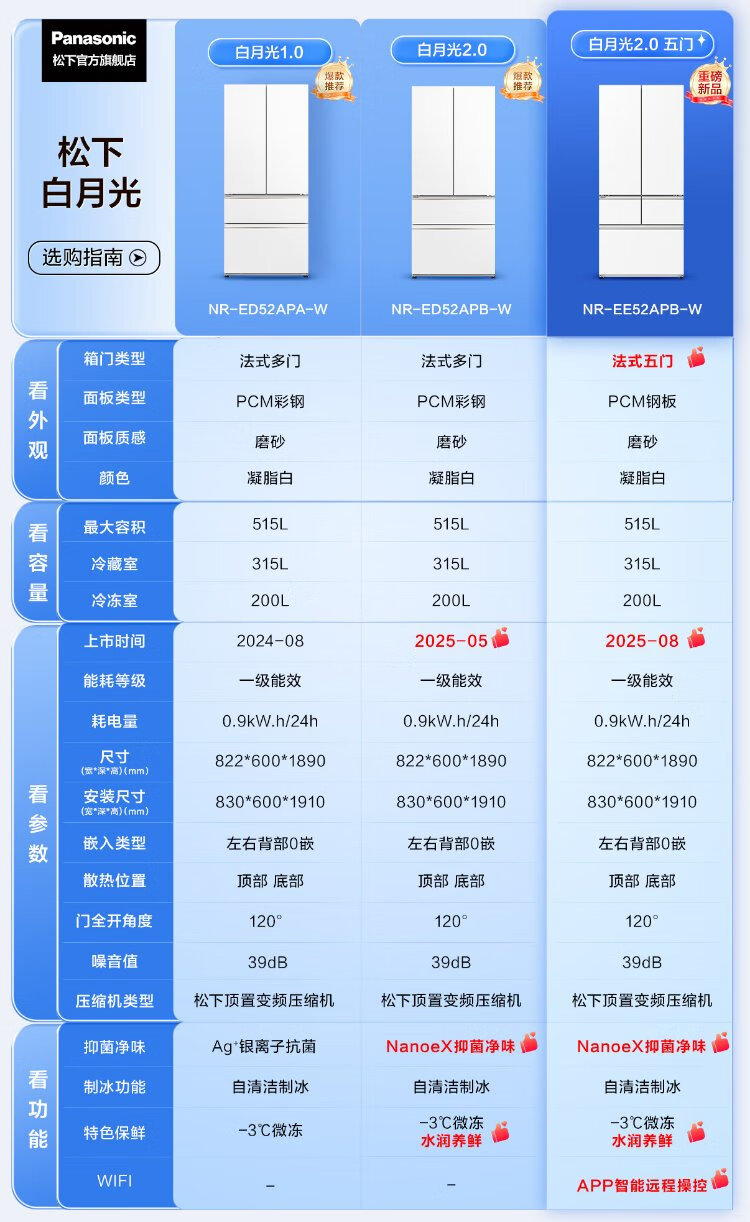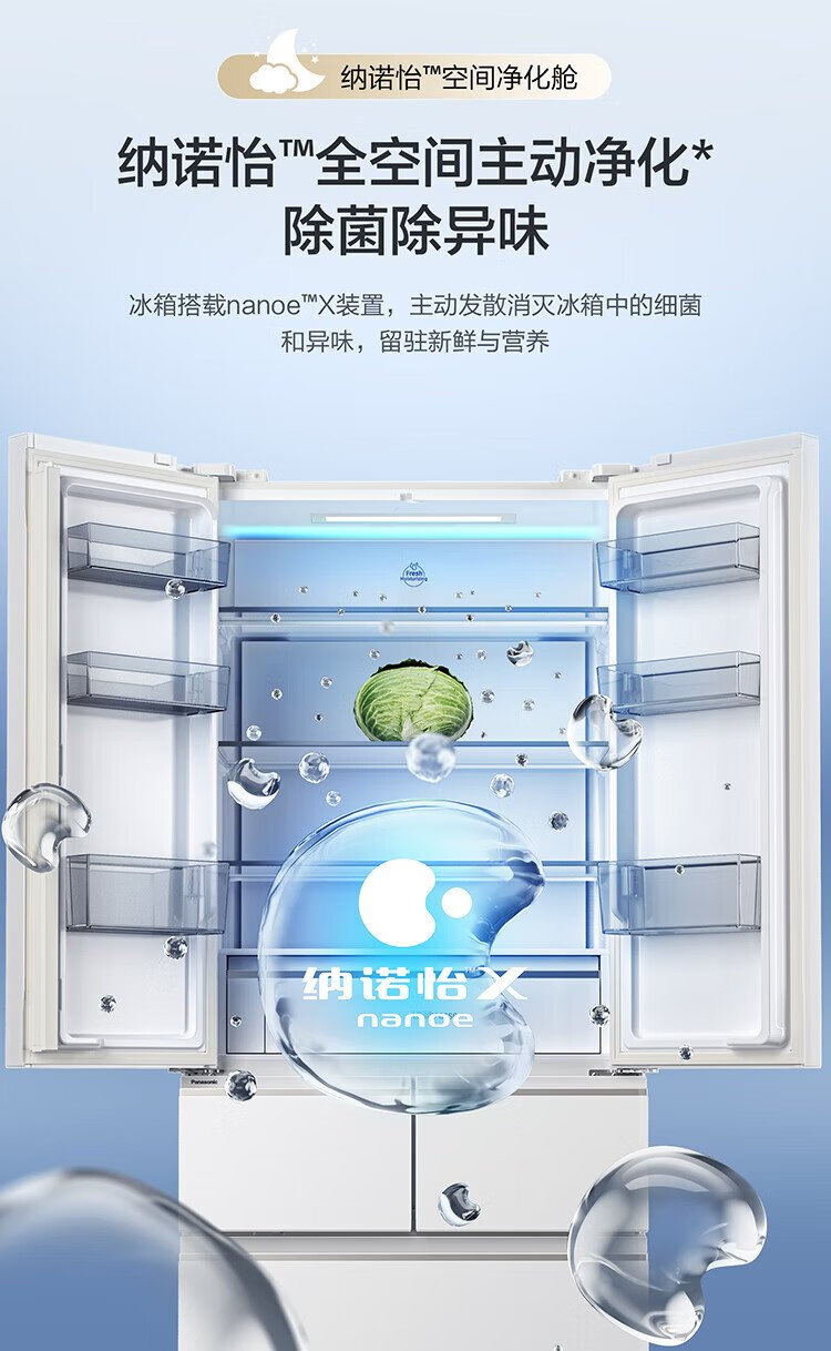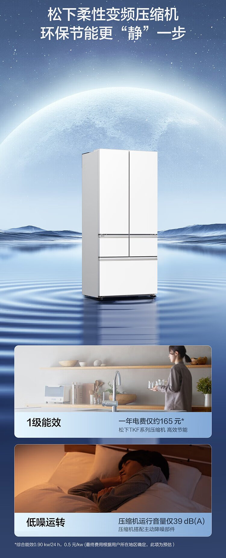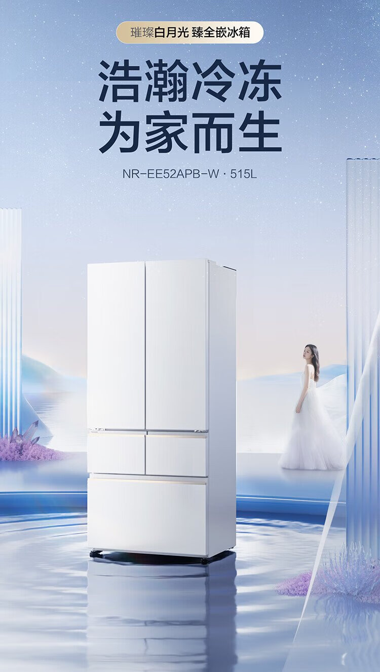 Panasonic's new subsidy White Moonlight 2.0 five-door refrigerator 515 French multi-door household ultra-thin zero-embedded frost-free automatic ice making first-level energy efficiency NR-EE52APB-W White Moonlight French 5-door | Nanoyi sterilization and odor + APP intelligent control