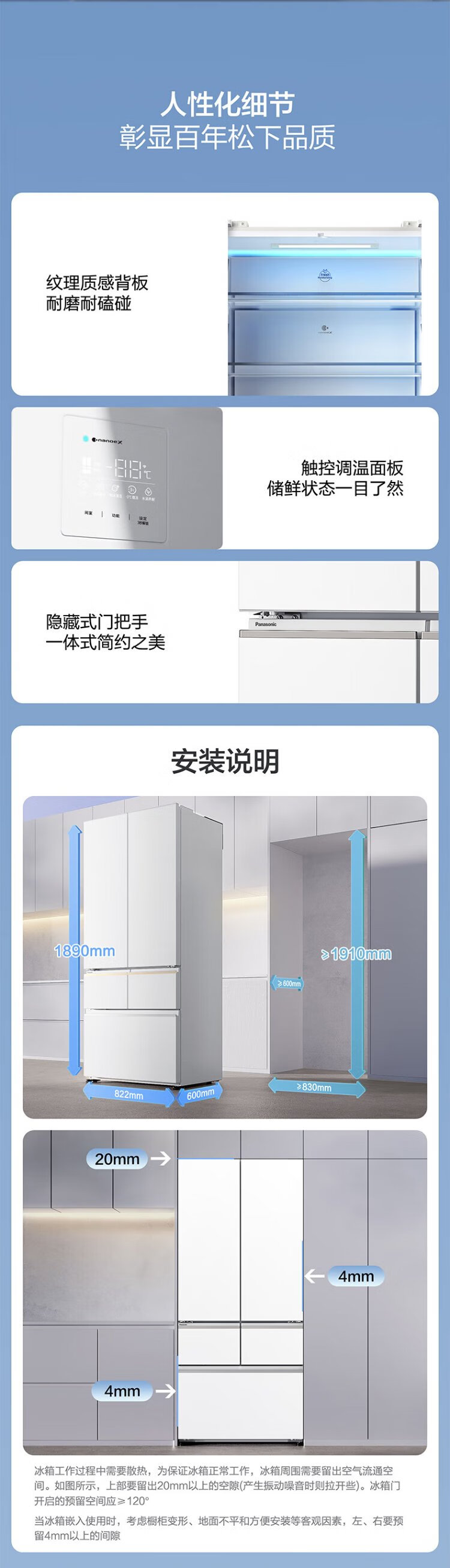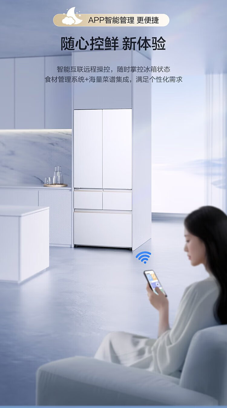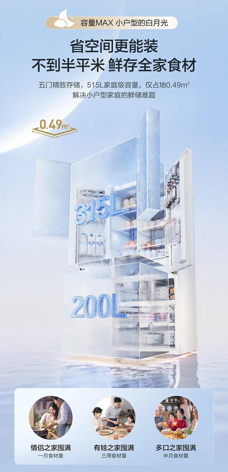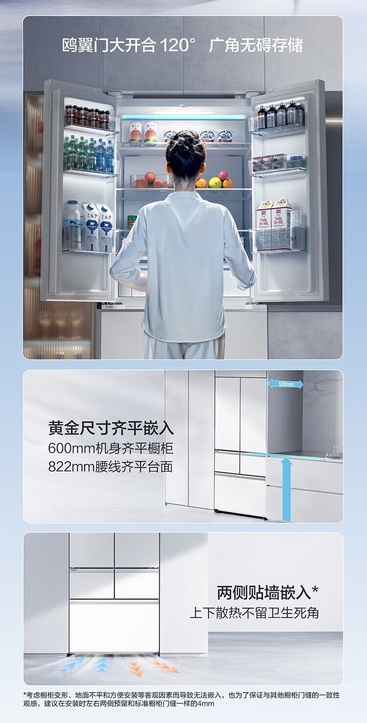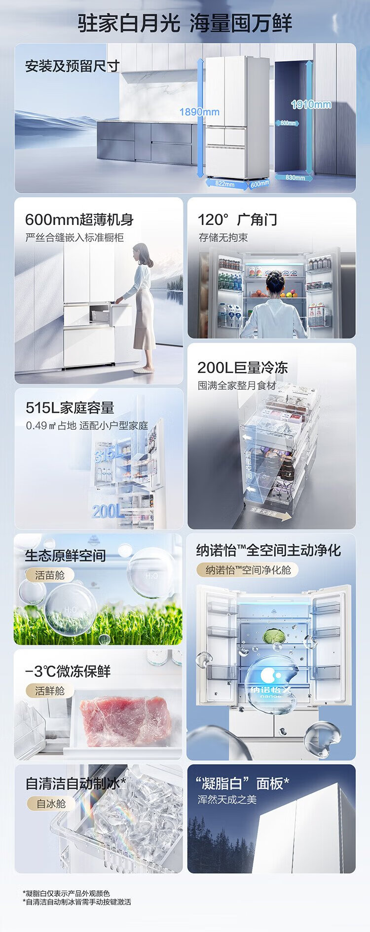 Panasonic's new subsidy White Moonlight 2.0 five-door refrigerator 515 French multi-door household ultra-thin zero-embedded frost-free automatic ice making first-level energy efficiency NR-EE52APB-W White Moonlight French 5-door | Nanoyi sterilization and odor + APP intelligent control