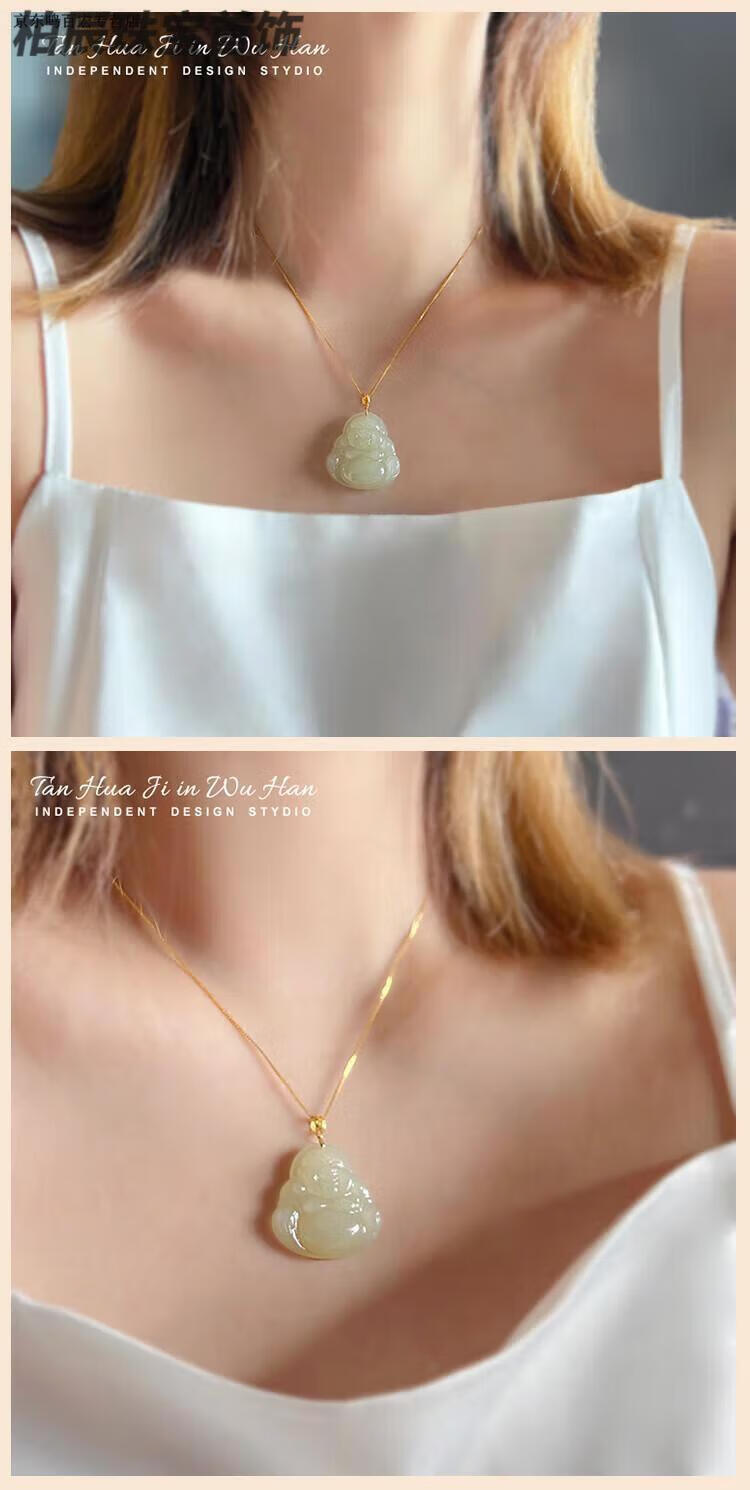 Bhiodha gold shop jade and field jade 18k gold necklace Maitreya Buddha male pendant jade jade Buddha hanging female laughing Buddha Gao Bingqing white pendant (18K gold button head) Lao Feng