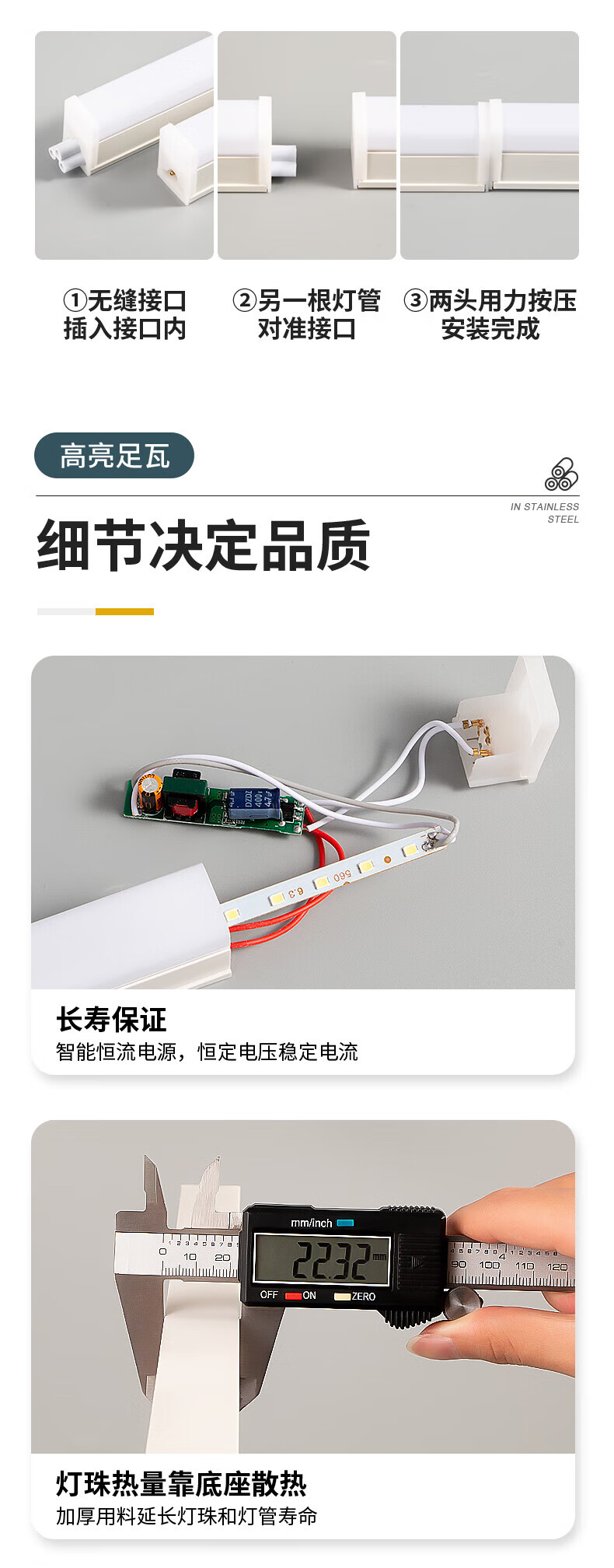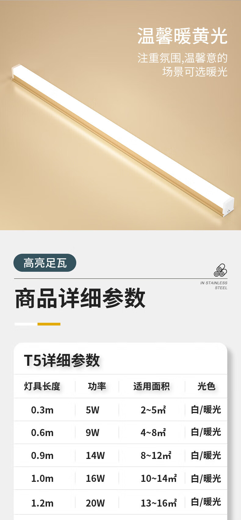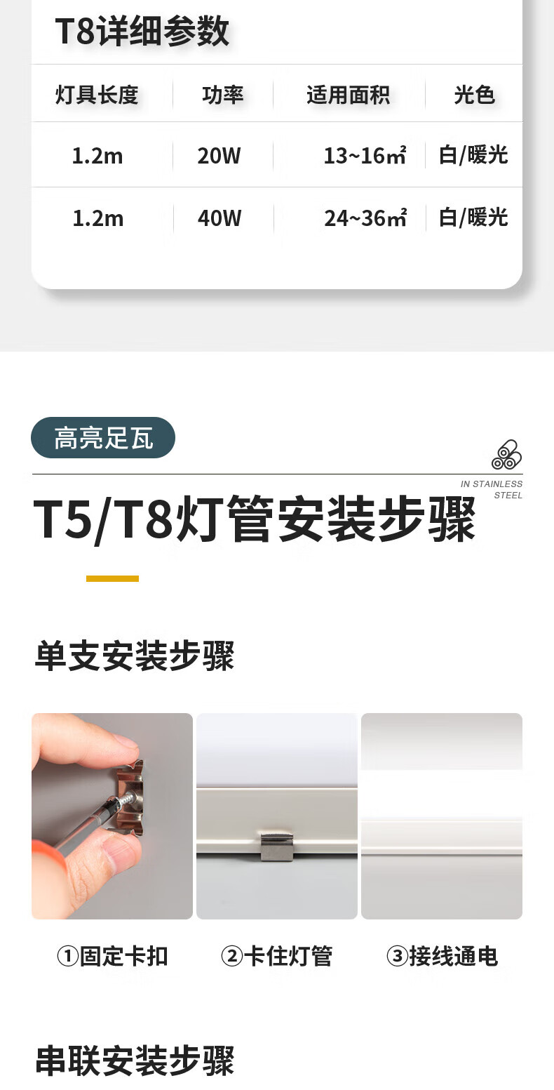 Le long strip light super bright t5 integrated full set of light holder 1.2m 40w ceiling strip T8 fluorescent lamp T5 special model 10 pieces - 1.2m 20W white light limited to 1 piece