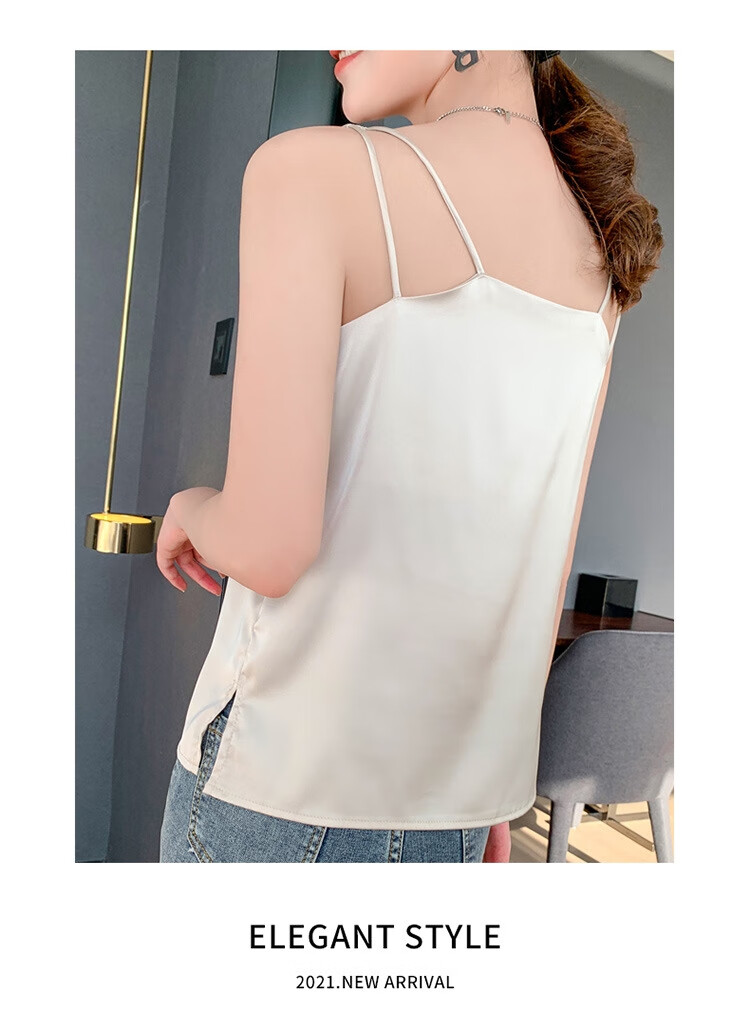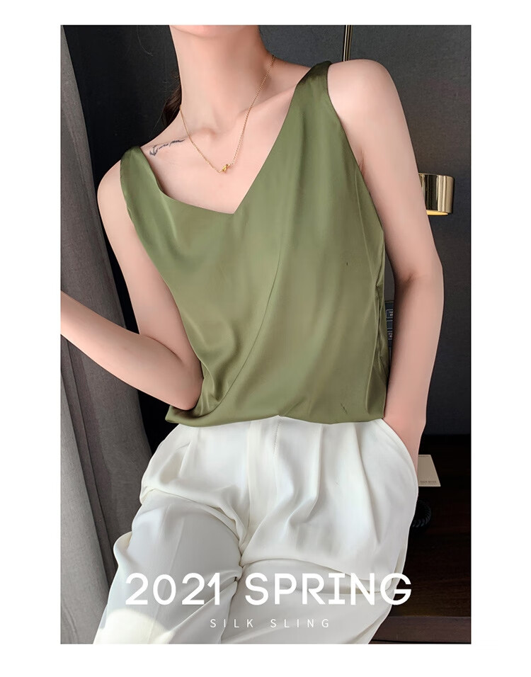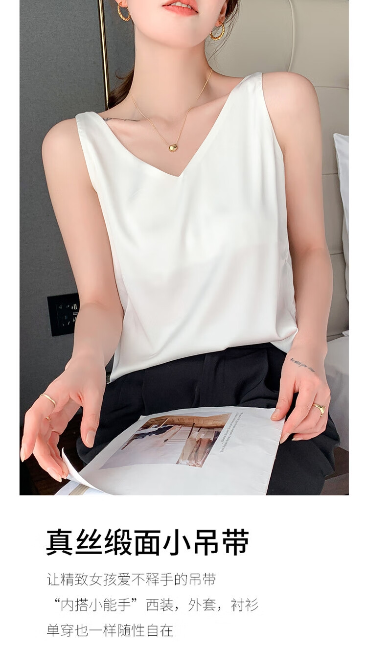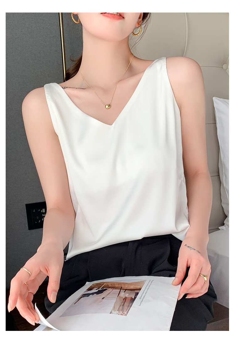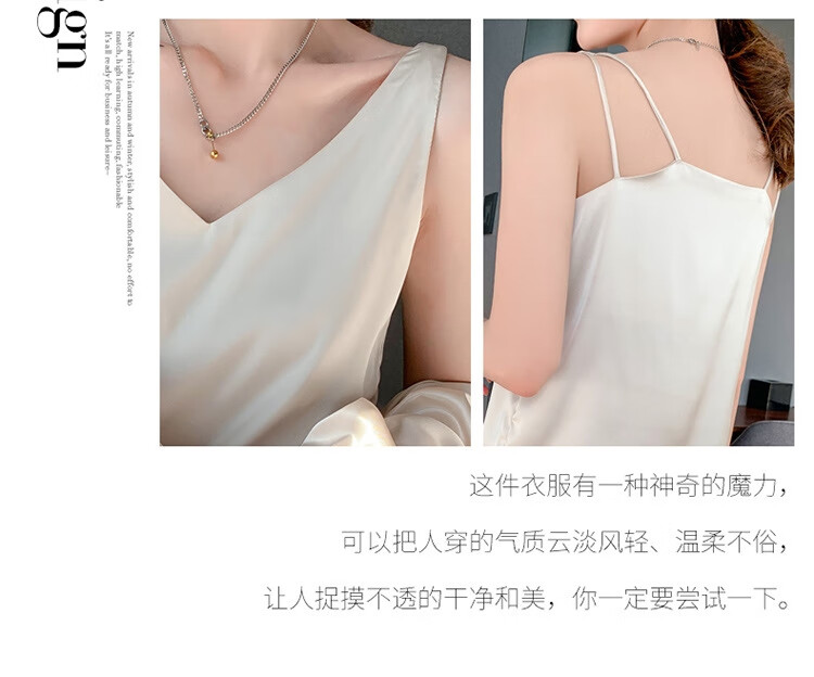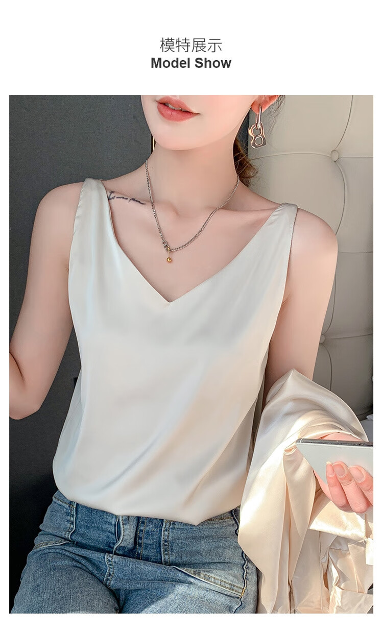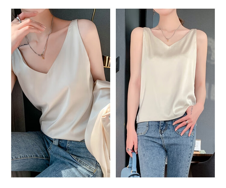 Silk Camisole Women's Summer V-neck Bottoming Satin Mulberry Silk Top Sexy Outerwear Large Size Champagne One Shoulder M
