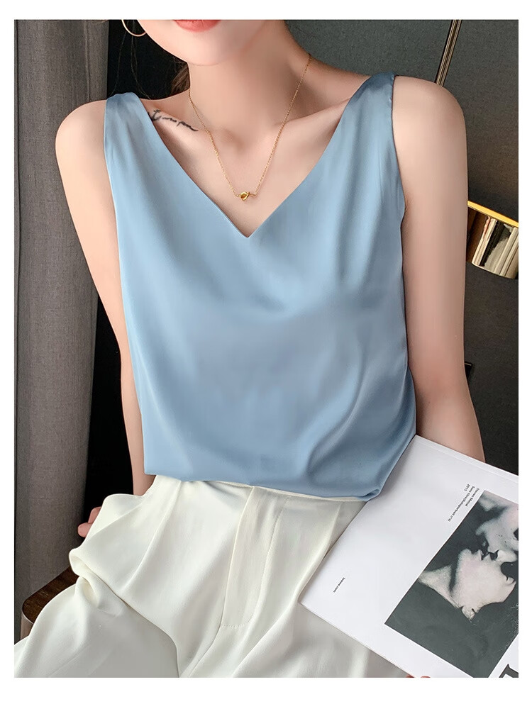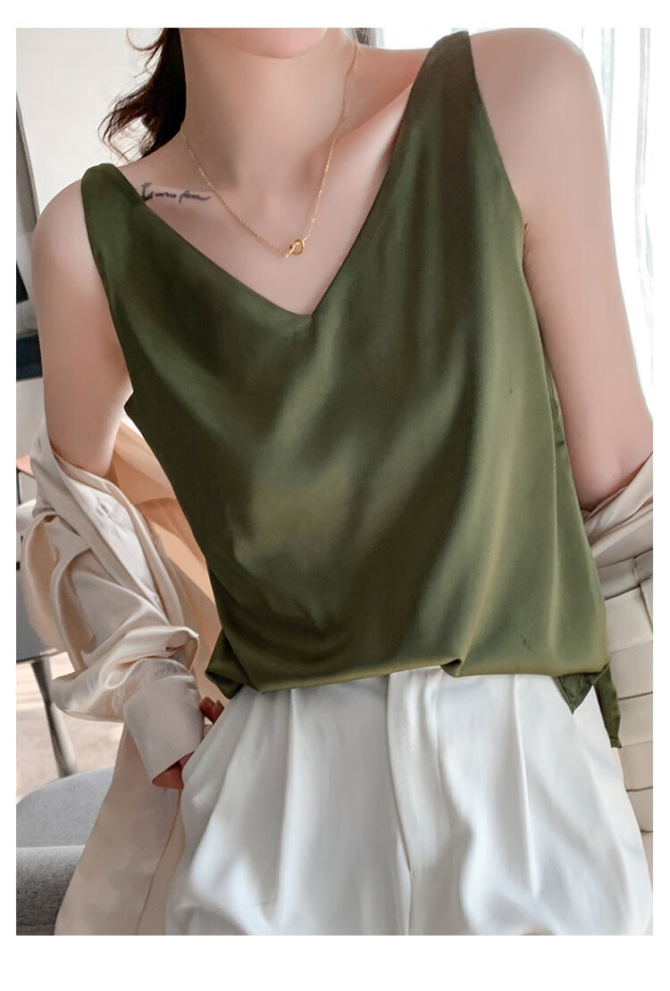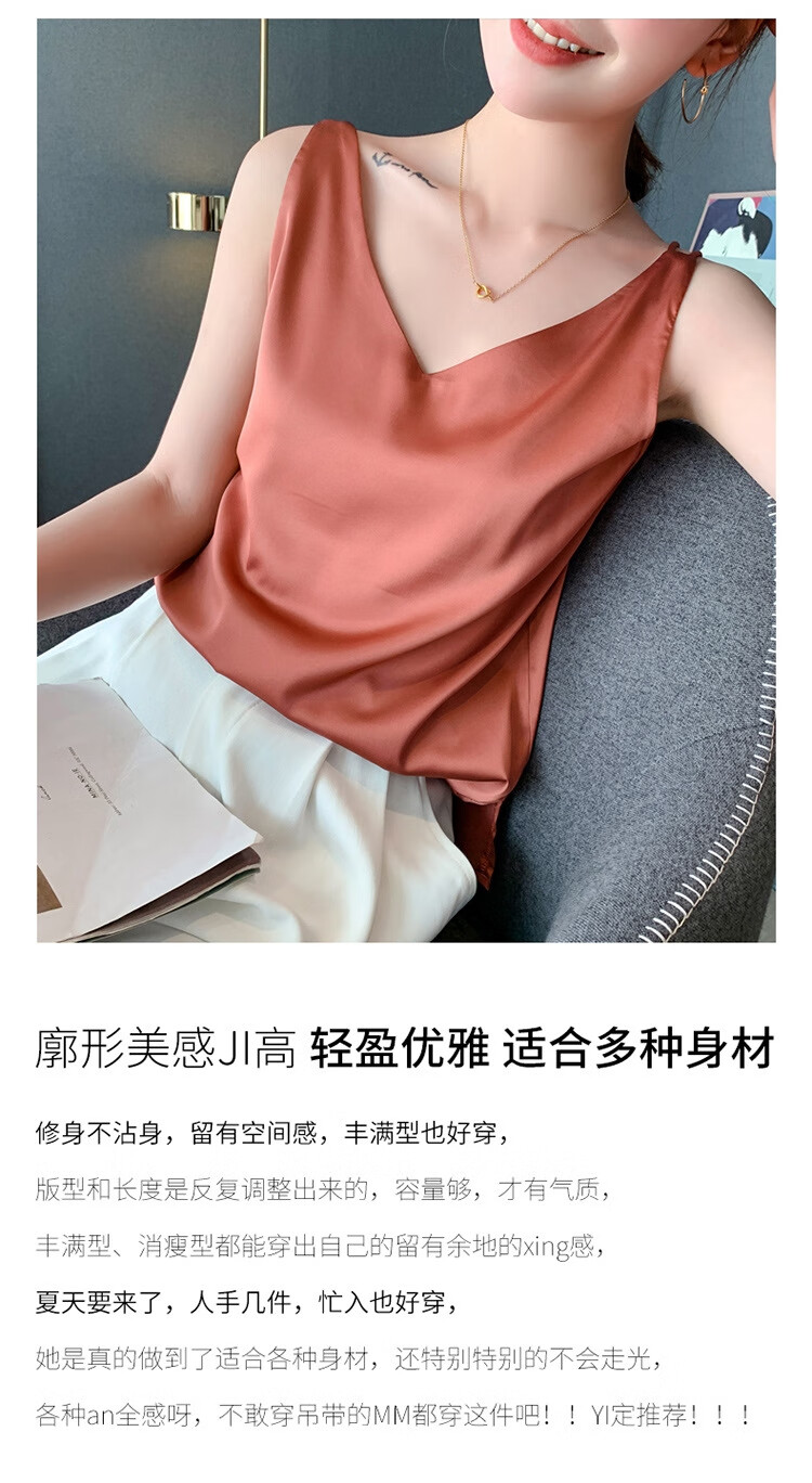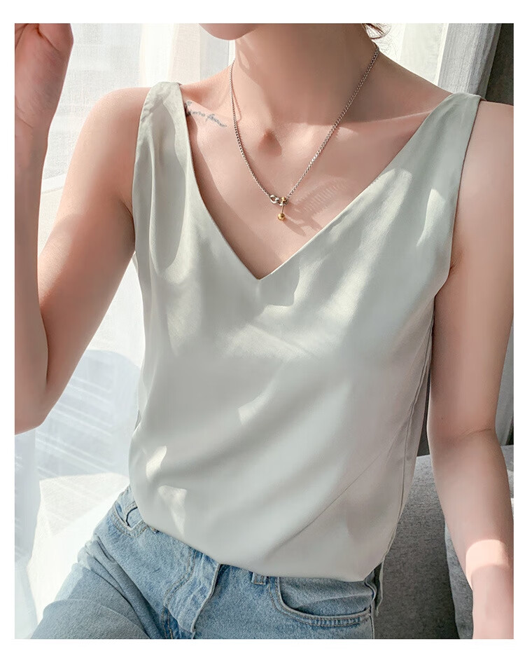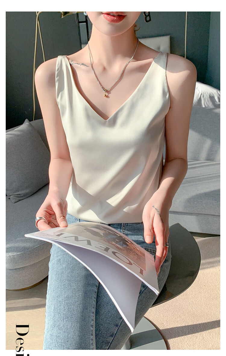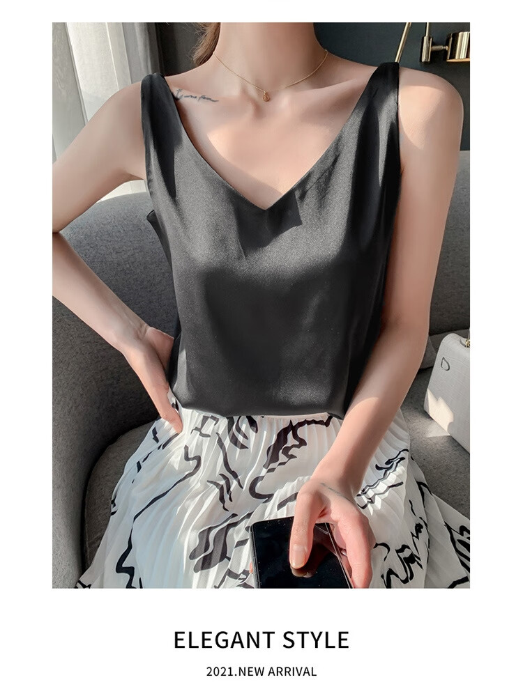 Silk Camisole Women's Summer V-neck Bottoming Satin Mulberry Silk Top Sexy Outerwear Large Size Champagne One Shoulder M