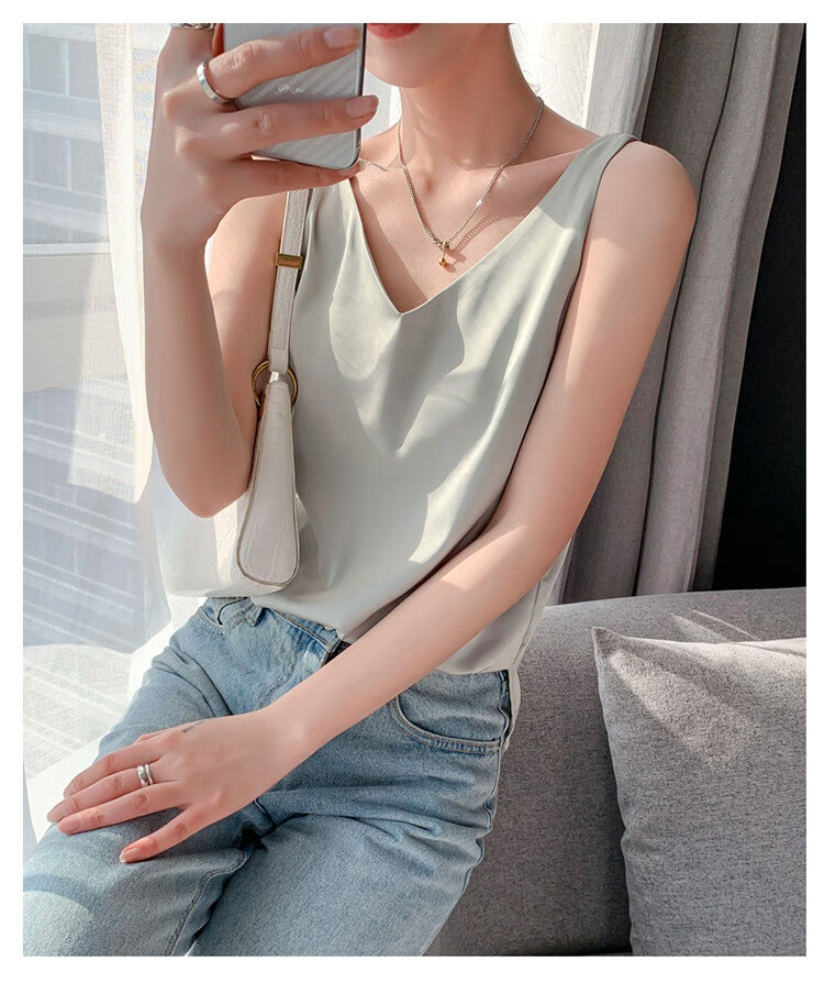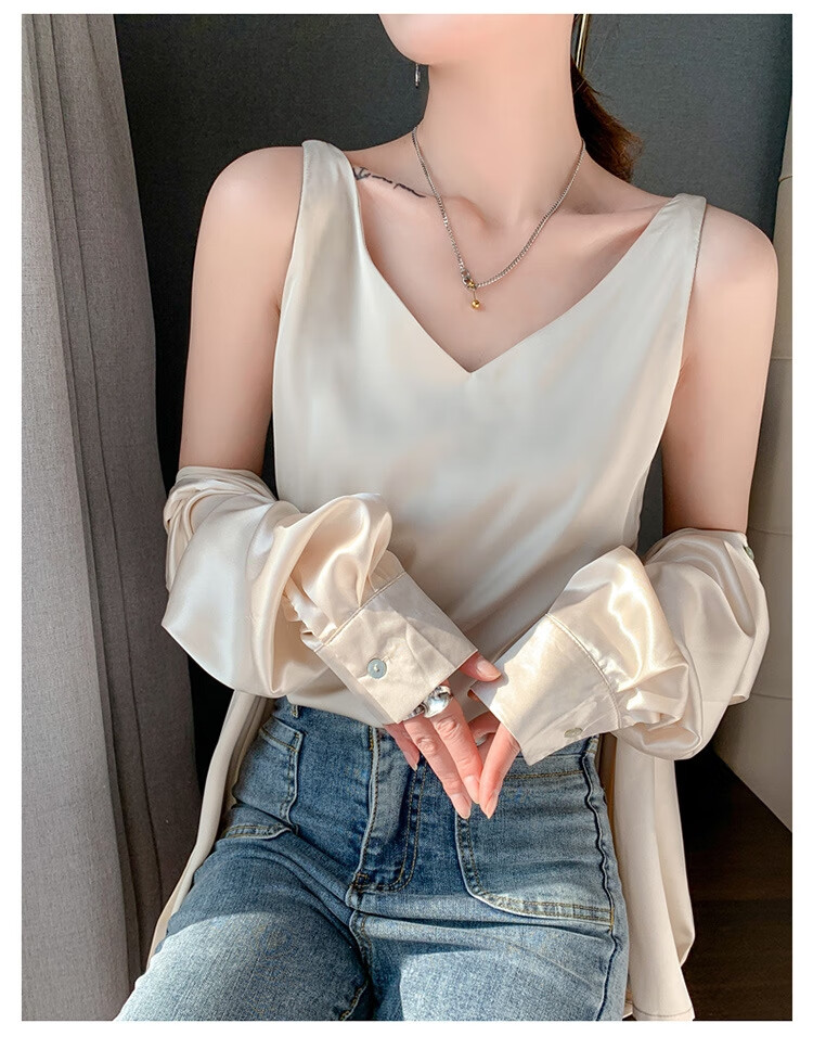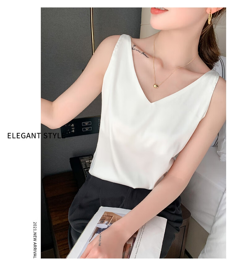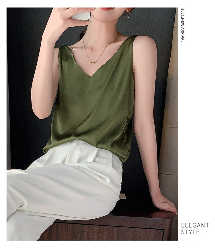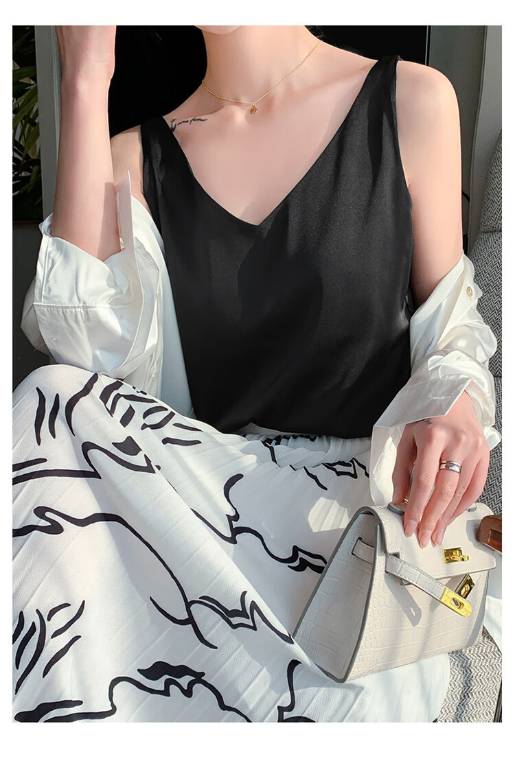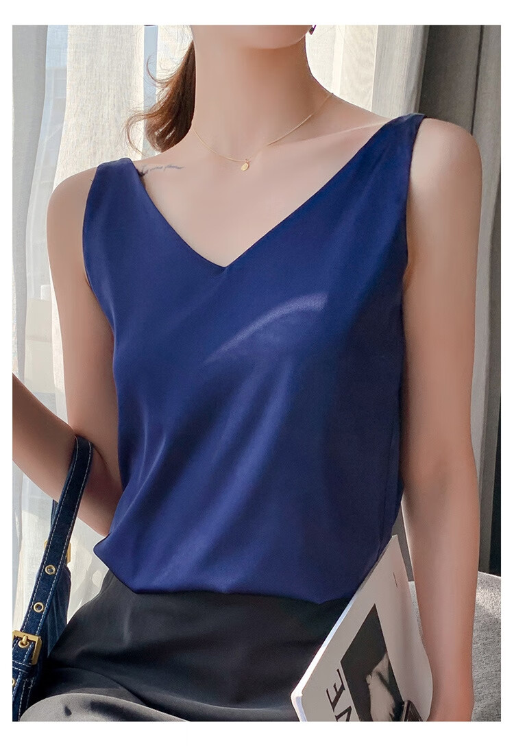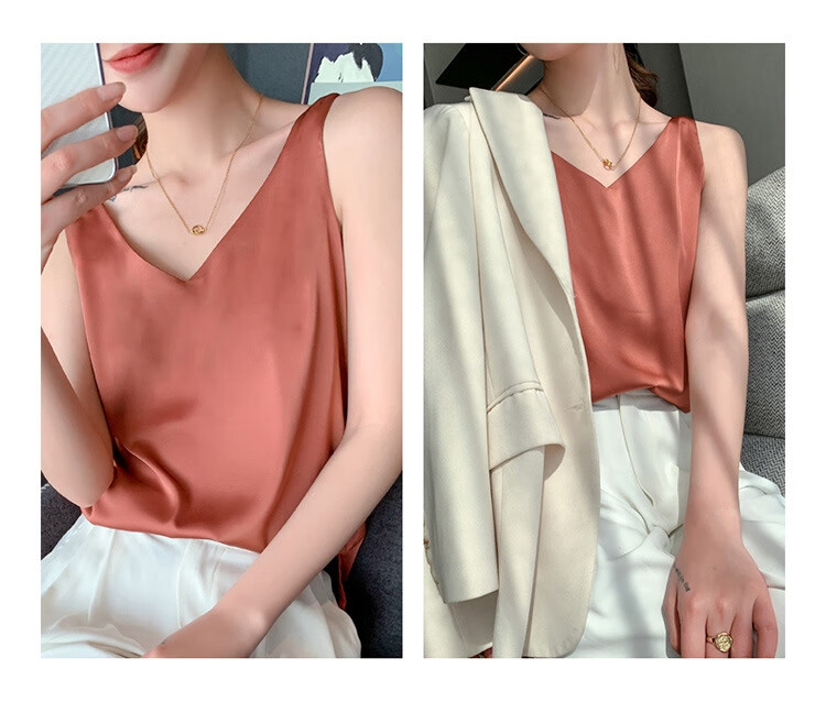 Silk Camisole Women's Summer V-neck Bottoming Satin Mulberry Silk Top Sexy Outerwear Large Size Champagne One Shoulder M