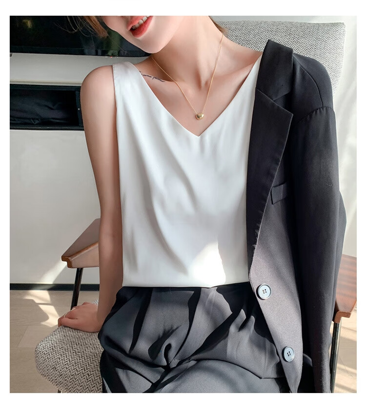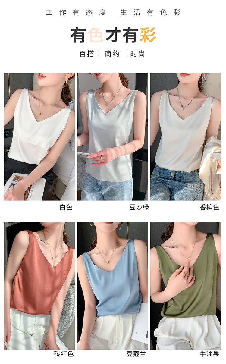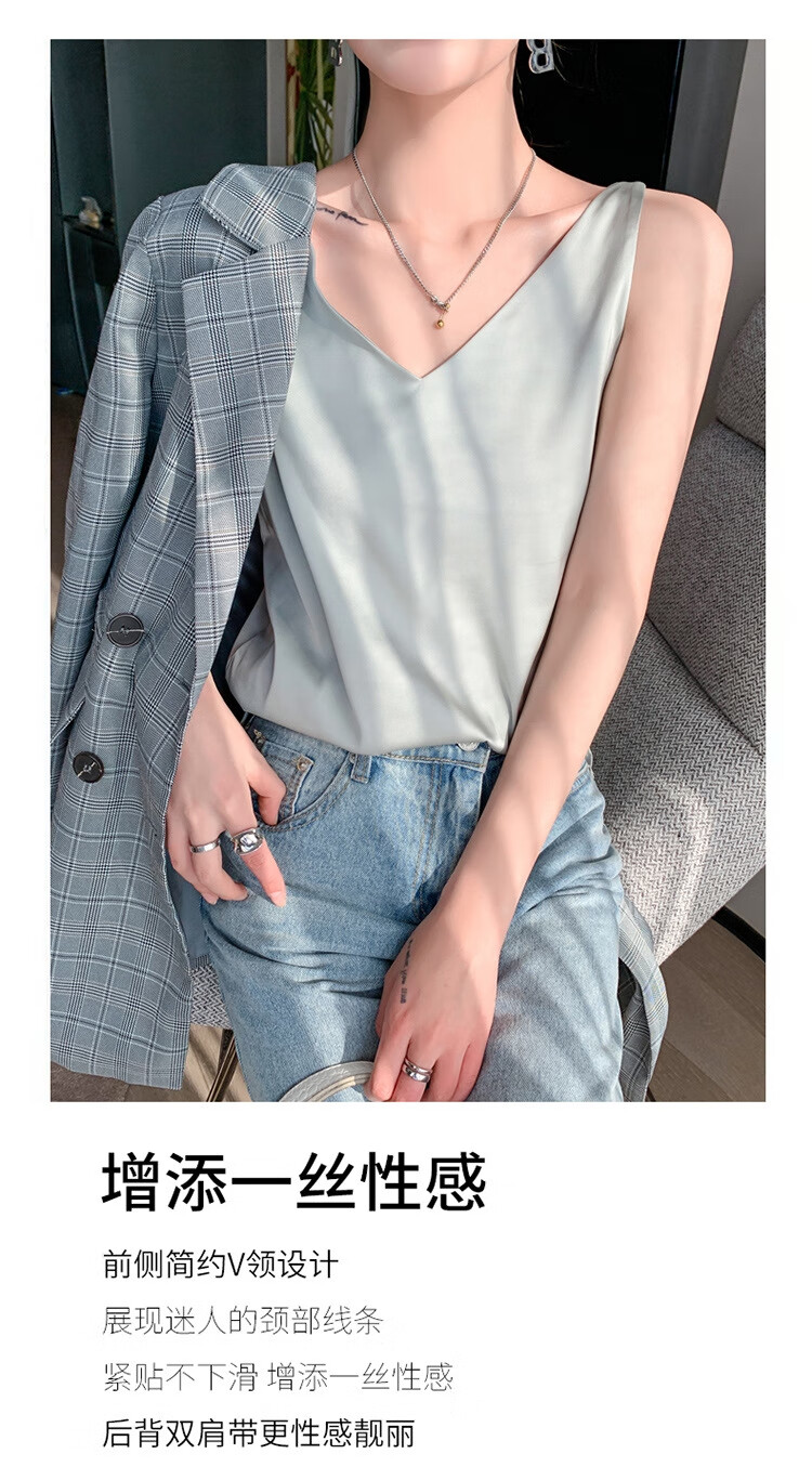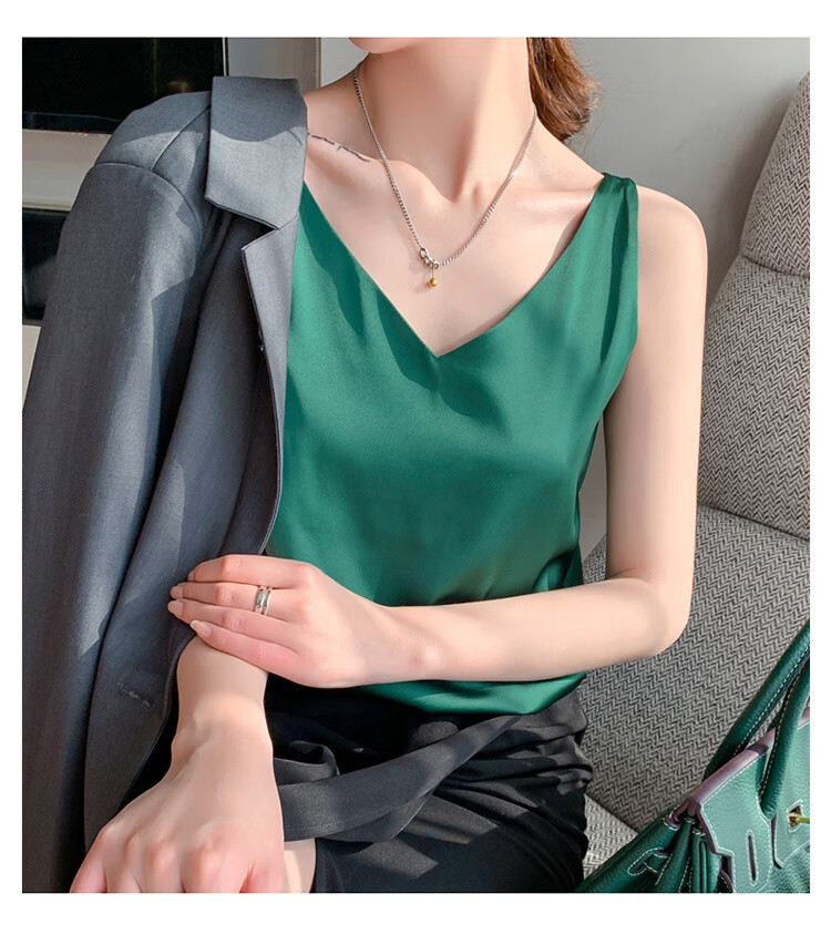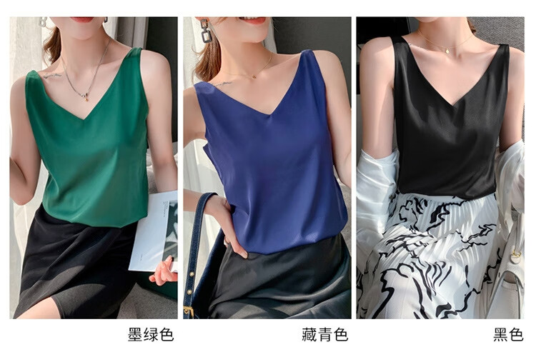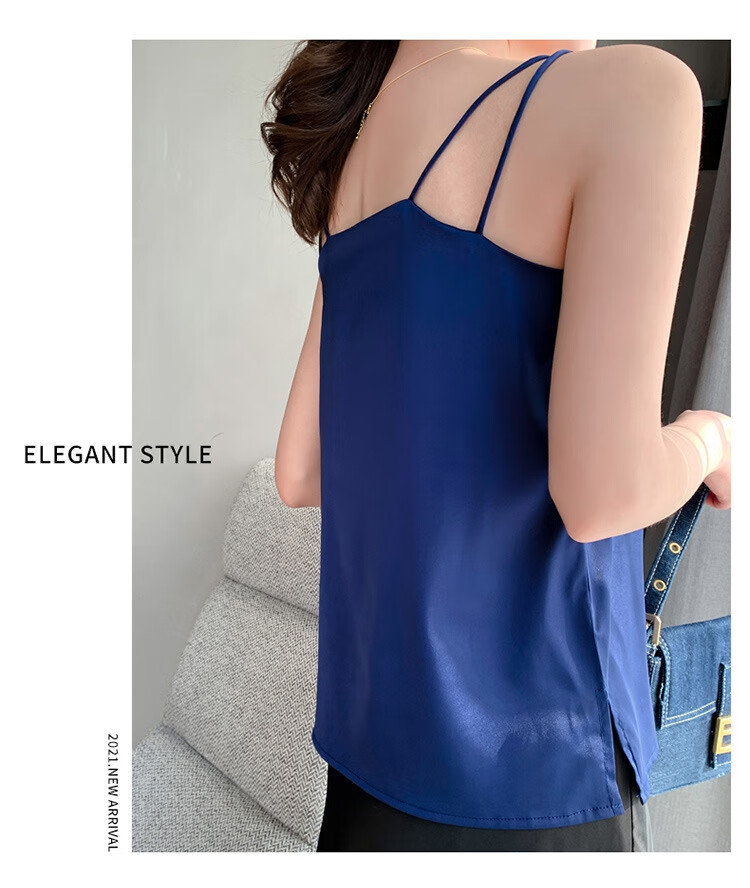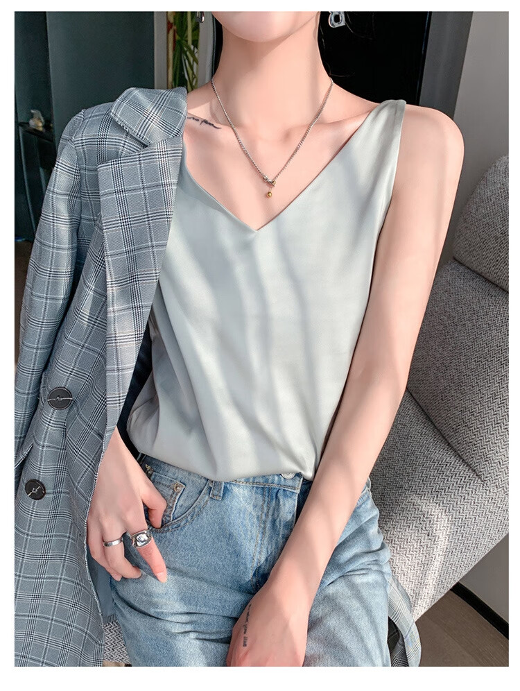 Silk Camisole Women's Summer V-neck Bottoming Satin Mulberry Silk Top Sexy Outerwear Large Size Champagne One Shoulder M