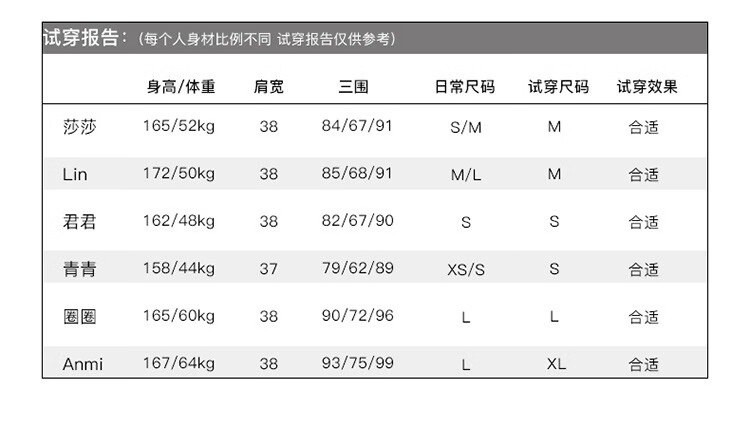 China (cm) 160-165/84-86 165-170 / 88-90 167-172 / 92-96 168-173 / 98-102 170-176 / 106-110