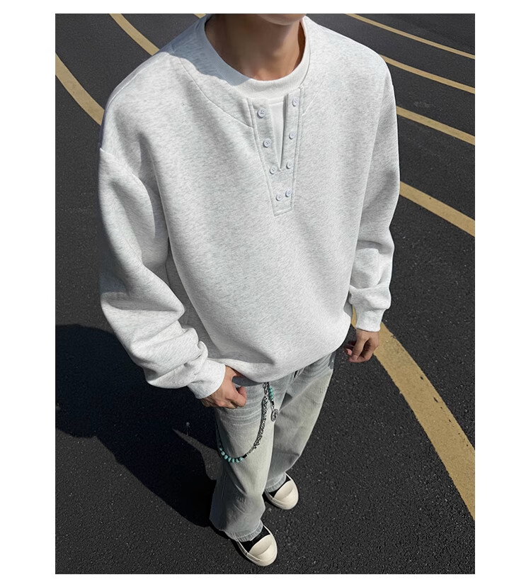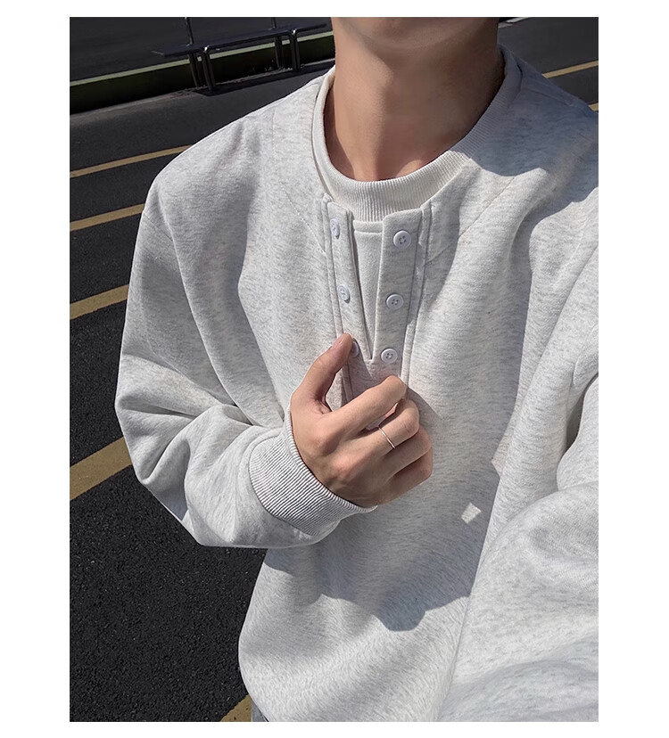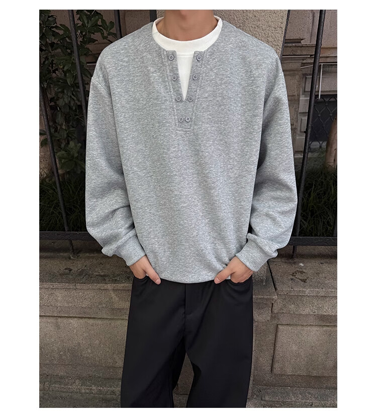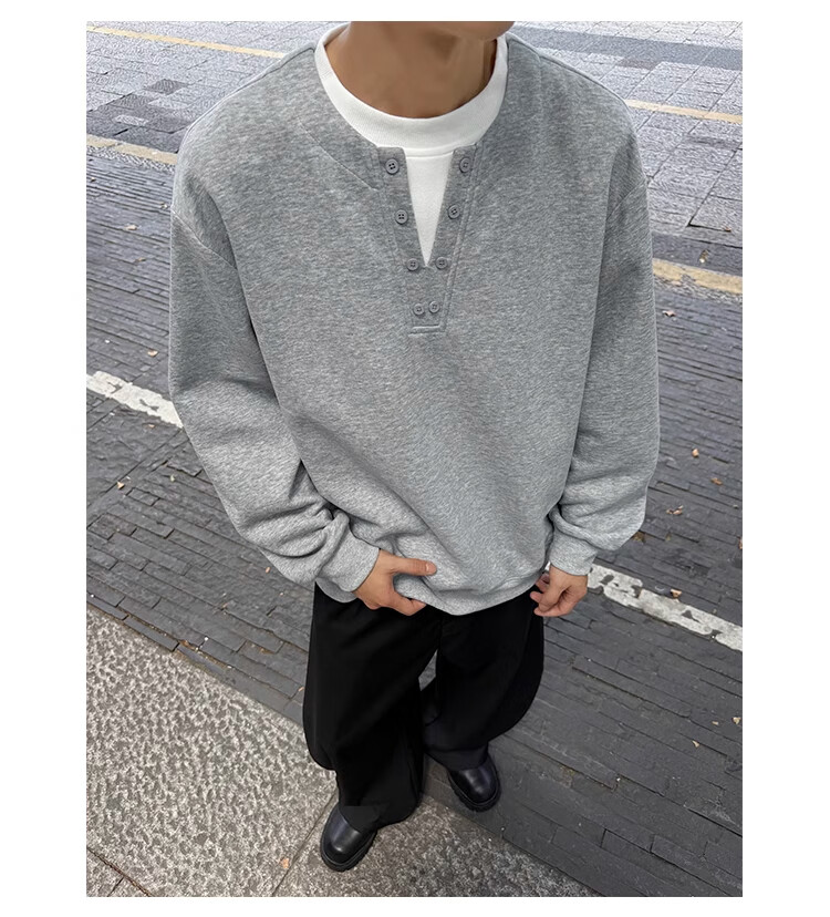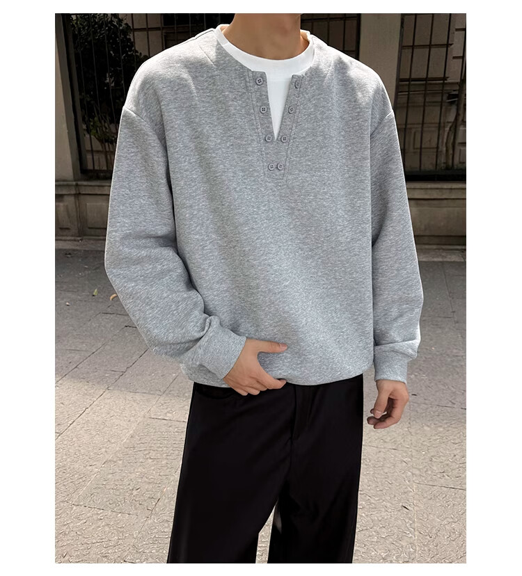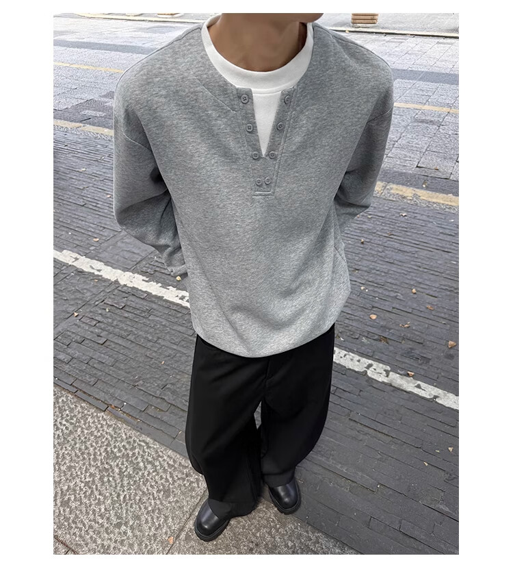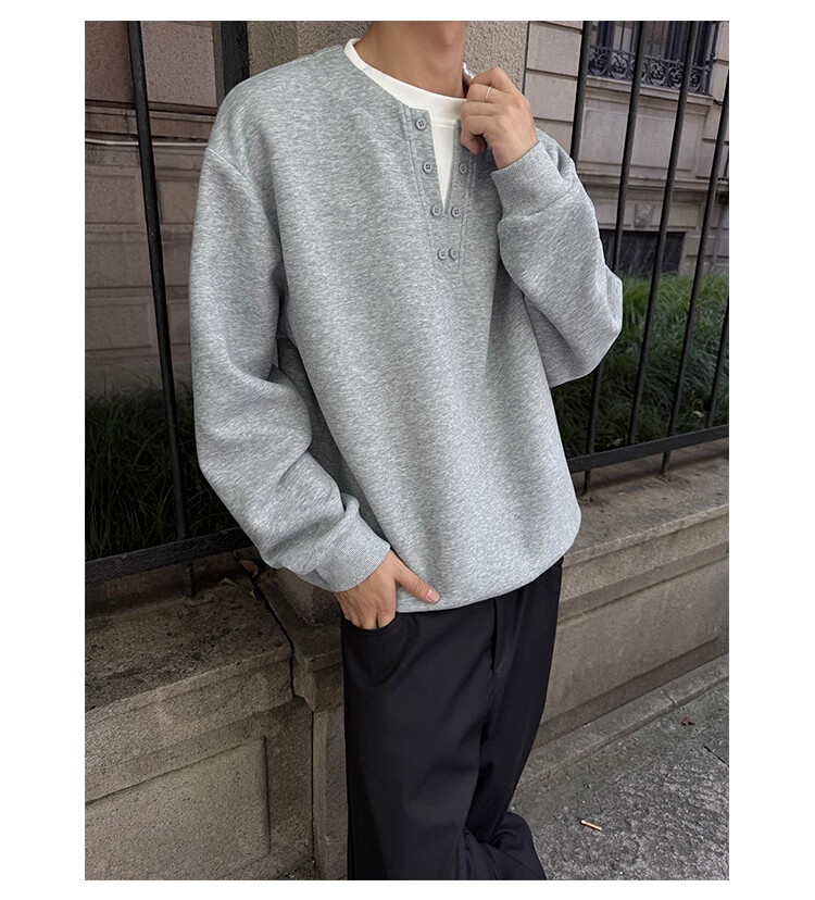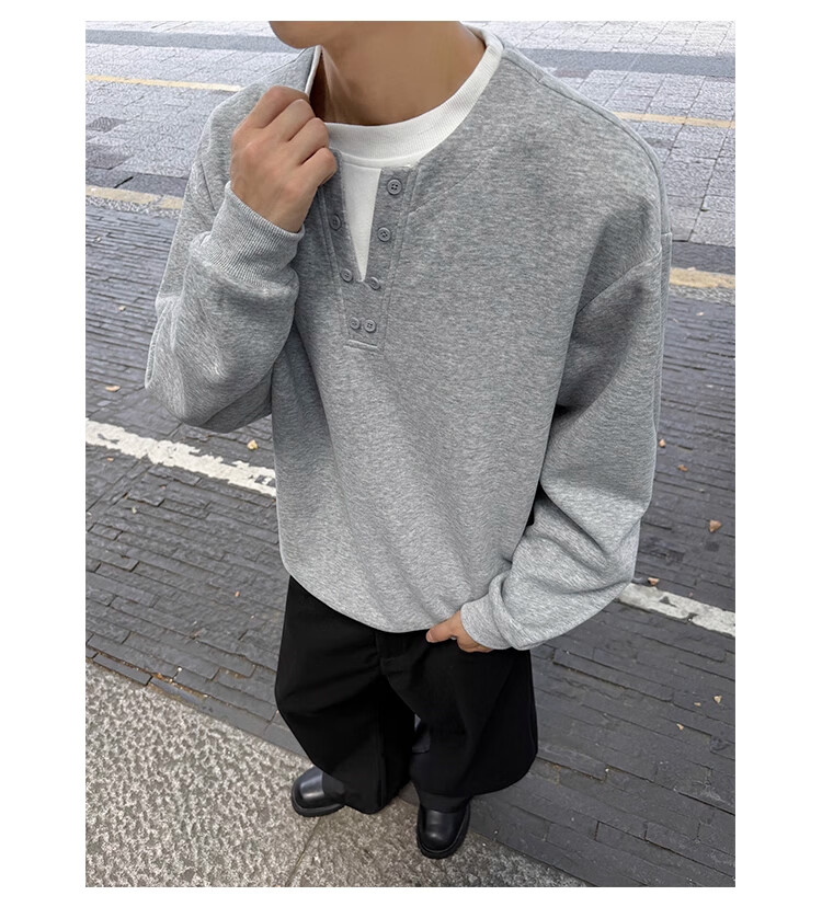 Cotton heavy fake two-piece Henry collar sweatshirt for men spring and autumn 2025 new loose simple casual bottoming shirt top X88 black regular high quality 33 2XL 140-160Jin Jin is equal to 0.5 kg