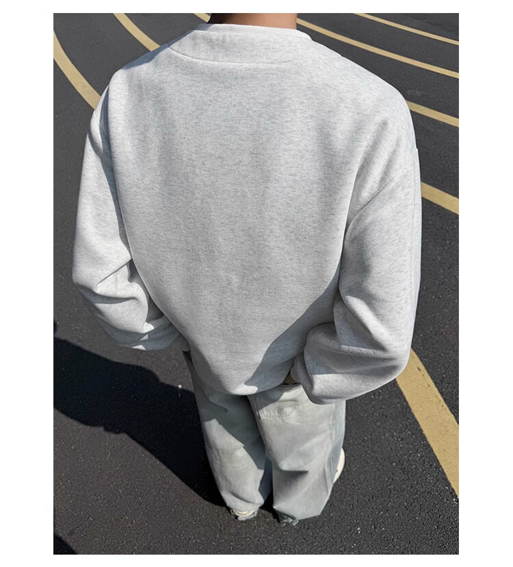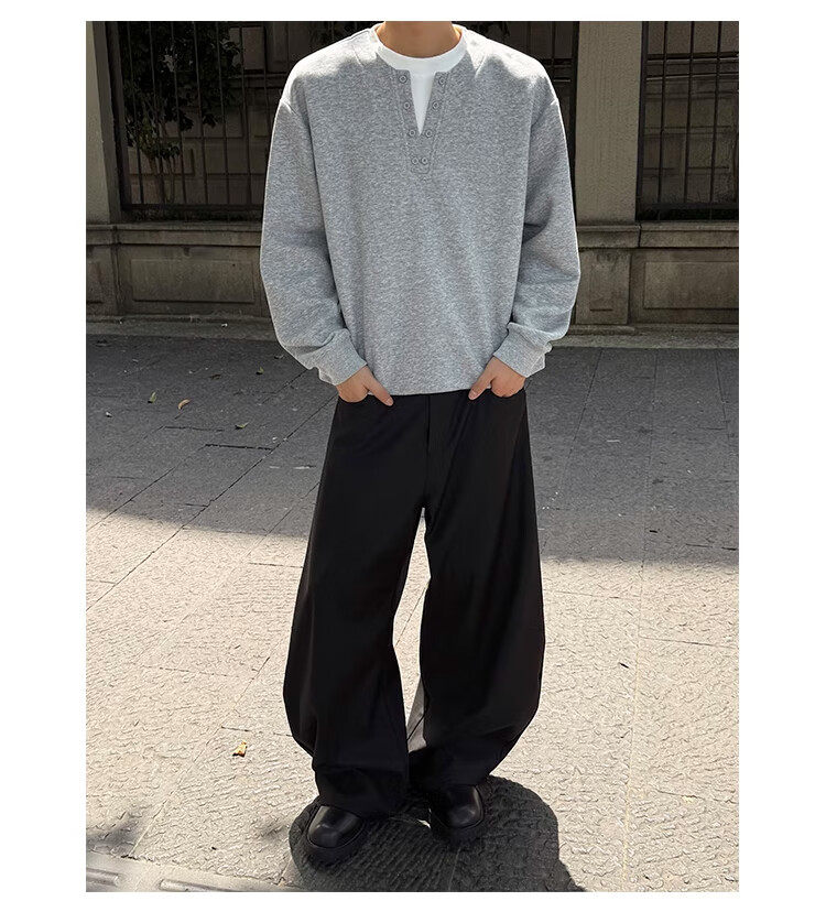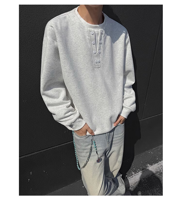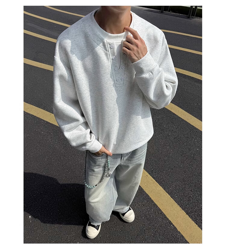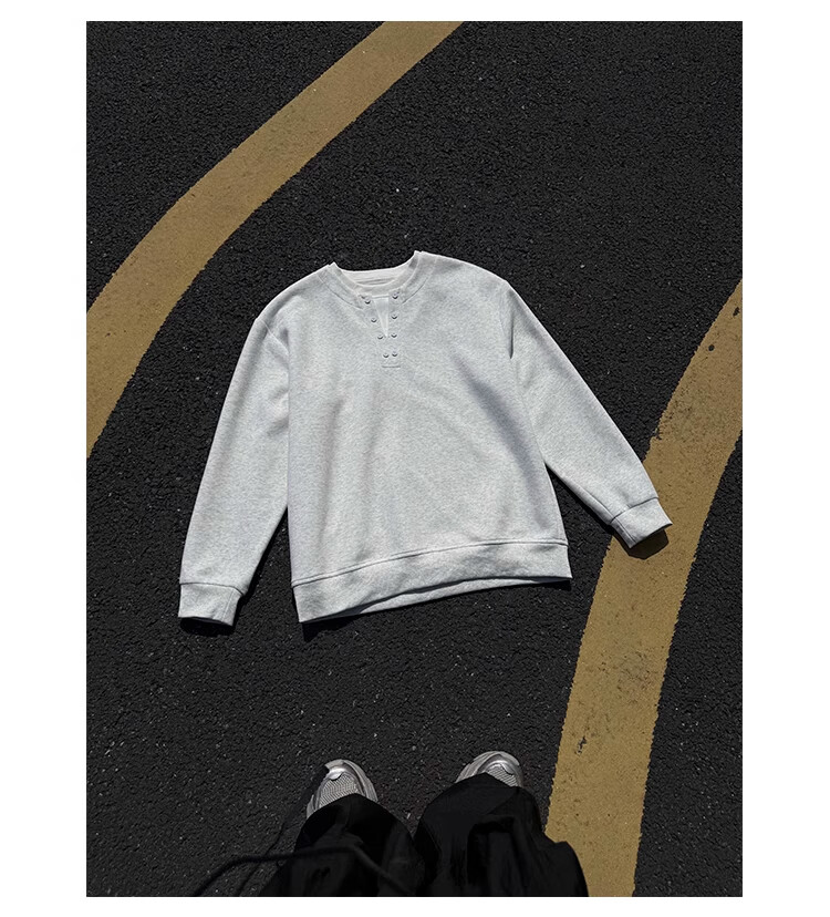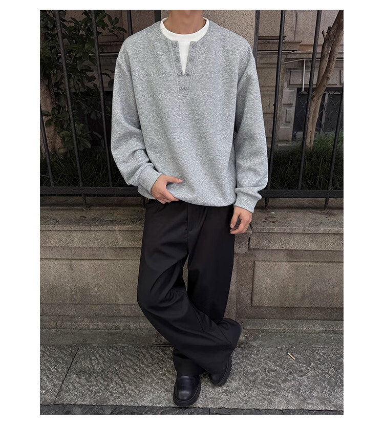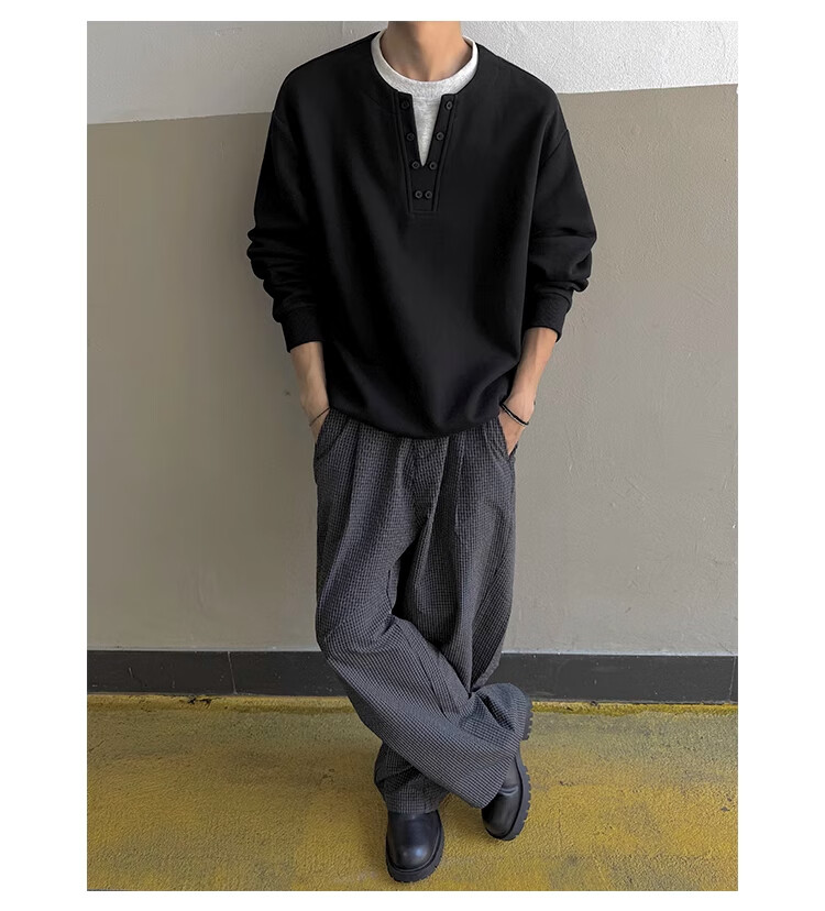 Cotton heavy fake two-piece Henry collar sweatshirt for men spring and autumn 2025 new loose simple casual bottoming shirt top X88 black regular high quality 33 2XL 140-160Jin Jin is equal to 0.5 kg