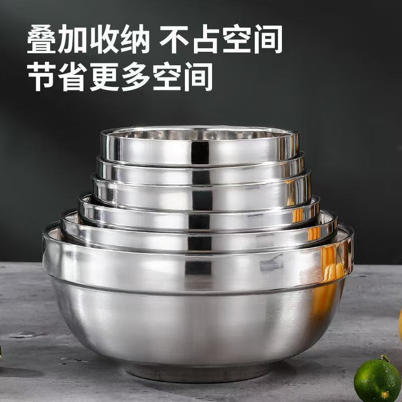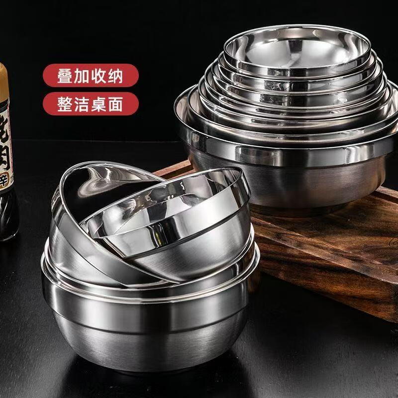 Extra thick double-layered bowl, heat-insulated and anti-scalding stainless steel bowl, household commercial-grade canteen adult instant noodle bowl, children's bowl, double-layered platinum bowl 18cm