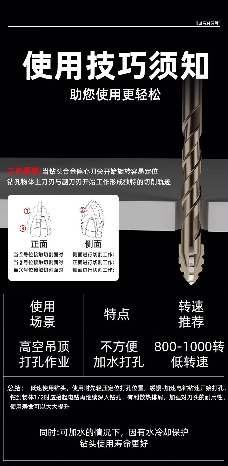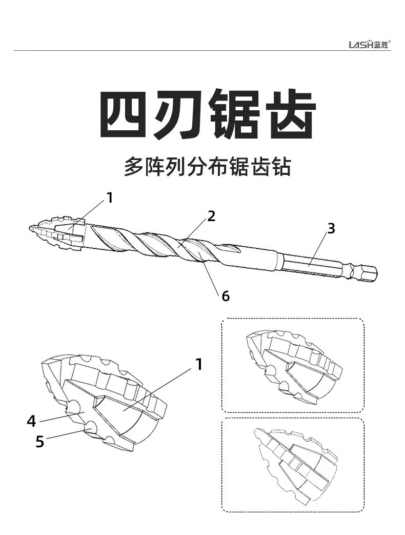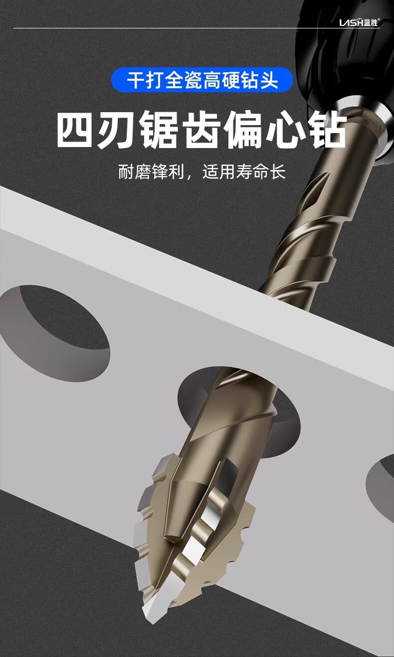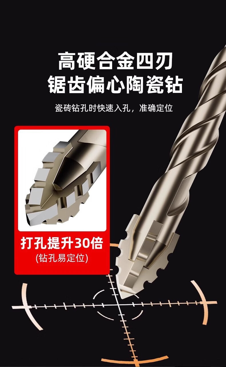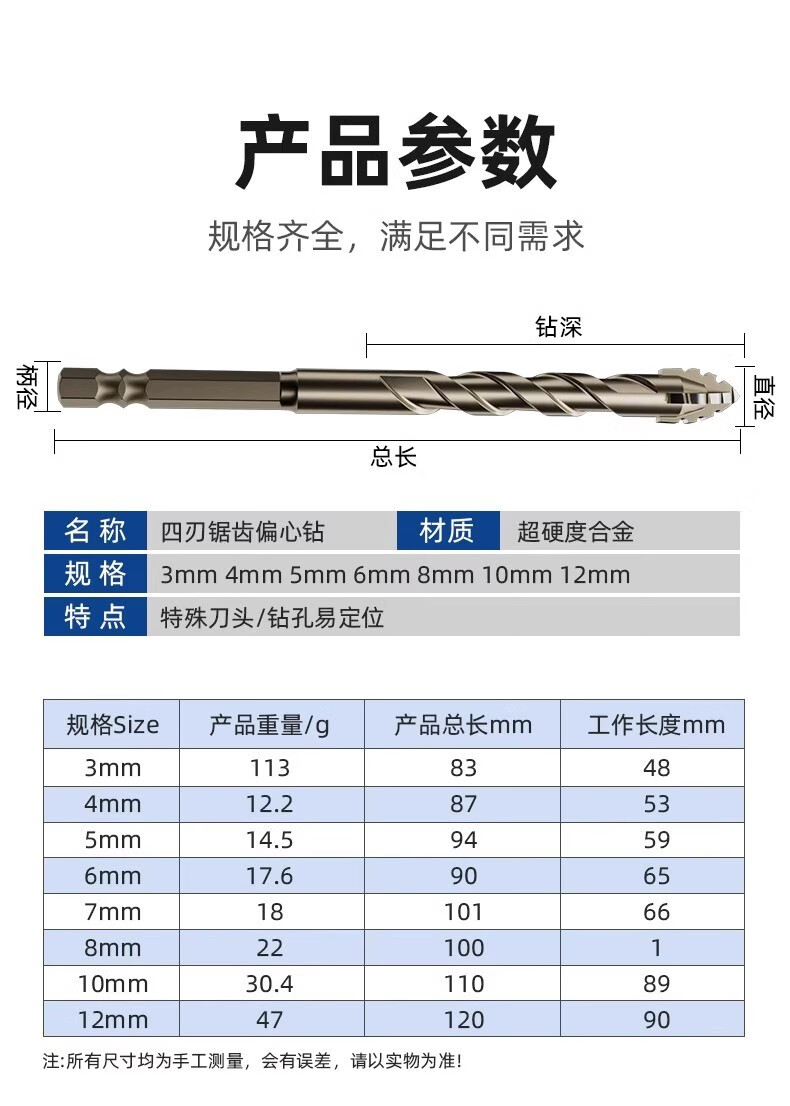 Mihong tilted head four-edged serrated eccentric drill bit for ceramic tile drilling concrete special electric drill rotor ultra-high hardness dry drilling four-edged serrated drill 3mm one pack