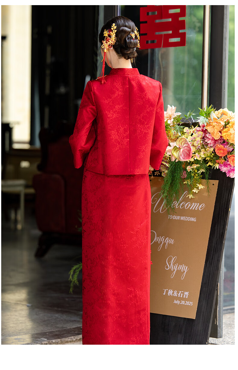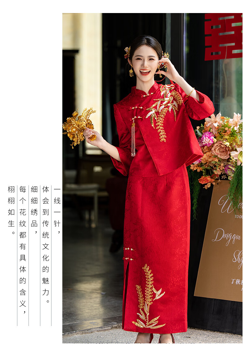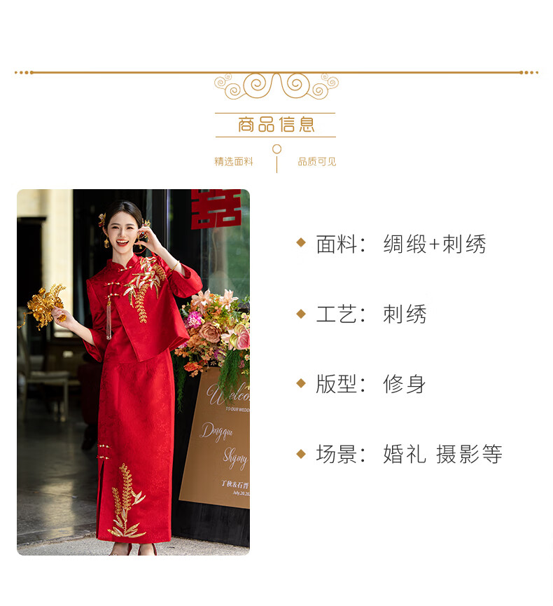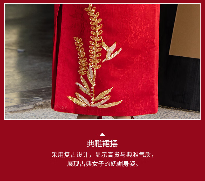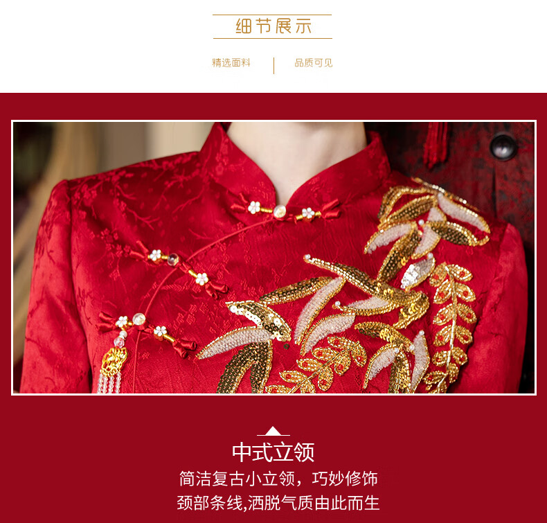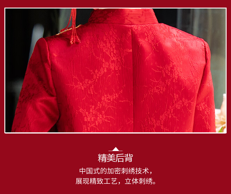 Zhijixin Chinese style bridal cheongsam engagement dress for women 2025 new wedding dress main yarn toasting dress wedding wedding dress wedding dress DF101 long sleeve XL