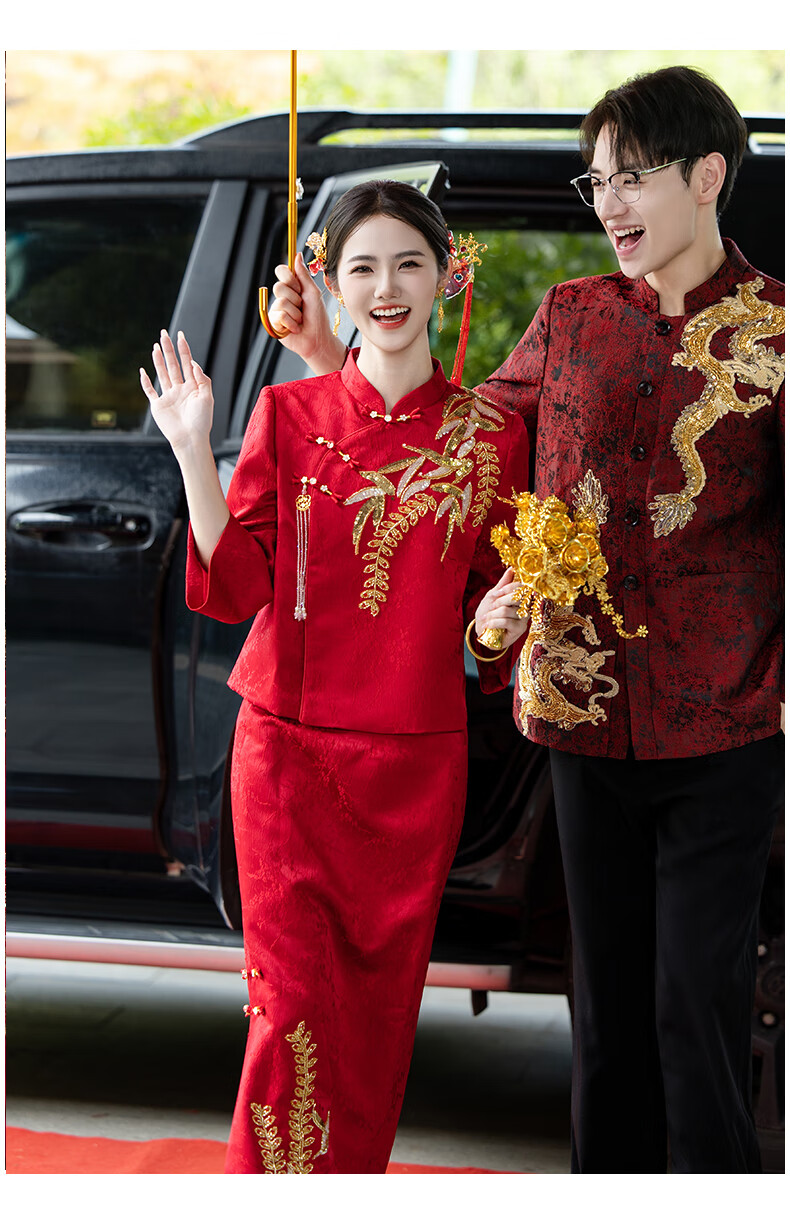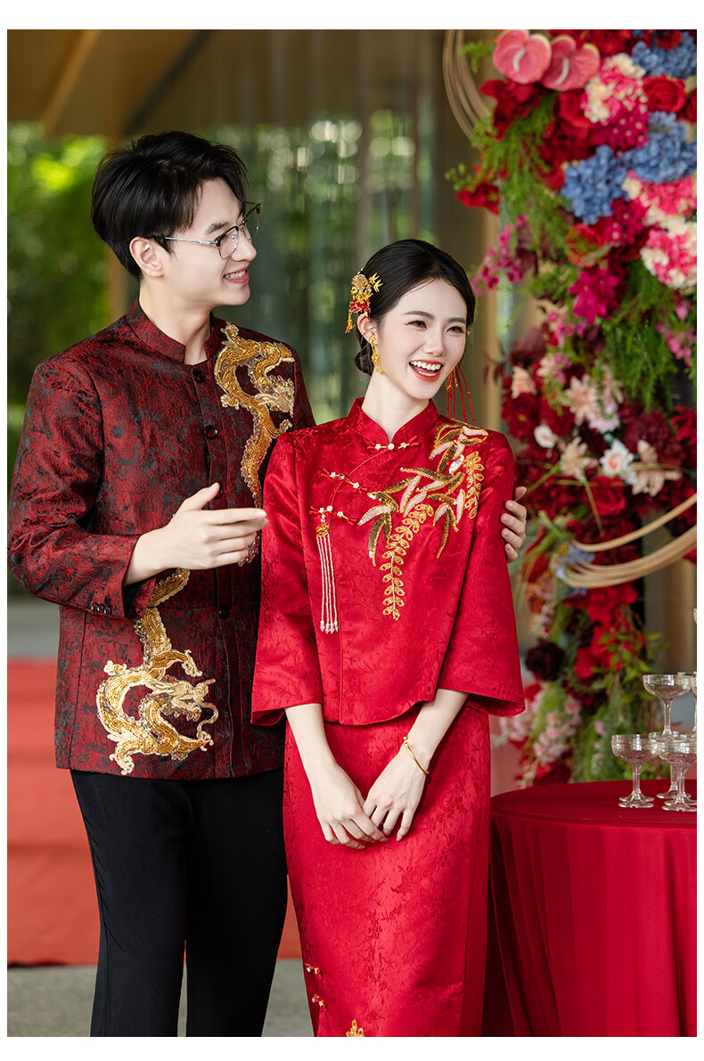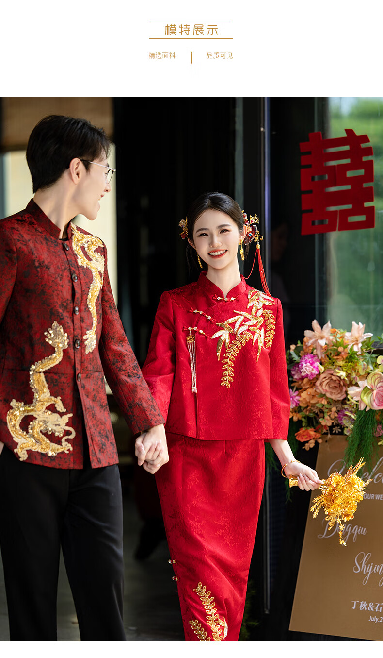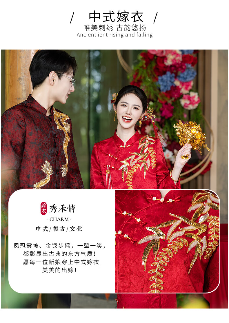 Zhijixin Chinese style bridal cheongsam engagement dress for women 2025 new wedding dress main yarn toasting dress wedding wedding dress wedding dress DF101 long sleeve XL
