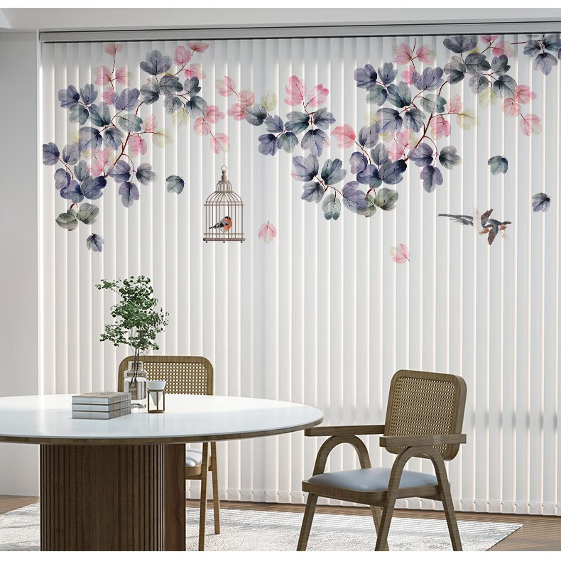 Pickup Cat New Chinese Style Printed Vertical Venetian Curtains Living Room Dream Curtains Vertical Curtains Blackout Sunshade Gauze Window Covering Half Blackout