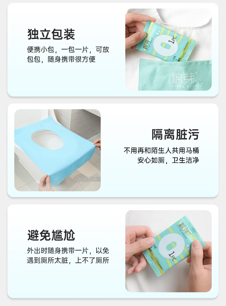 COTTON SHOOTS Disposable Toilet Seat Full Coverage Travel Portable Waterproof Toilet Cushion Cover Chinese Valentine's Day Gift Thickened and Longer-Individually Packed 6 Packs_Total 60 Pieces
