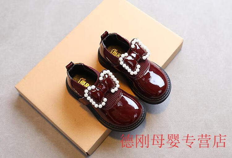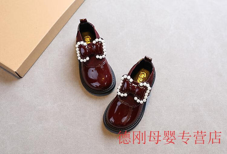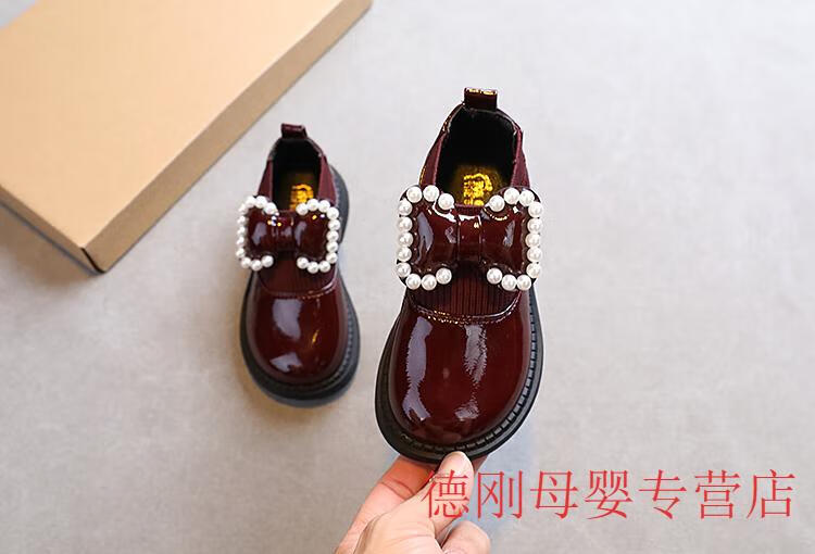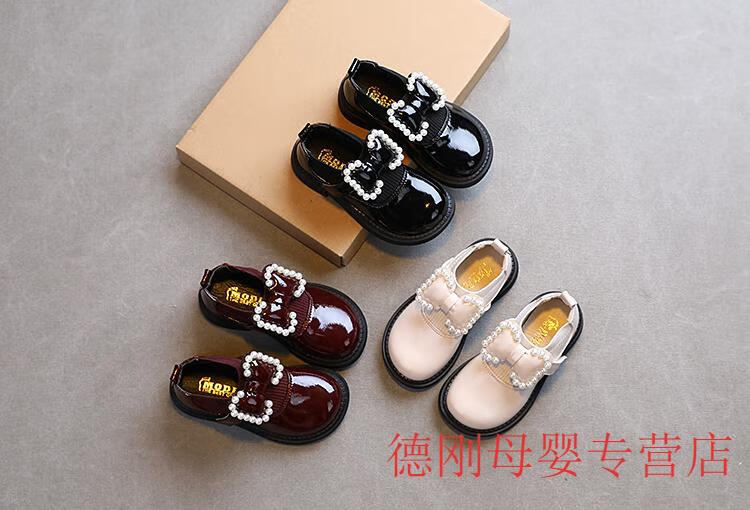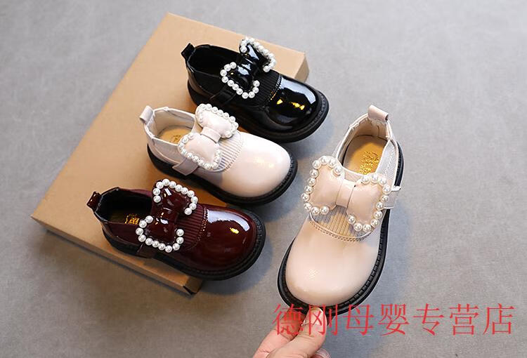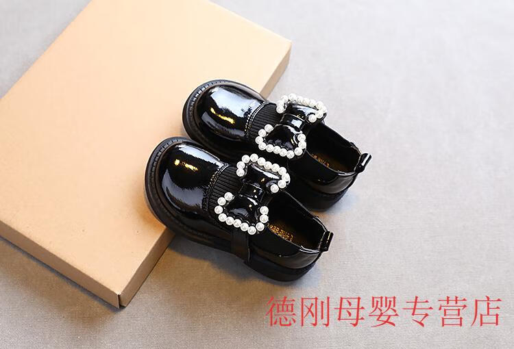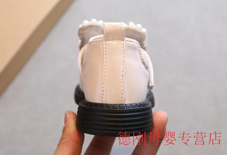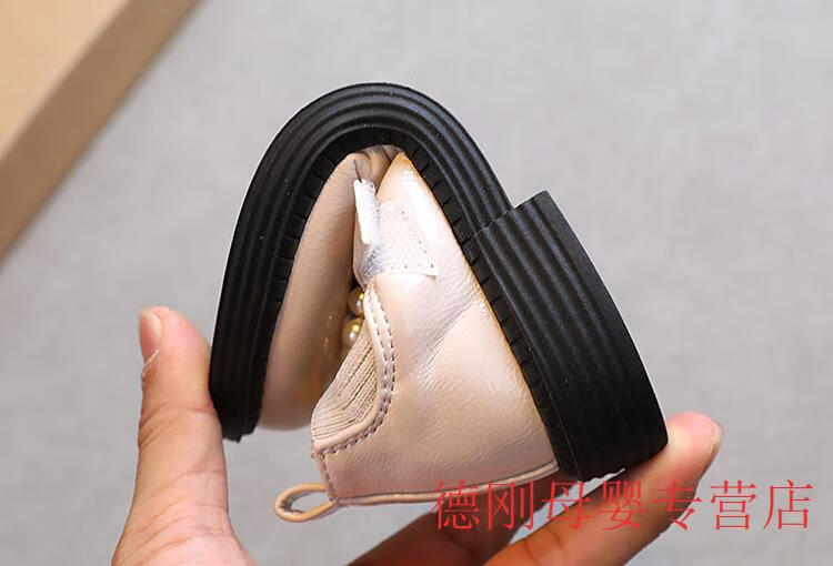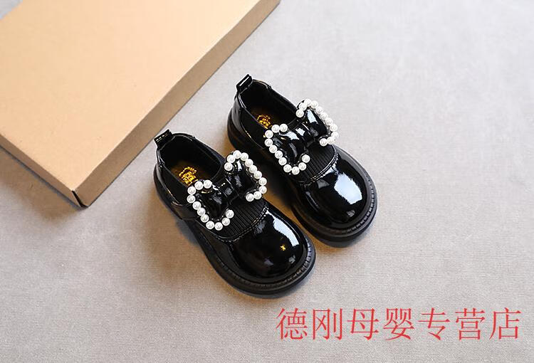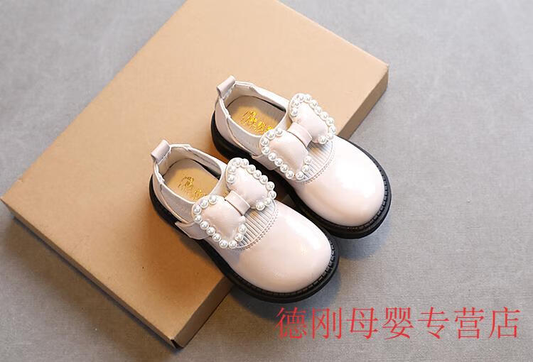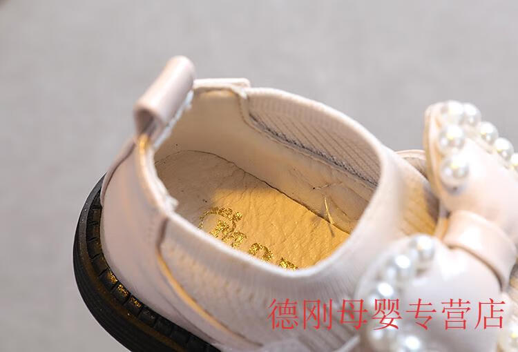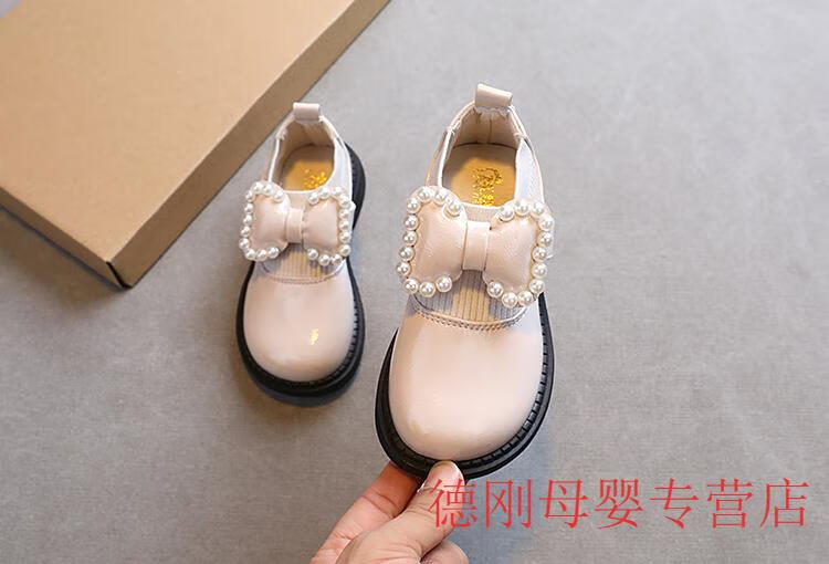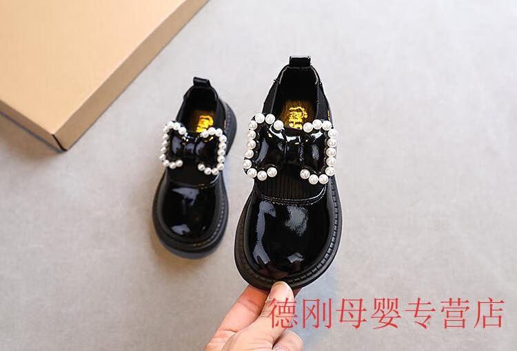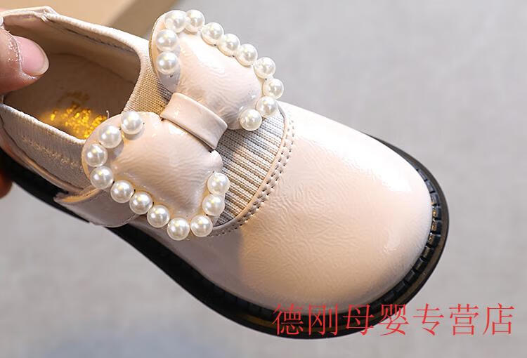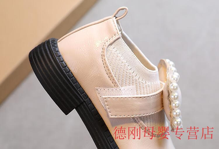 G.duck girls' shoes 2025 spring and autumn new style pearl bow girls princess shoes soft sole leather shoes black performance shoes off-white 25 inner length 15.5cm