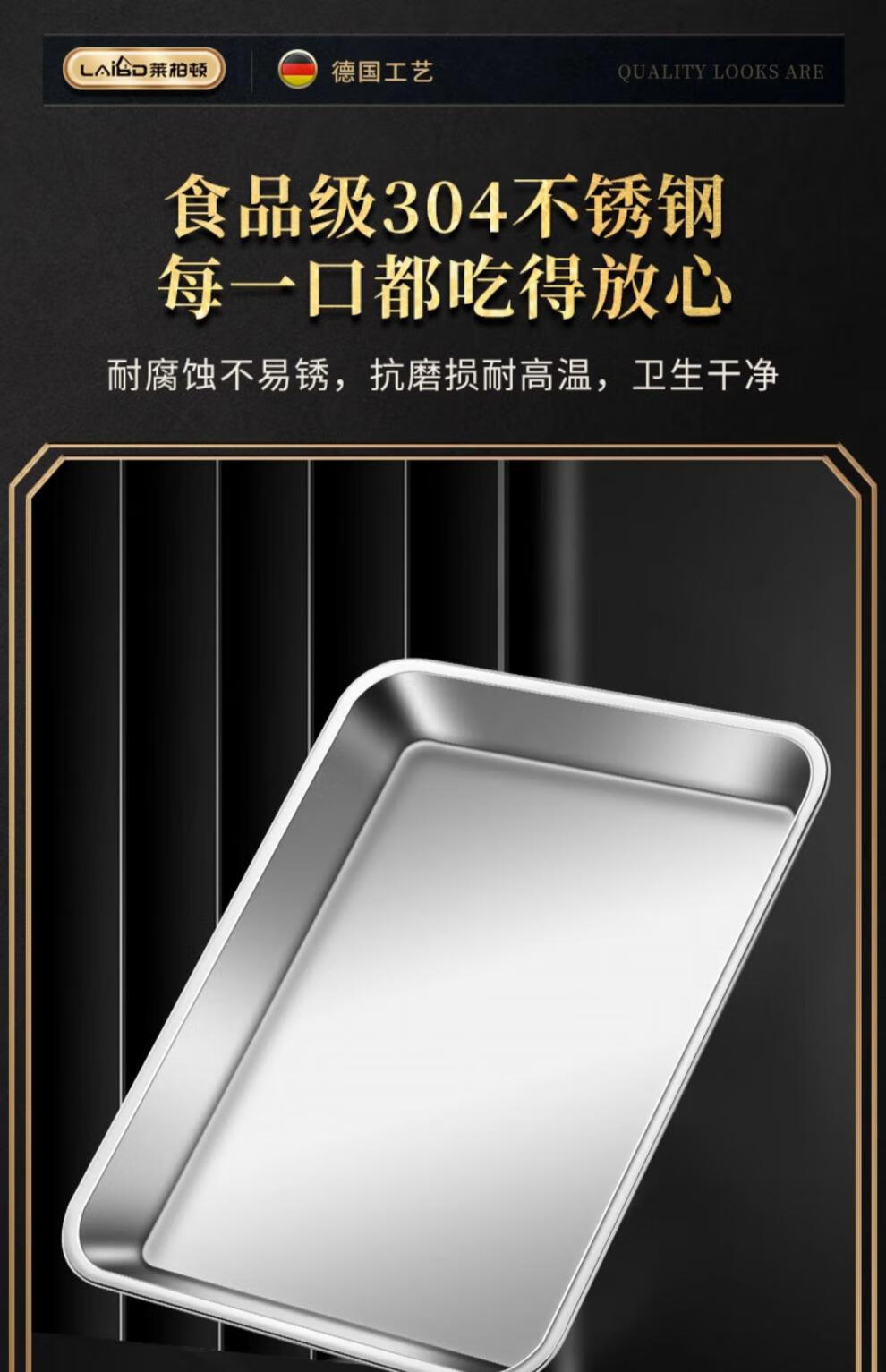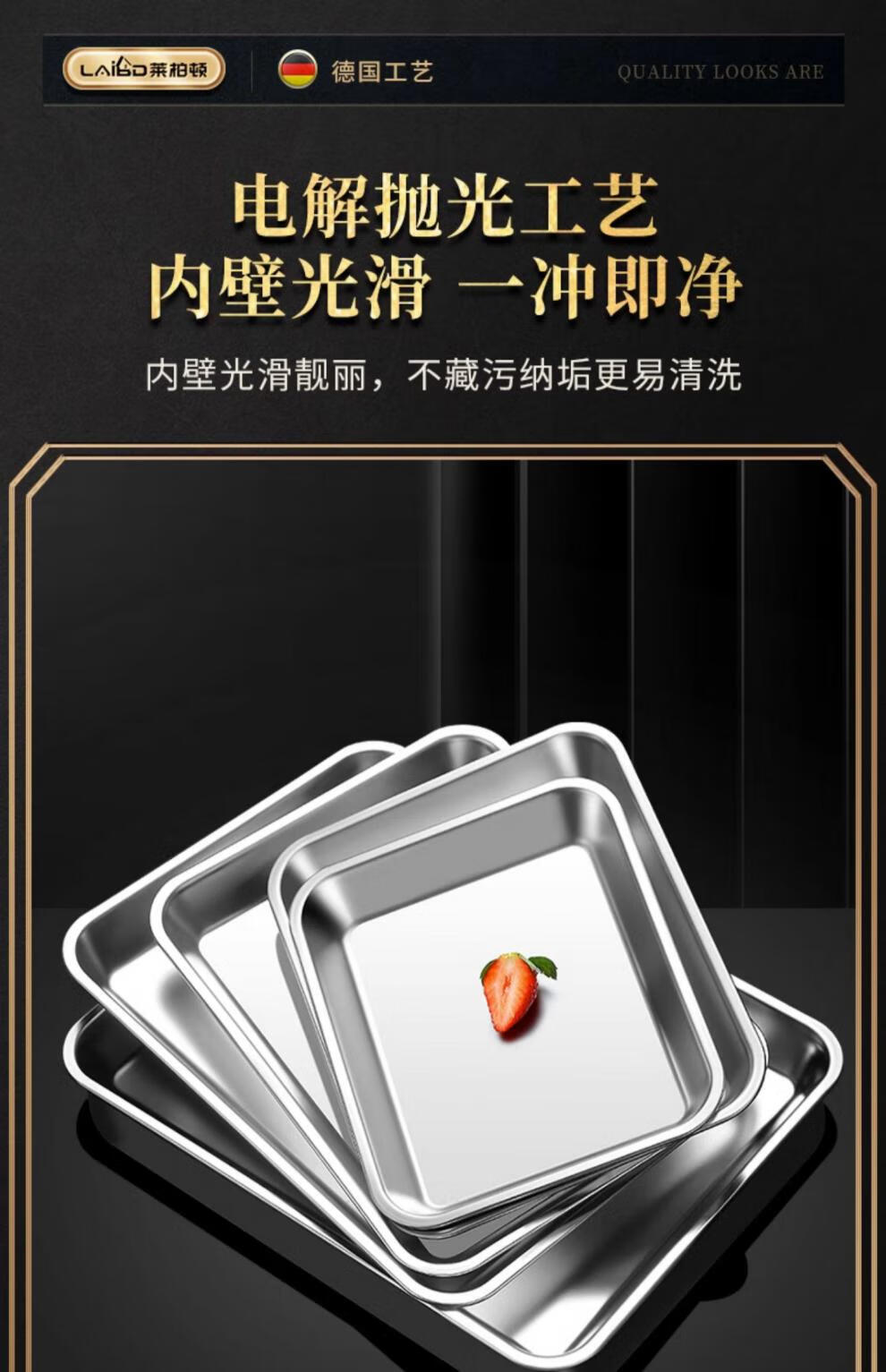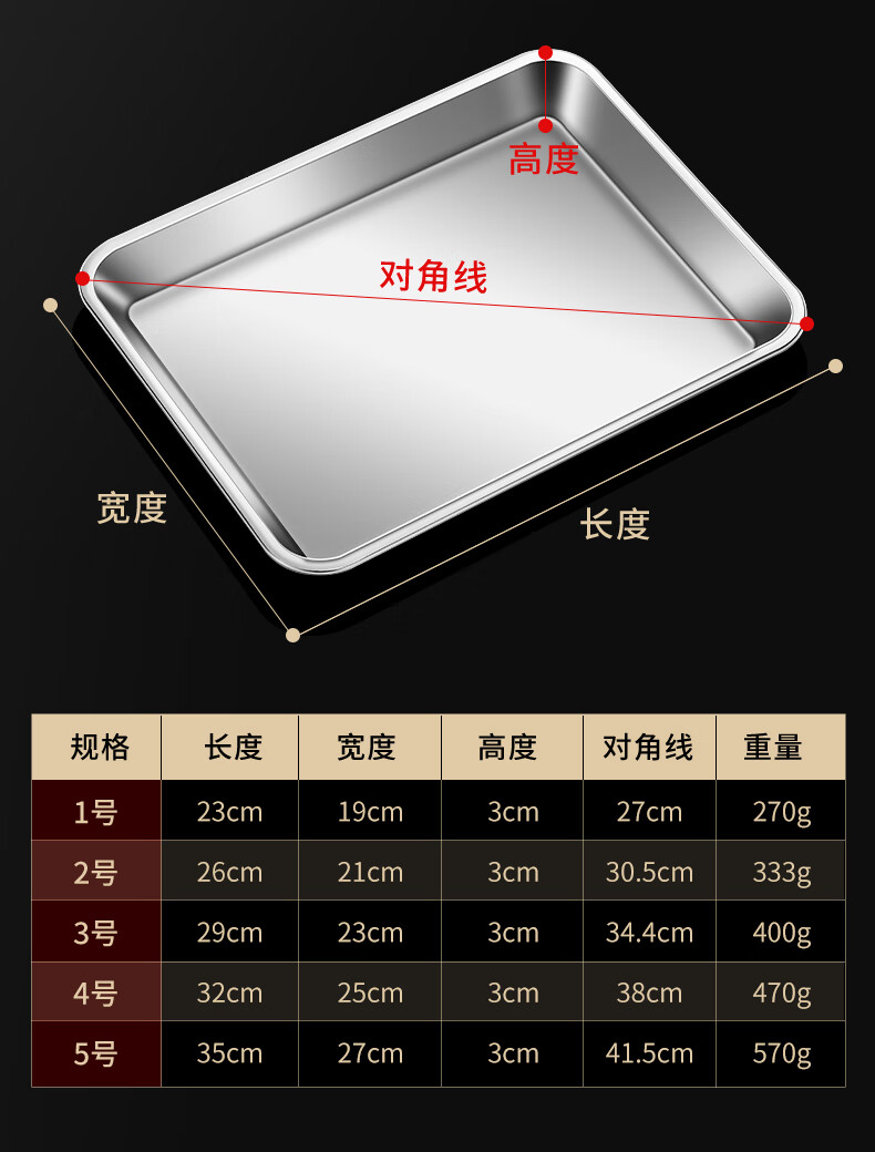 304 stainless steel square baking pan biscuit bread Western pastry baking pan cake roll mold household oven square plate No. 4 32*25*3cm thickened 304 stainless steel