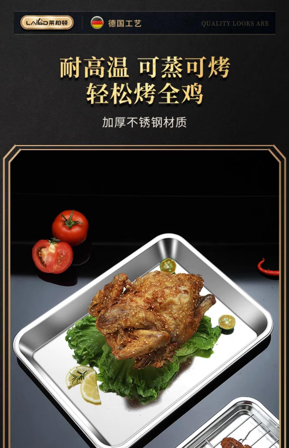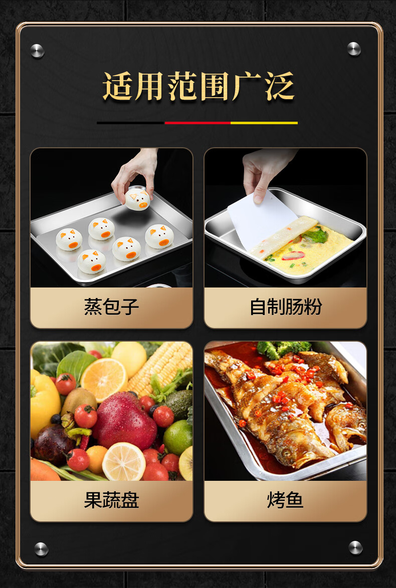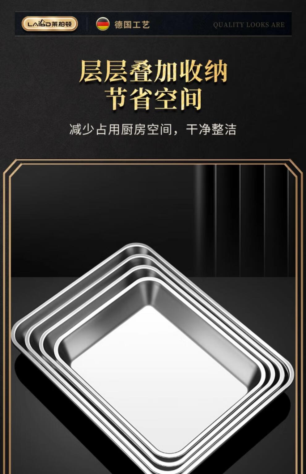 304 stainless steel square baking pan biscuit bread Western pastry baking pan cake roll mold household oven square plate No. 4 32*25*3cm thickened 304 stainless steel