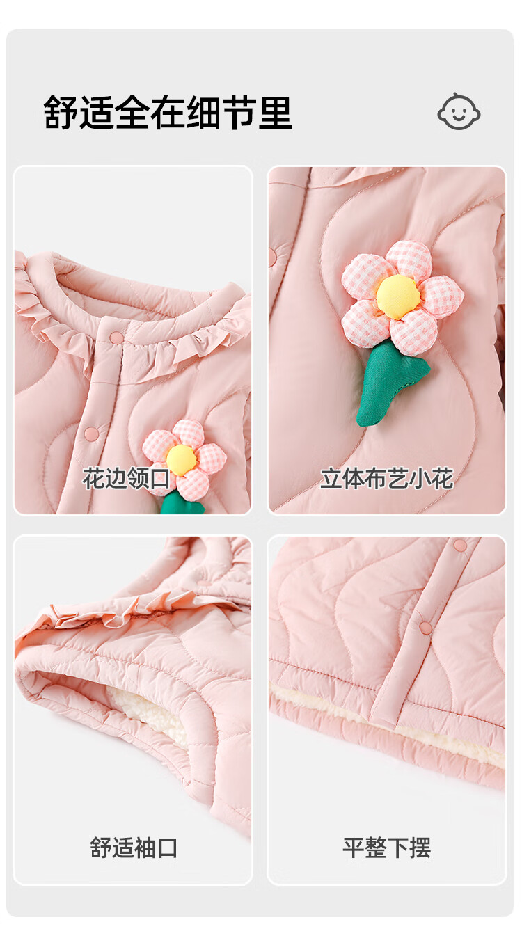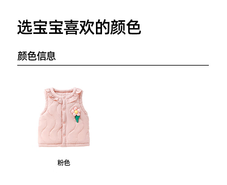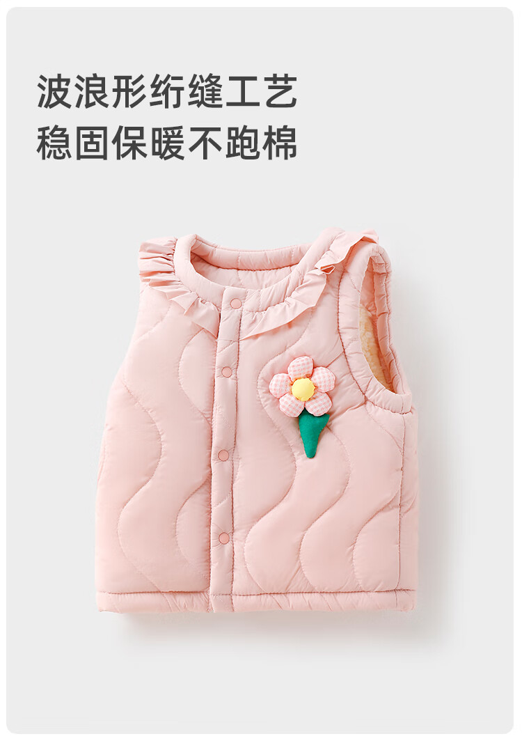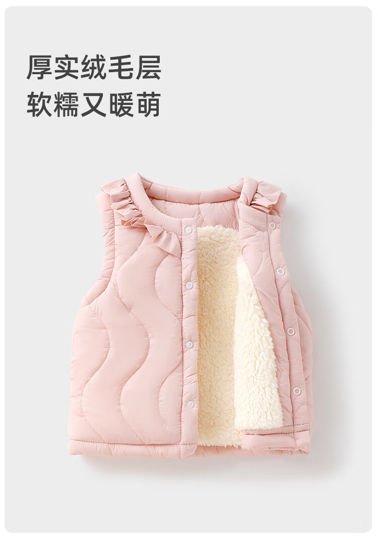 Yishuanger baby vest autumn and winter children's warm quilted winter jacket boys and girls plus velvet waistcoat baby vest pink 90