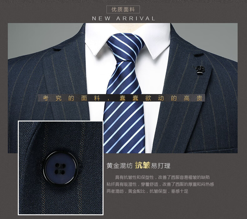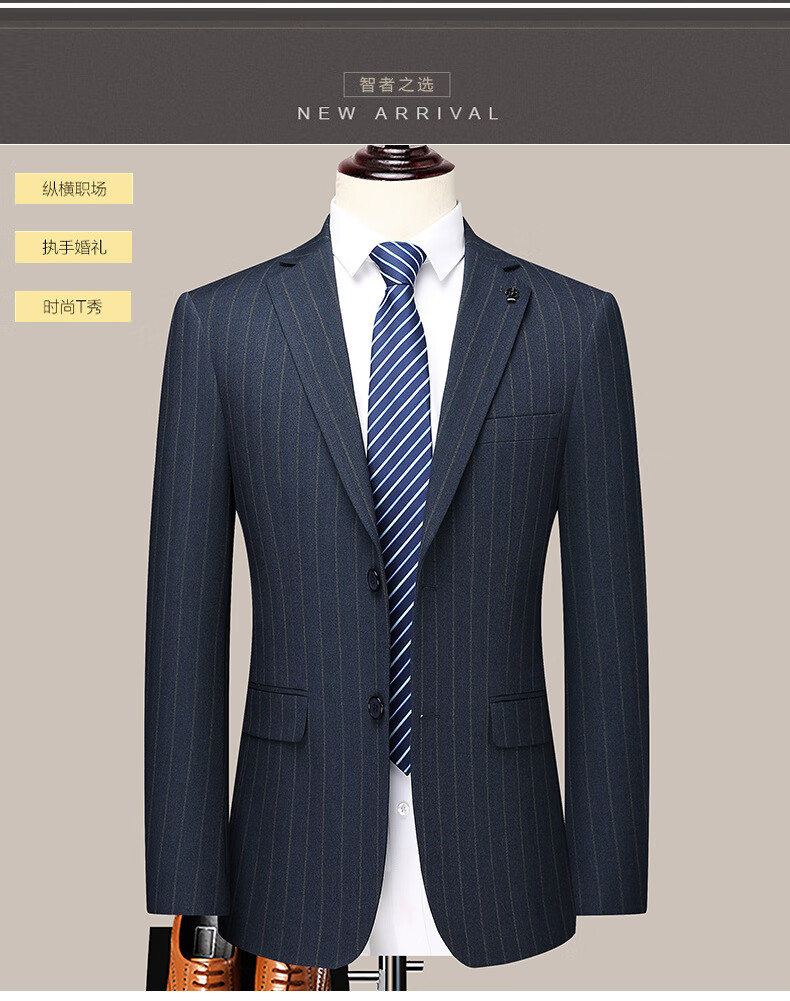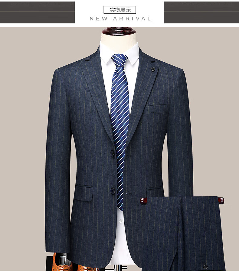 GOLDLION G+ Jinlilai brand men's wool suit business casual striped suit men's banquet wedding men's double row blue M 170