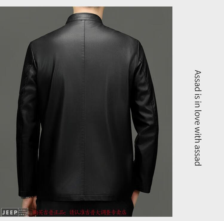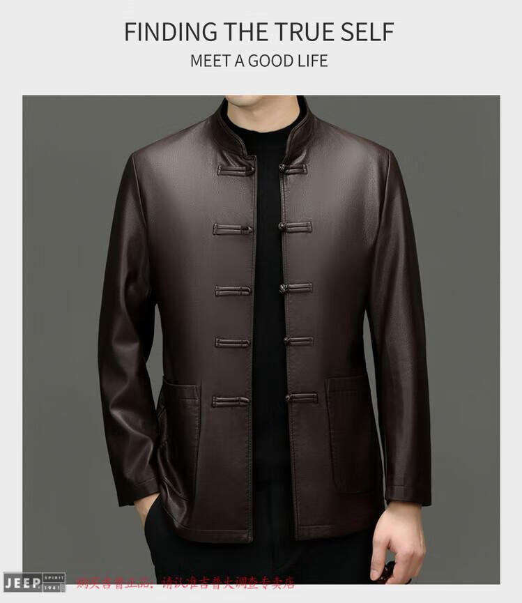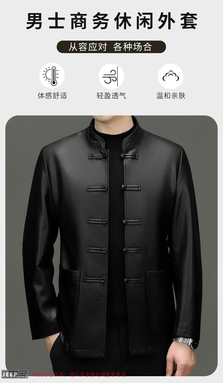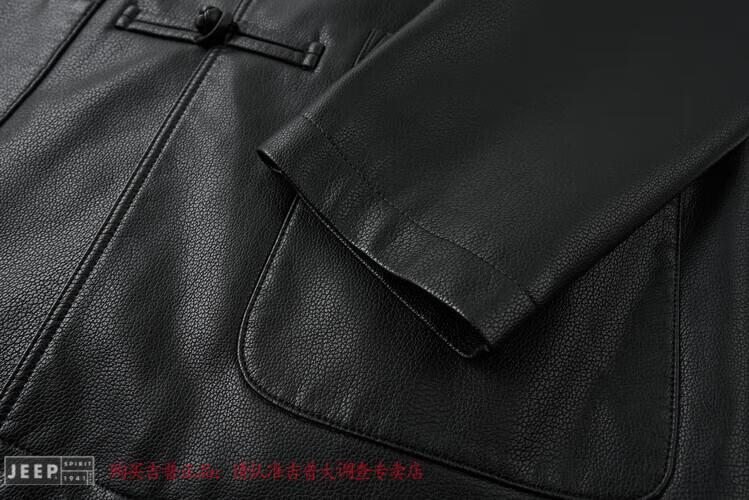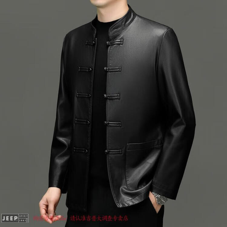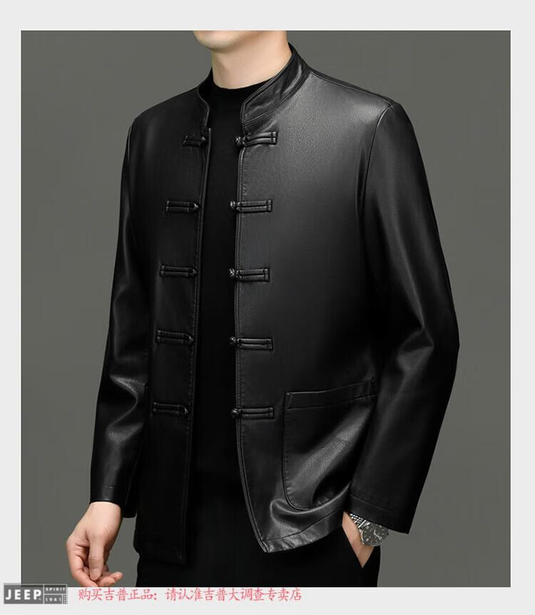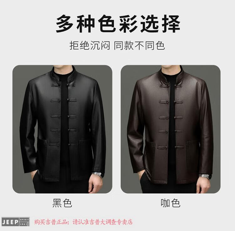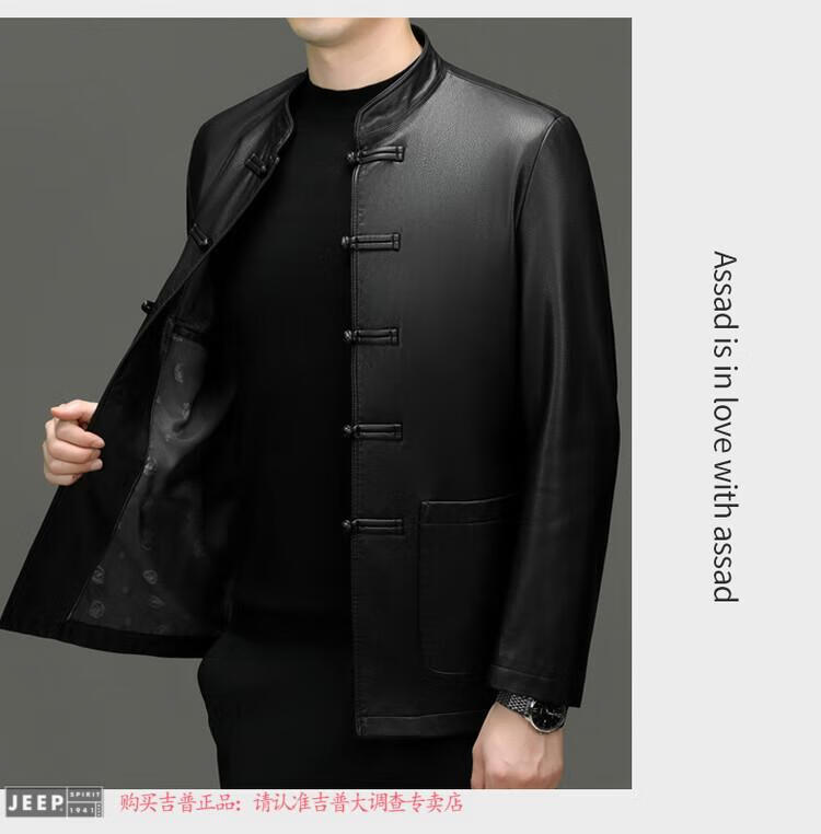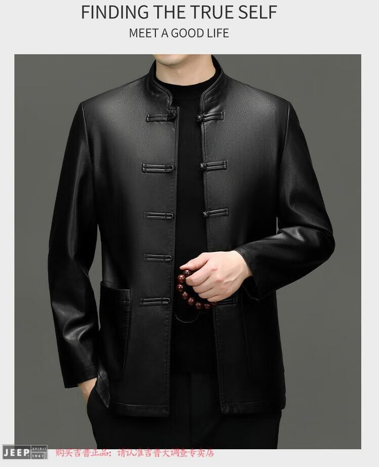 JEEP SPIRIT Spring and Autumn Haining Genuine Leather Jacket Men's First Layer Cowhide Tang Suit Chinese Style Jacket Stand Collar Chinese Style Leather Jacket Thin Black M 170