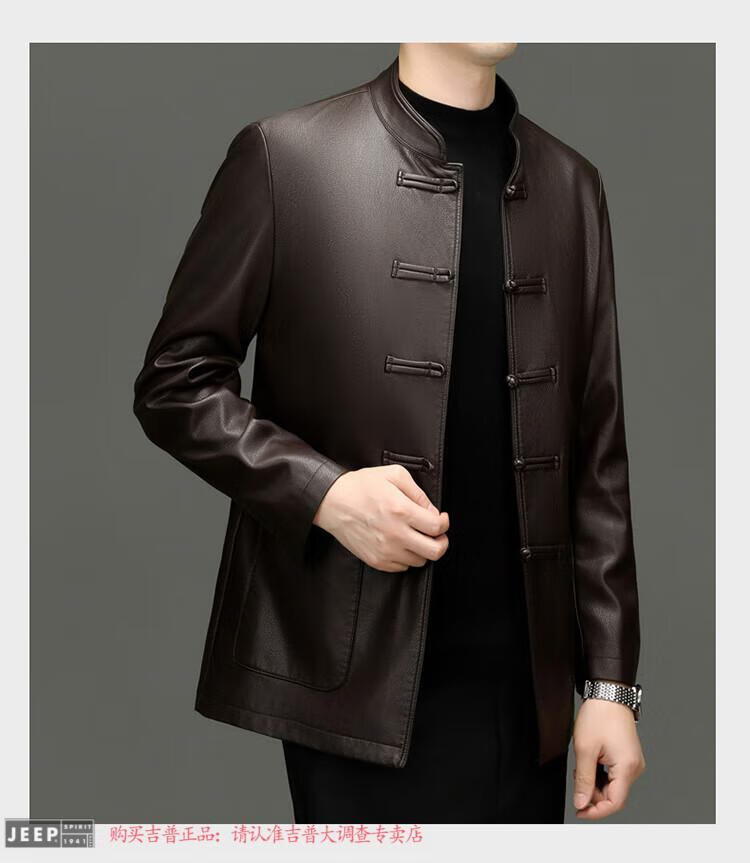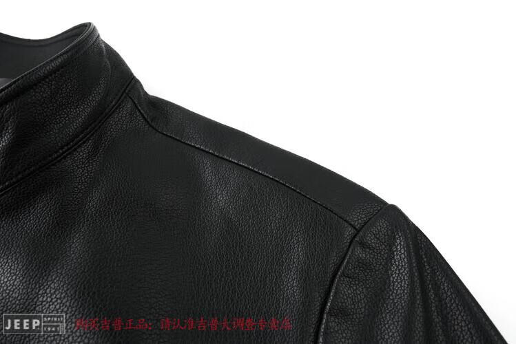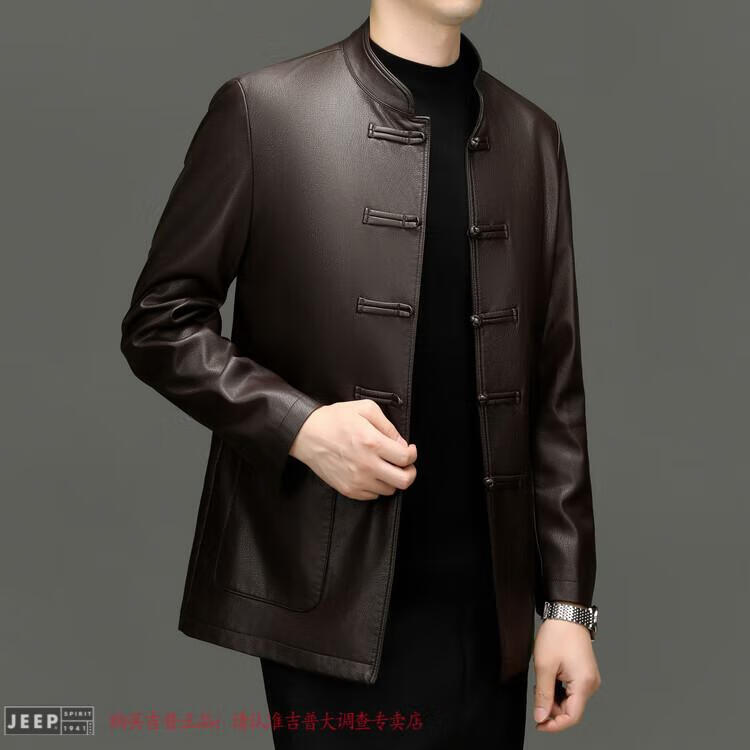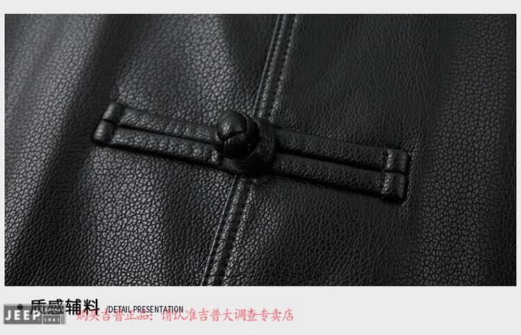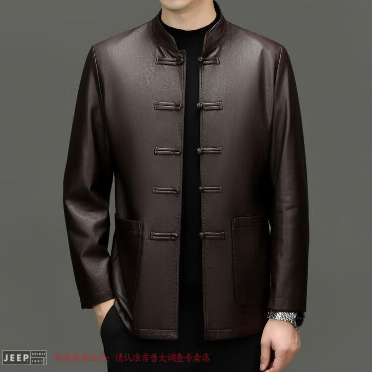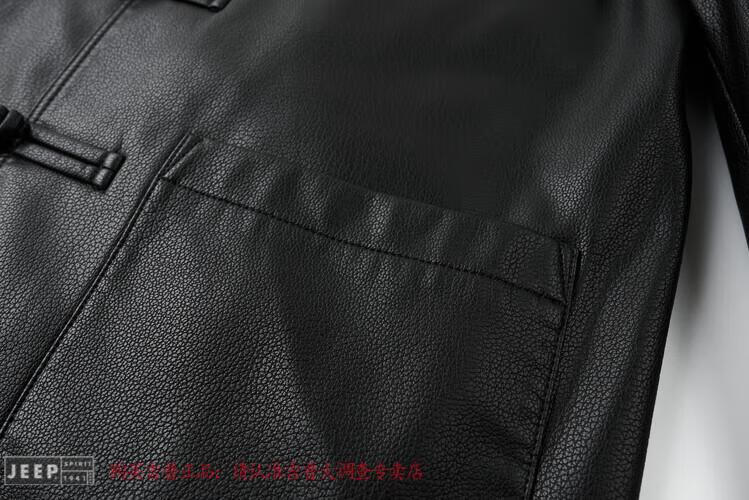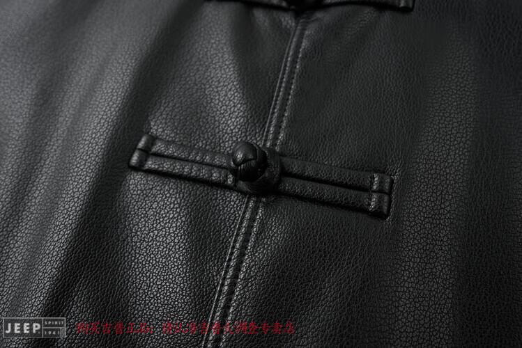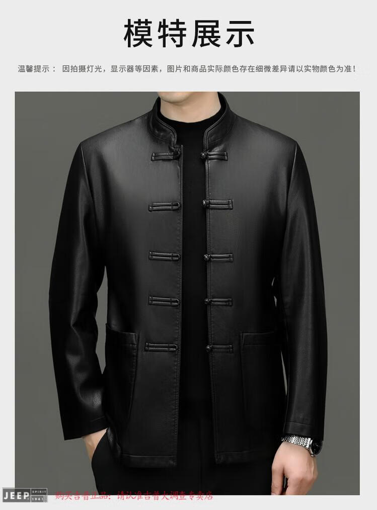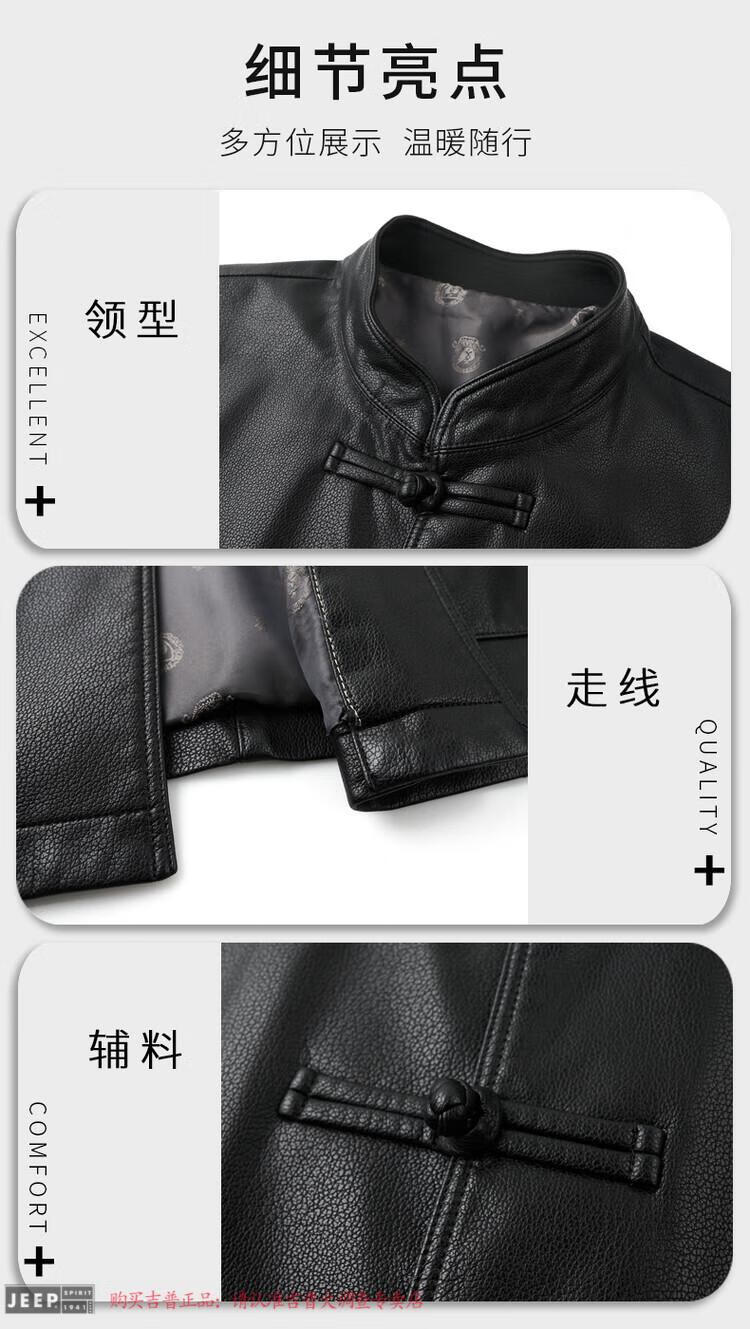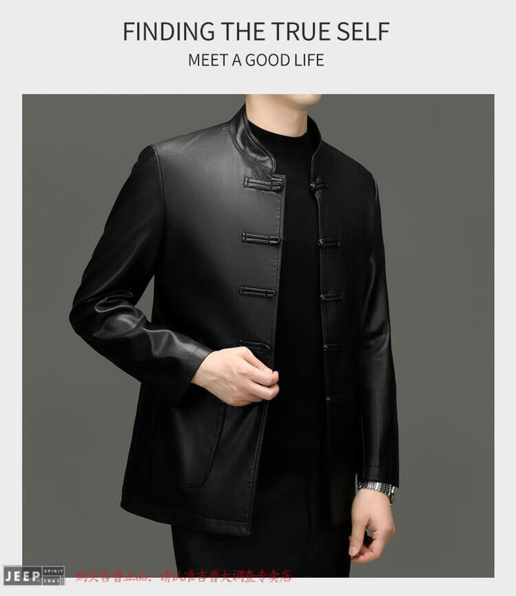 JEEP SPIRIT Spring and Autumn Haining Genuine Leather Jacket Men's First Layer Cowhide Tang Suit Chinese Style Jacket Stand Collar Chinese Style Leather Jacket Thin Black M 170