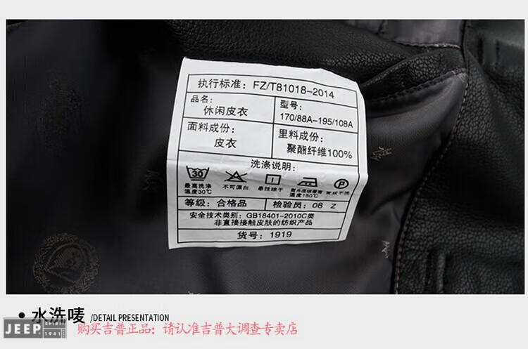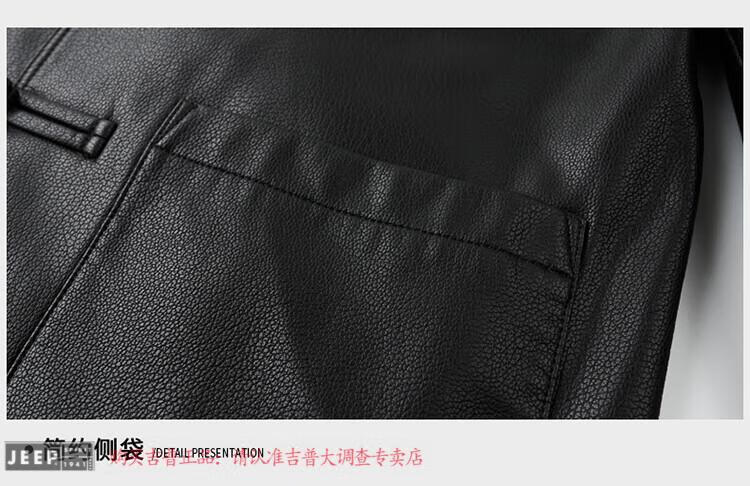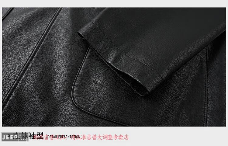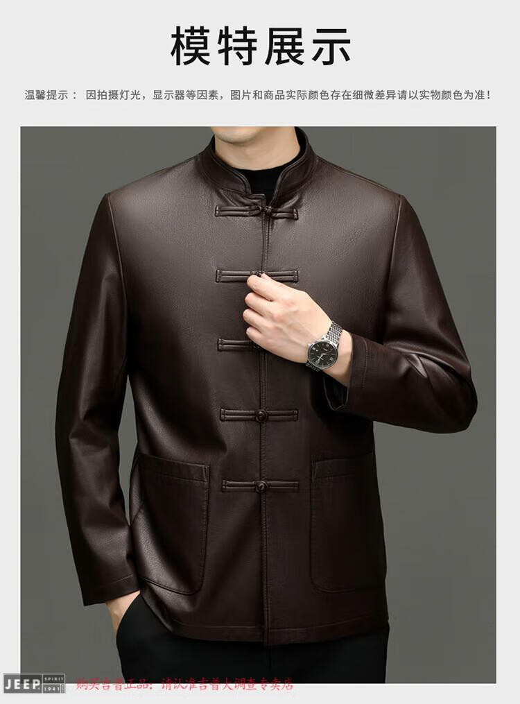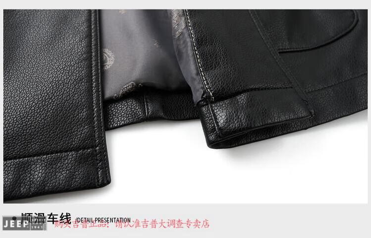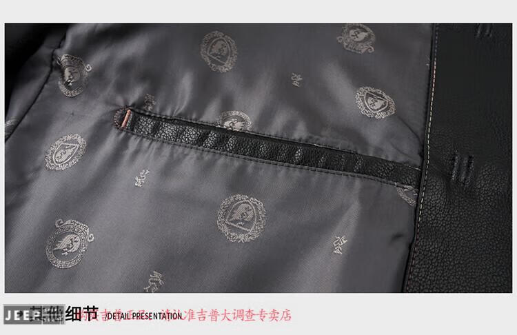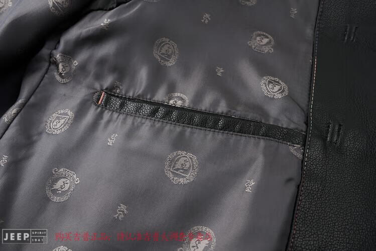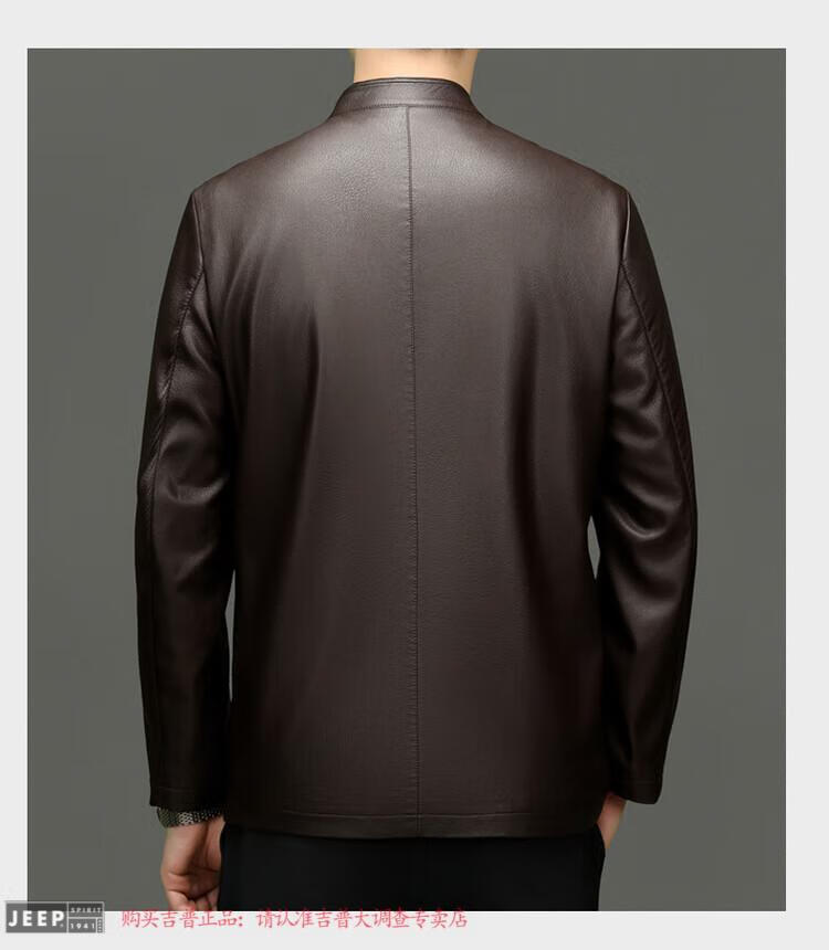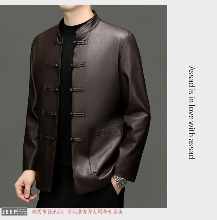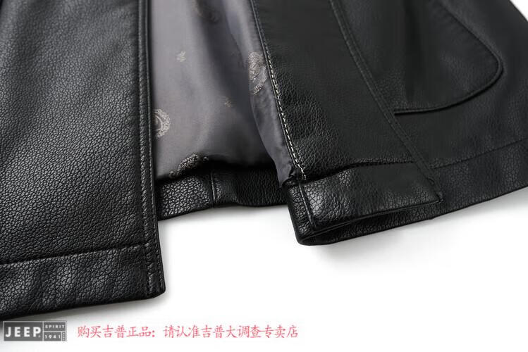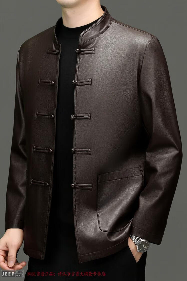 JEEP SPIRIT Spring and Autumn Haining Genuine Leather Jacket Men's First Layer Cowhide Tang Suit Chinese Style Jacket Stand Collar Chinese Style Leather Jacket Thin Black M 170