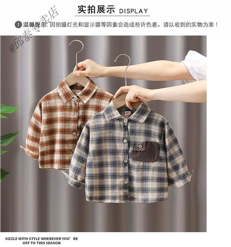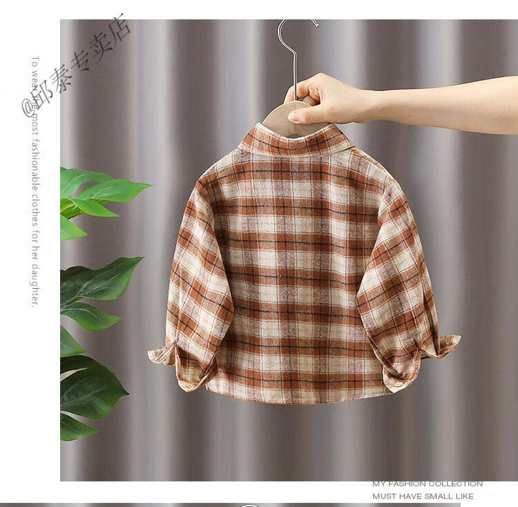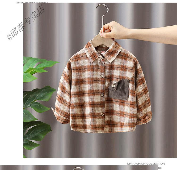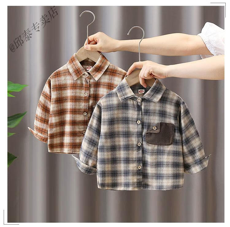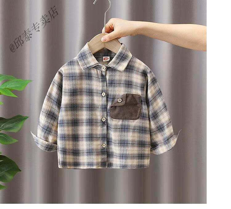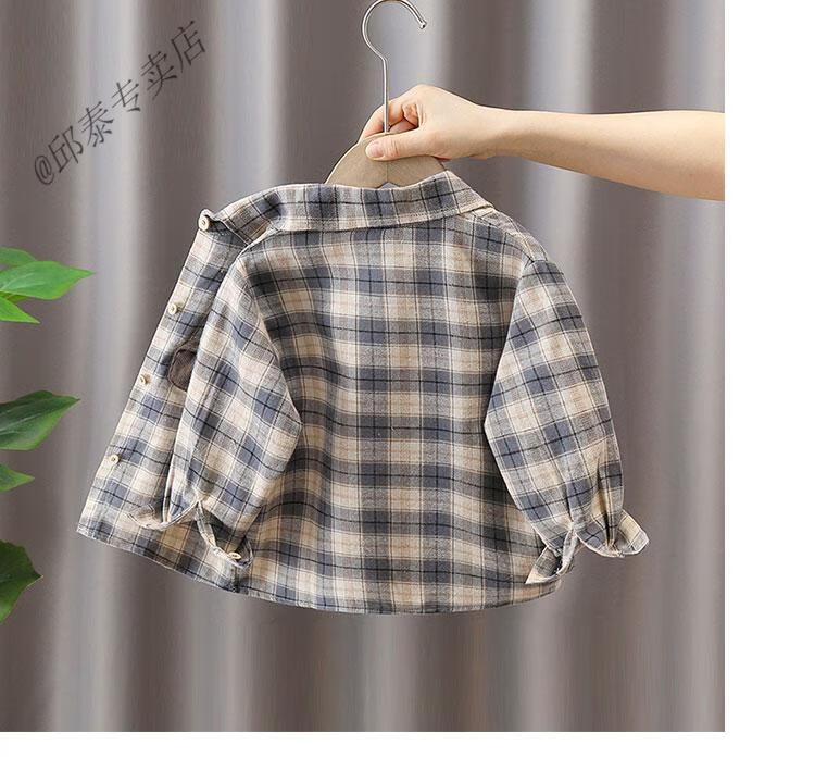 G.duck little yellow duck boys' shirt 2025 new children's tops baby long-sleeved boys autumn plaid shirt blue clothes are too small, need to take a larger size 80 cm