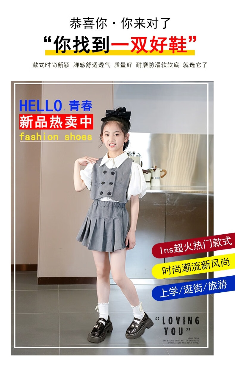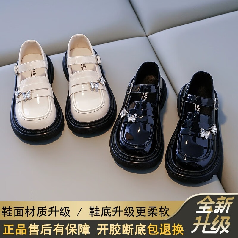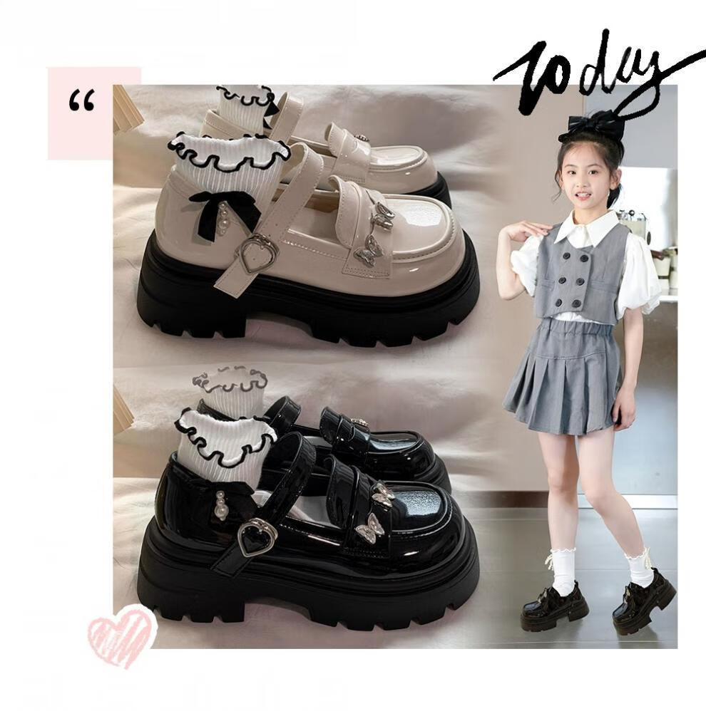 LINBUXAN genuine leather girls' leather shoes 2025 spring and autumn new British style children's black performance shoes princess shoes jk loafers black 26 shoe inner length 16.2cm
