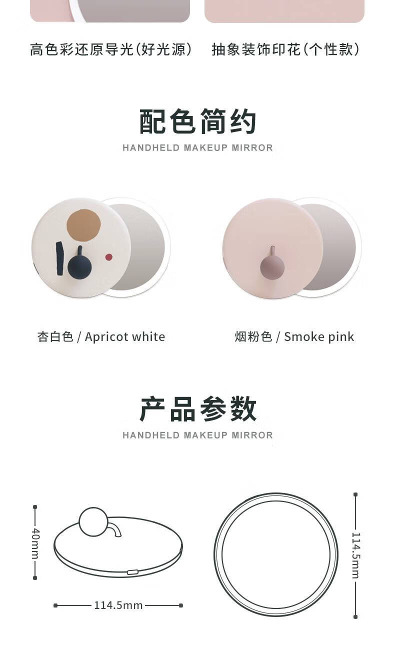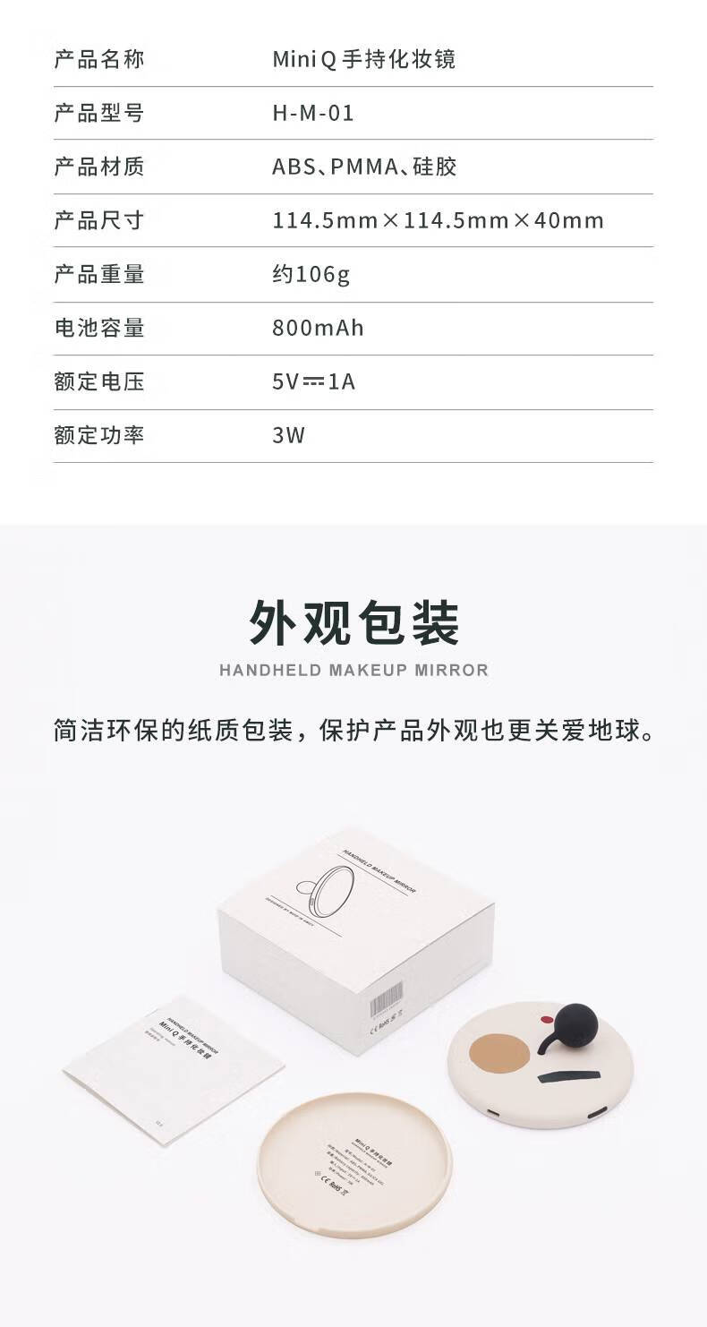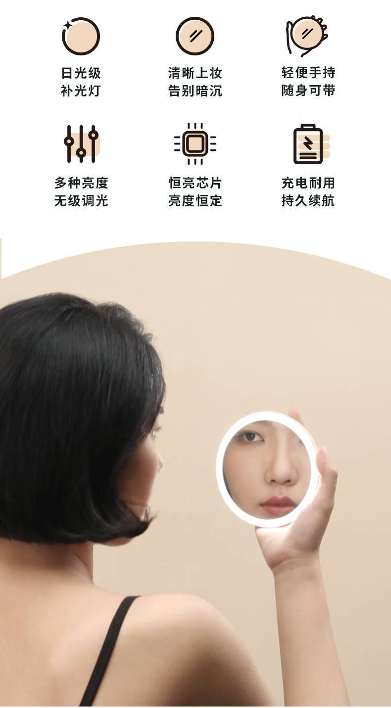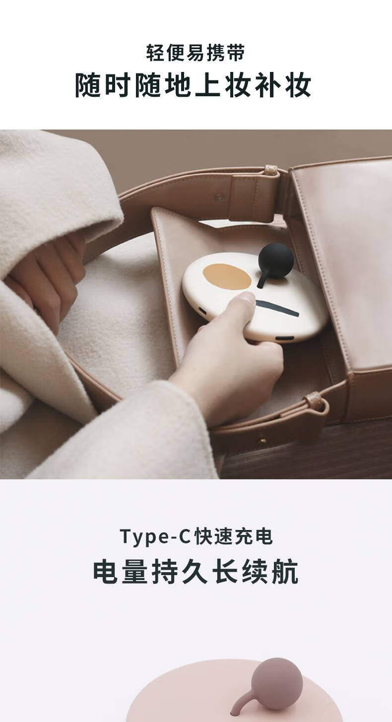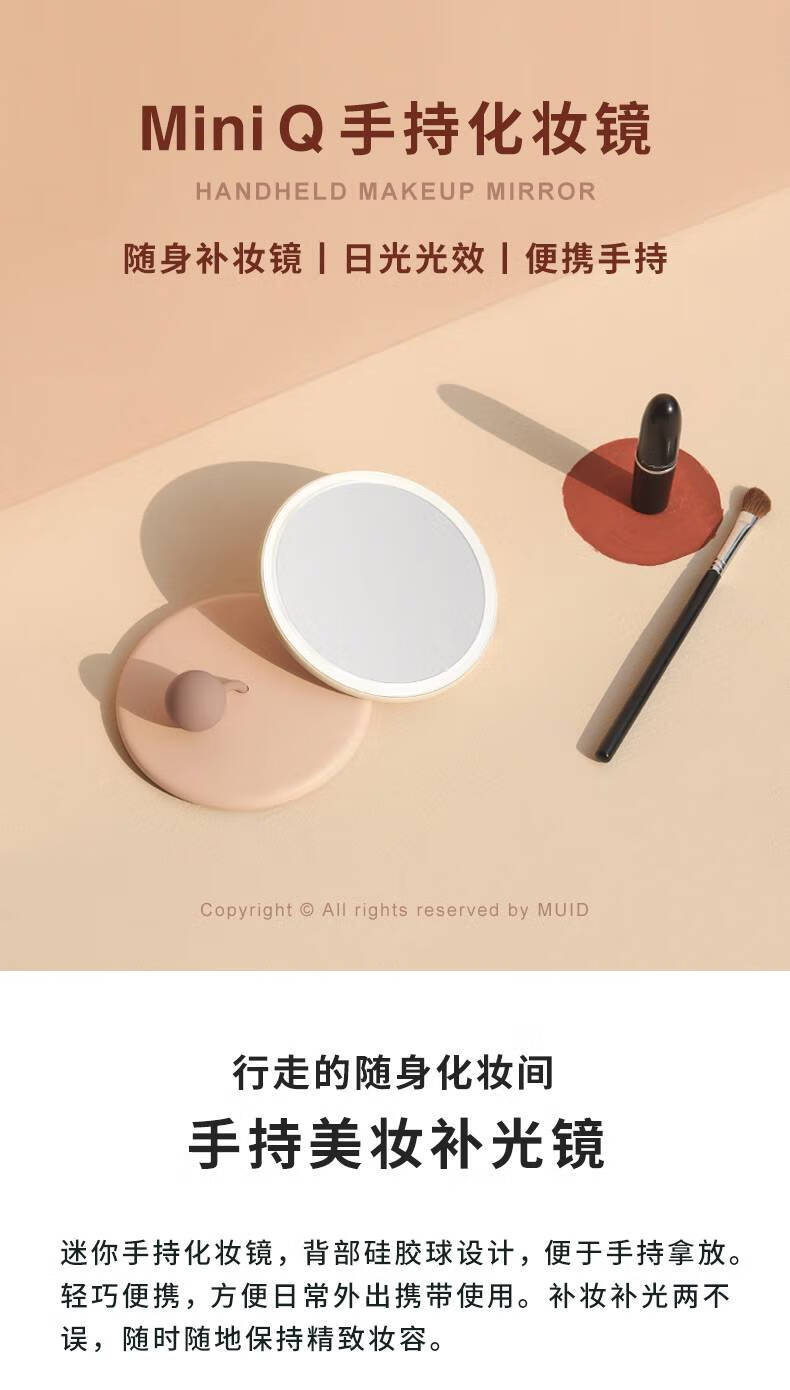 He Jiangong MUID handheld makeup mirror portable charging portable led makeup mirror with light for girls, apricot white, stepless dimming + light lock key + mirror silicone cover