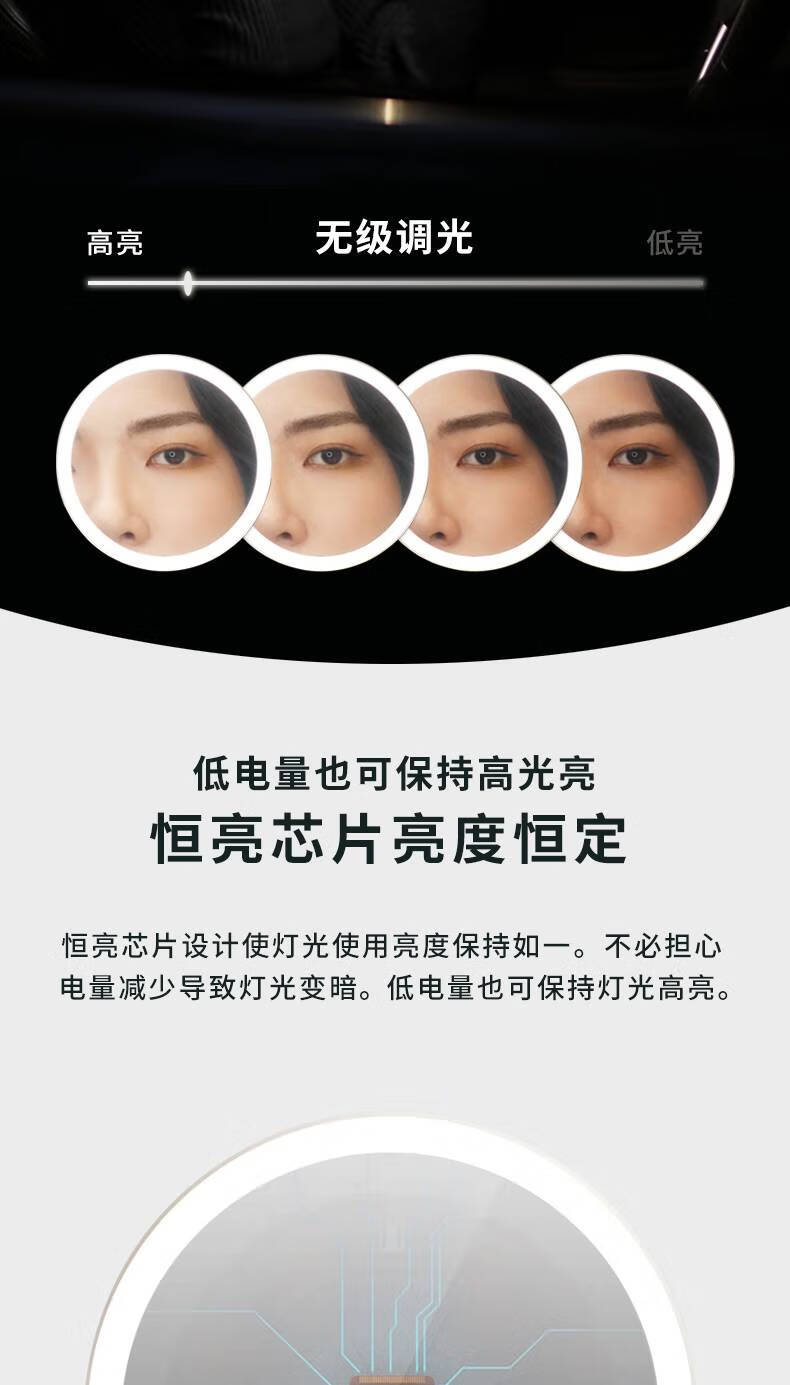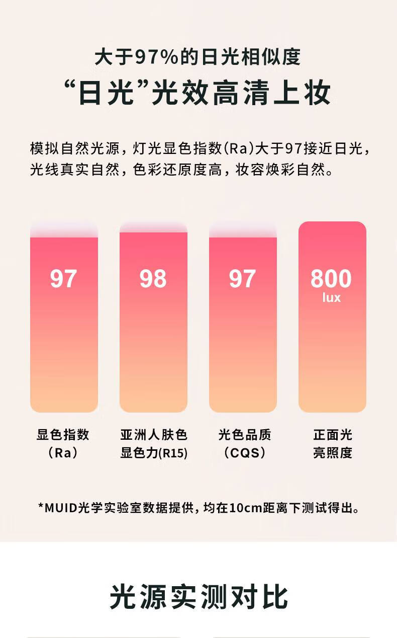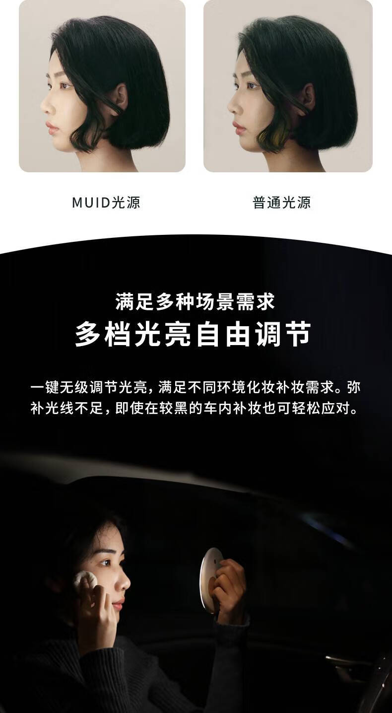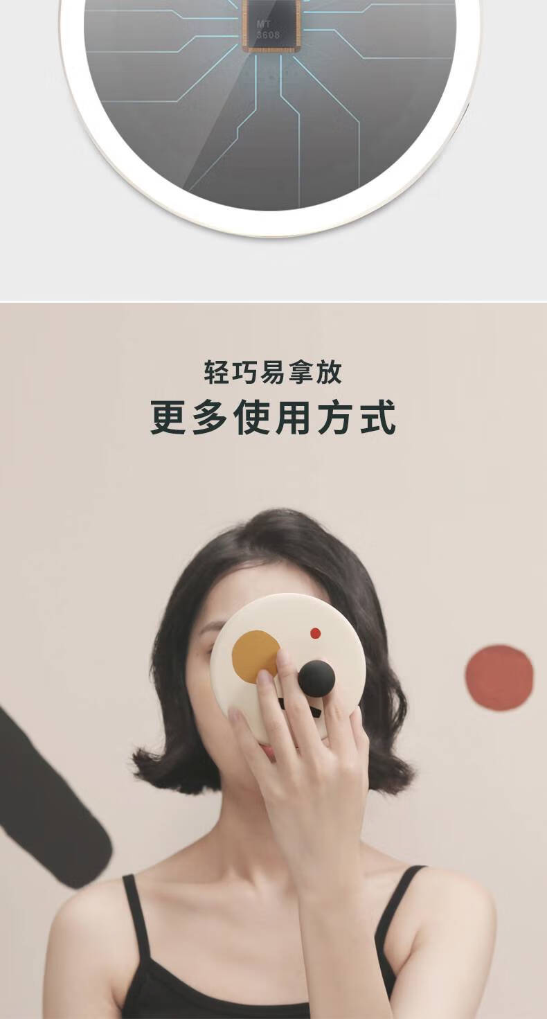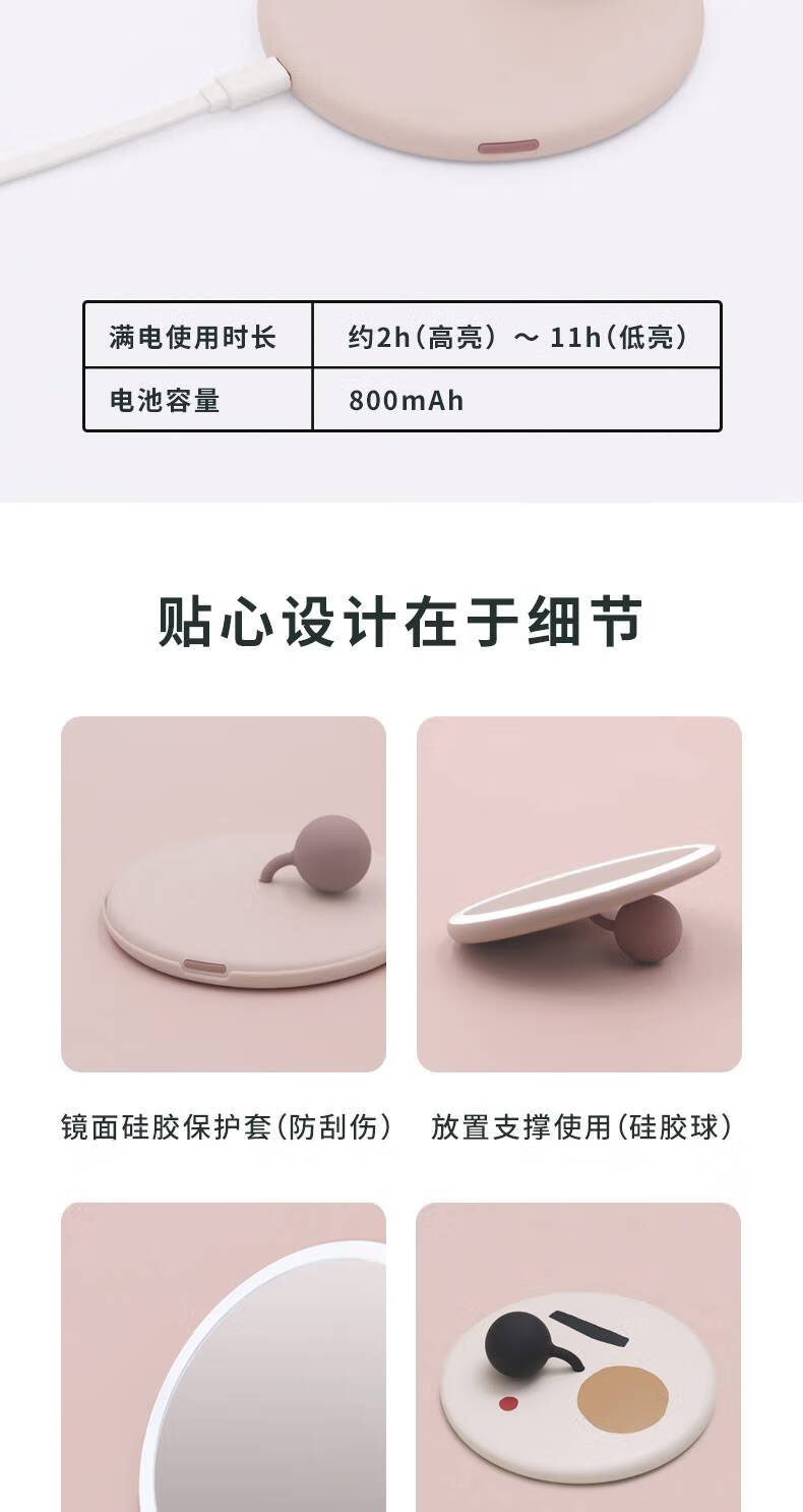 He Jiangong MUID handheld makeup mirror portable charging portable led makeup mirror with light for girls, apricot white, stepless dimming + light lock key + mirror silicone cover