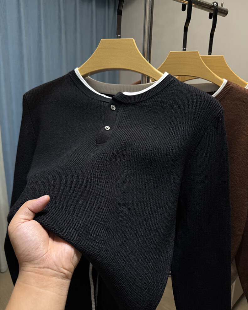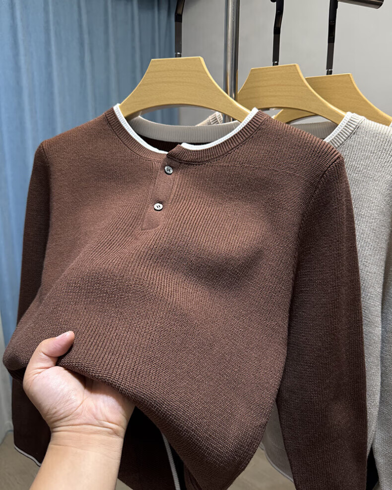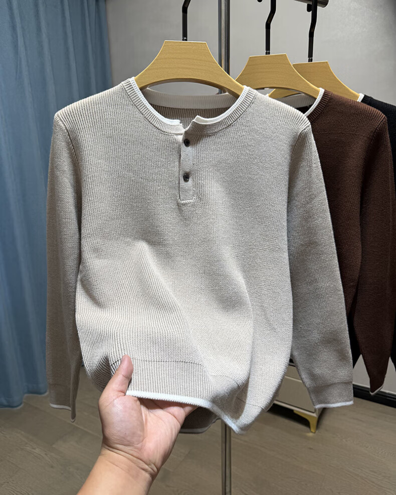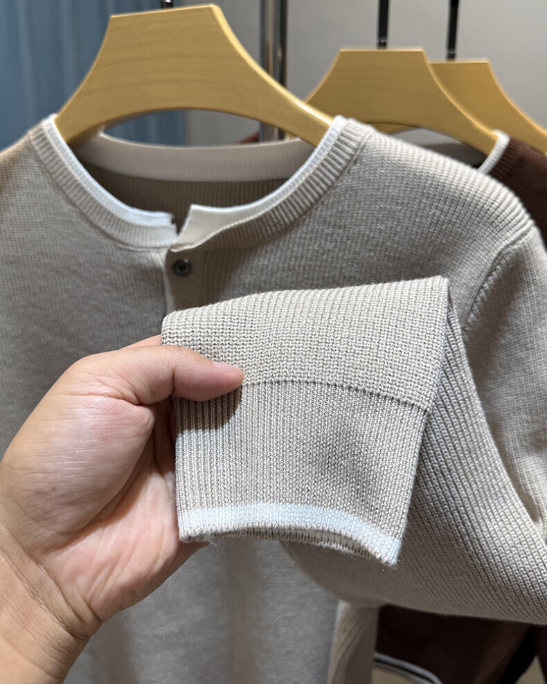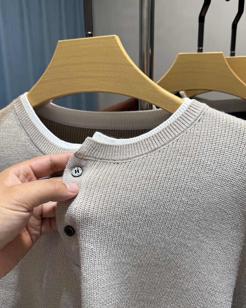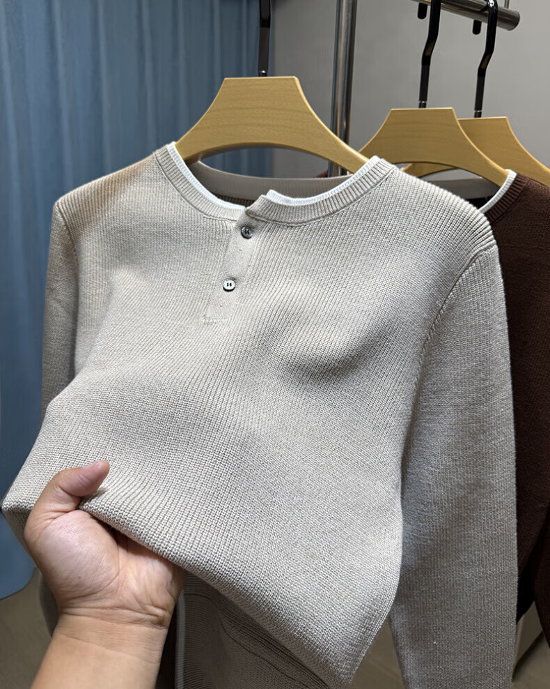 ROMON old money style Henry collar sweater men's long-sleeved bottoming shirt autumn and winter two-button inner thickened warm sweater beige XL 175