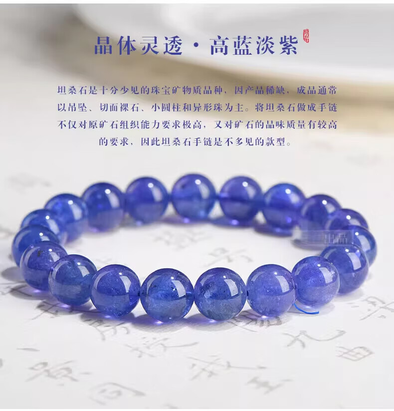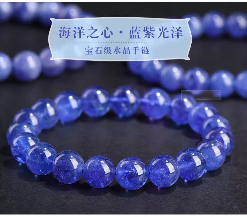 CKRYO luxury high-end collection-grade tanzanite bracelet purple blue bracelet sapphire cordierite crystal gift collection-grade tanzanite bracelet approximately 8mm bead diameter tanzanite