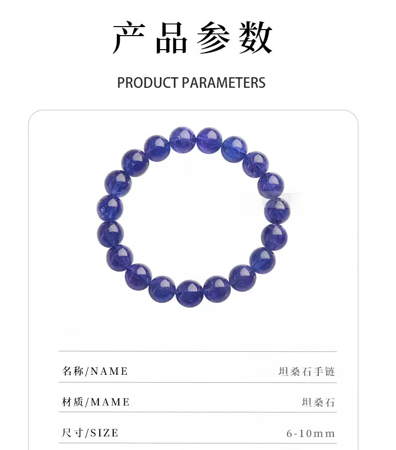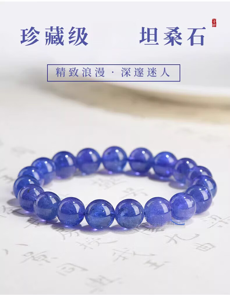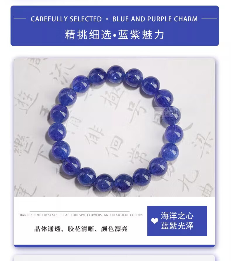 MPLVE luxury high-end collection-grade tanzanite bracelet purple blue bracelet sapphire cordierite crystal gift collection-grade tanzanite bracelet approximately 8mm bead diameter tanzanite