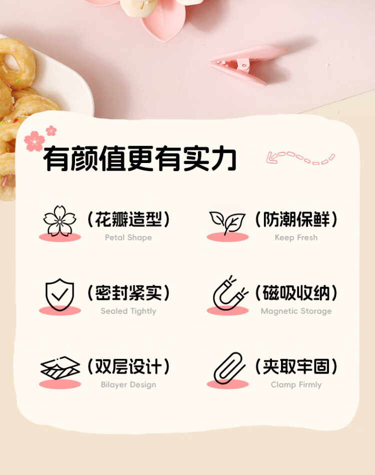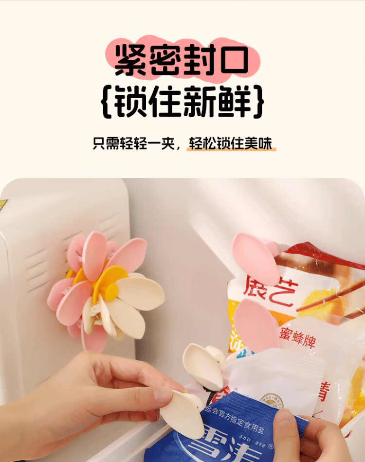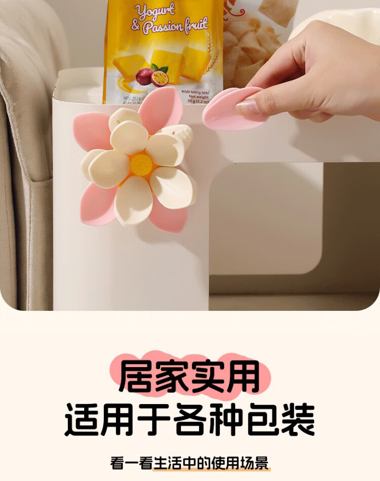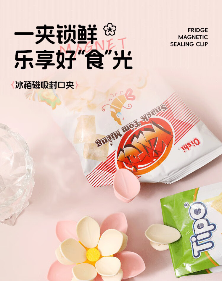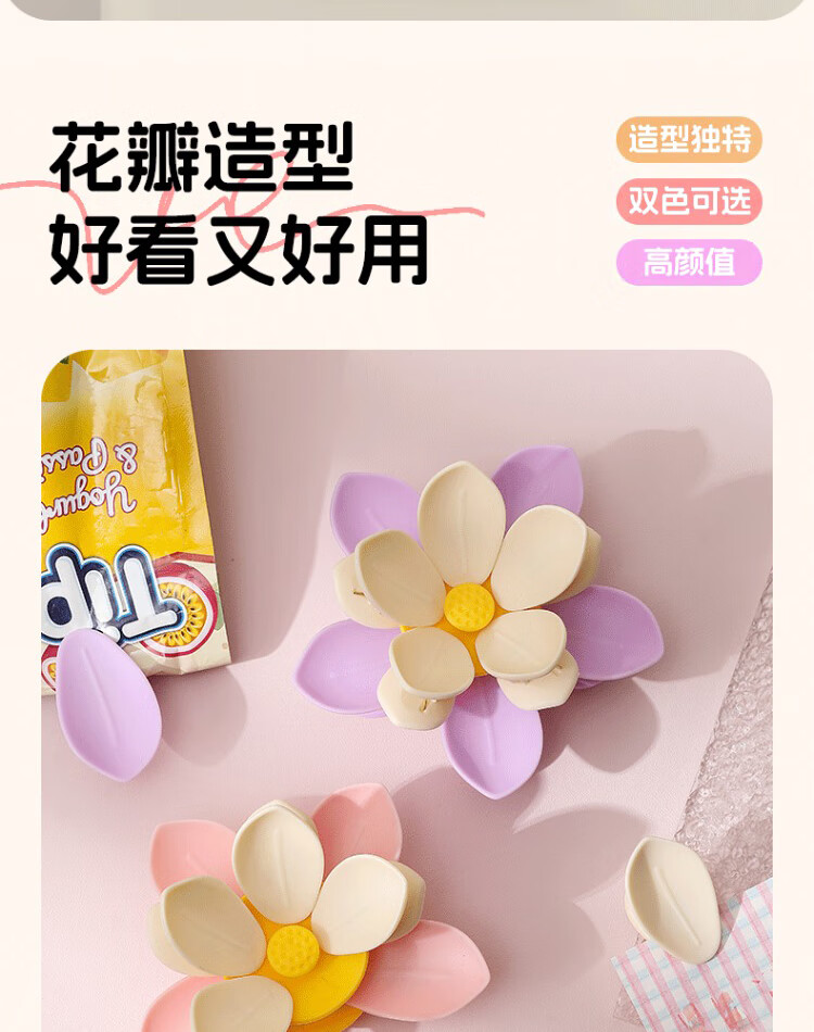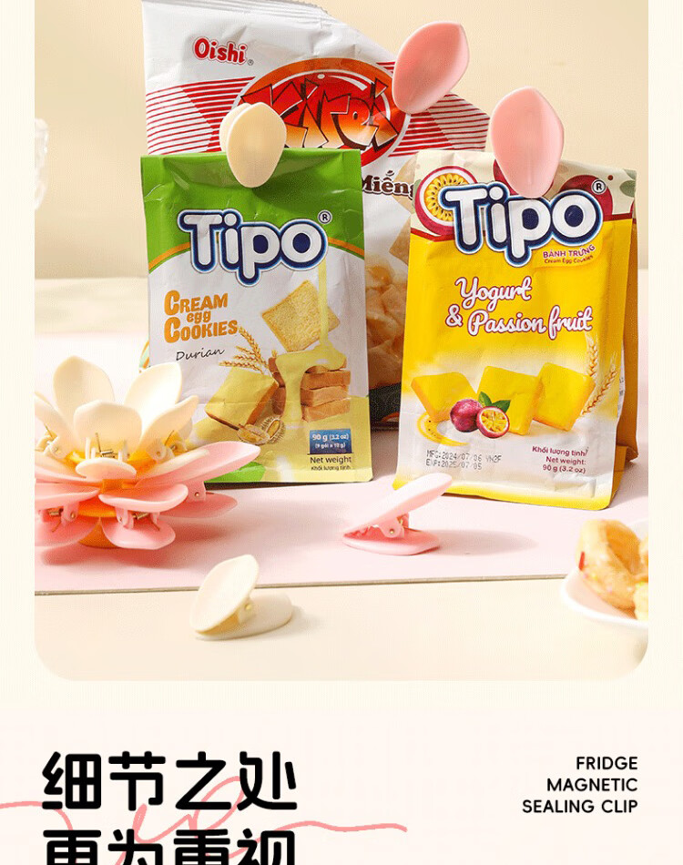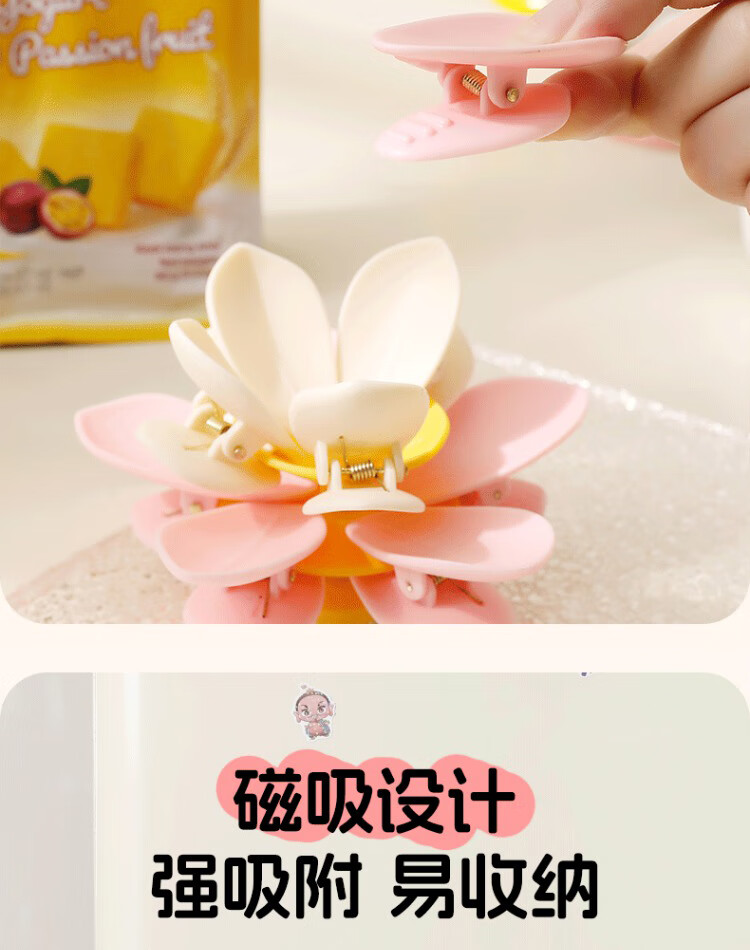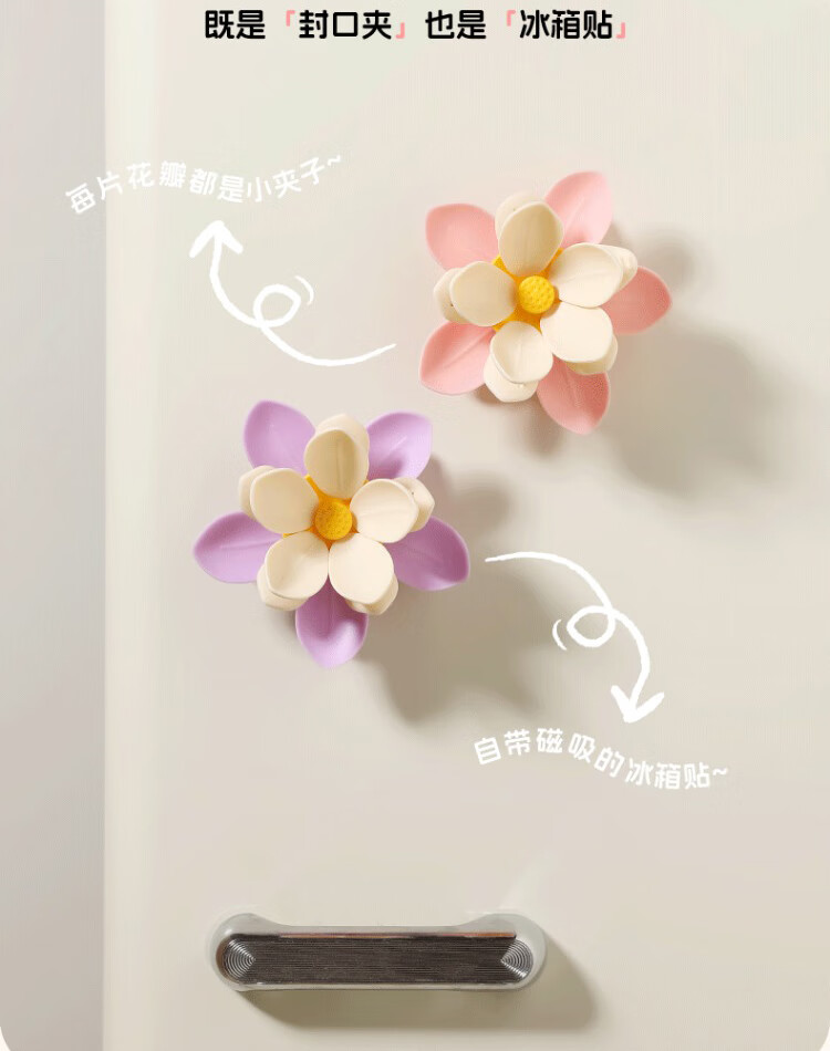Home Baili lotus sealing clip refrigerator magnet food bag clip snack sealing clip flower petal creative 3D three-dimensional magnetic absorption magnetic double-layer purple lotus (10 clips)
