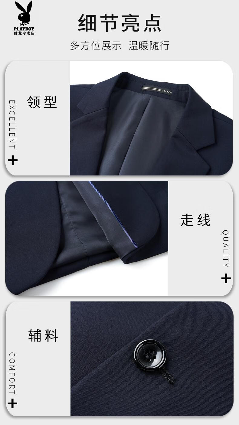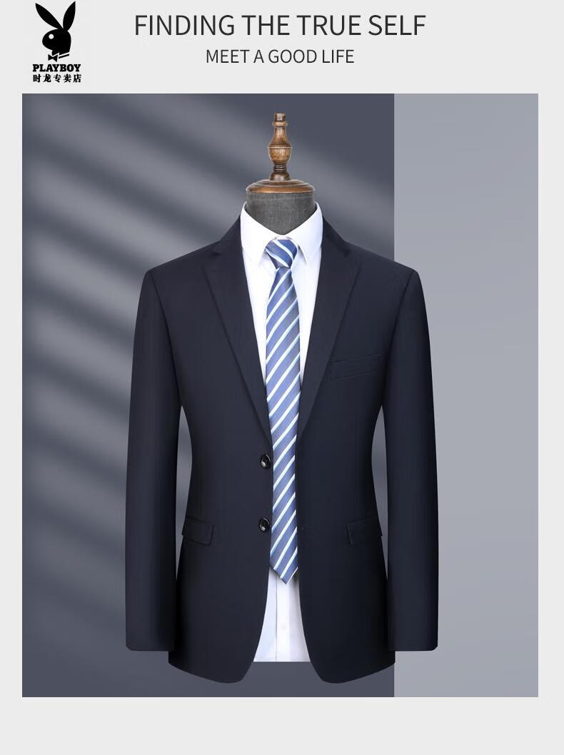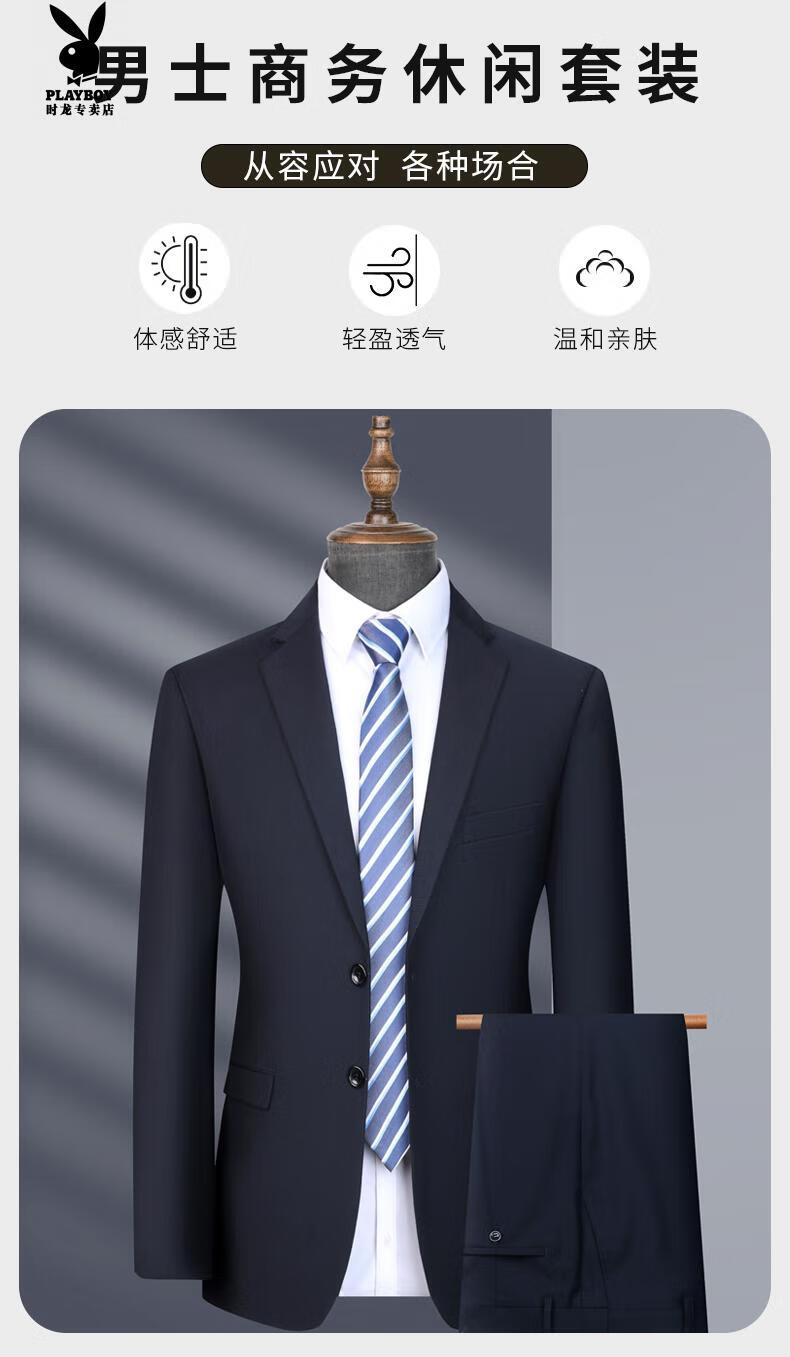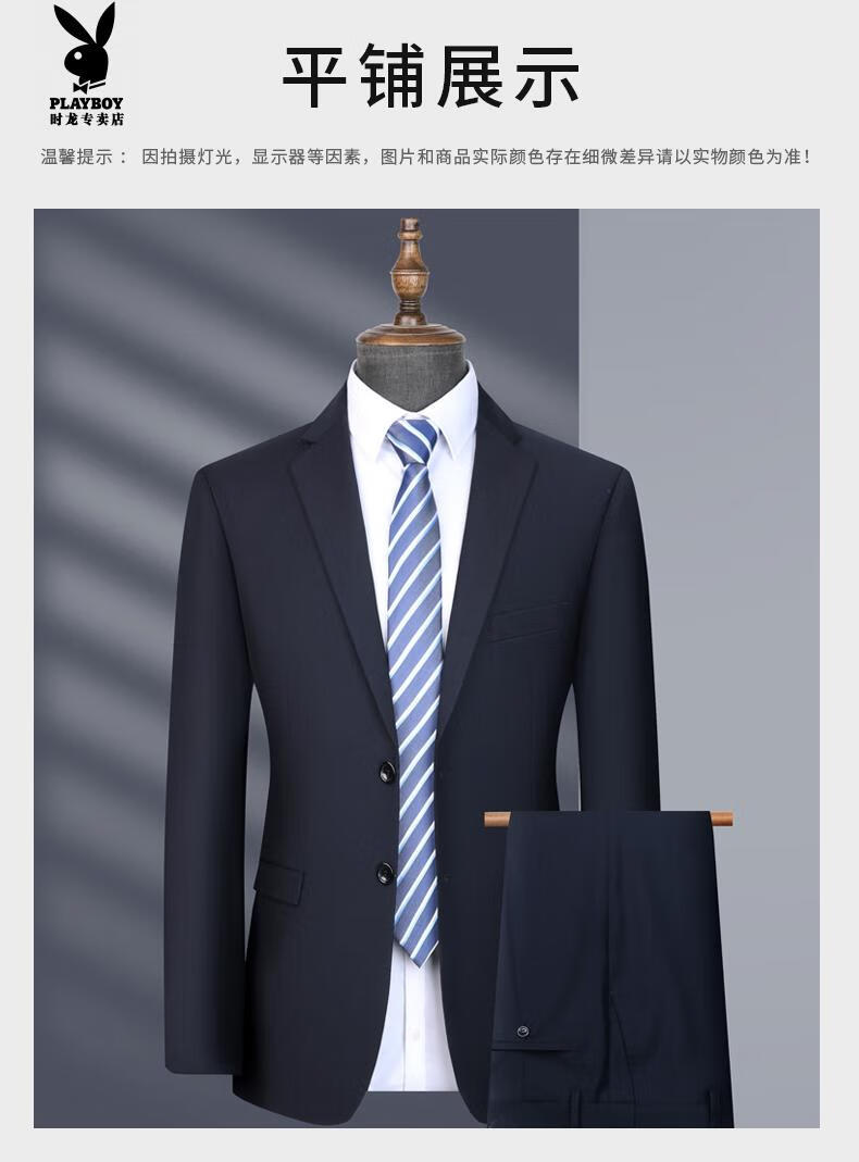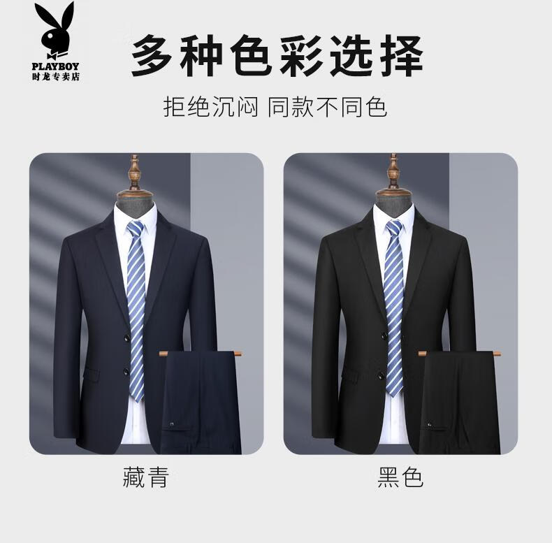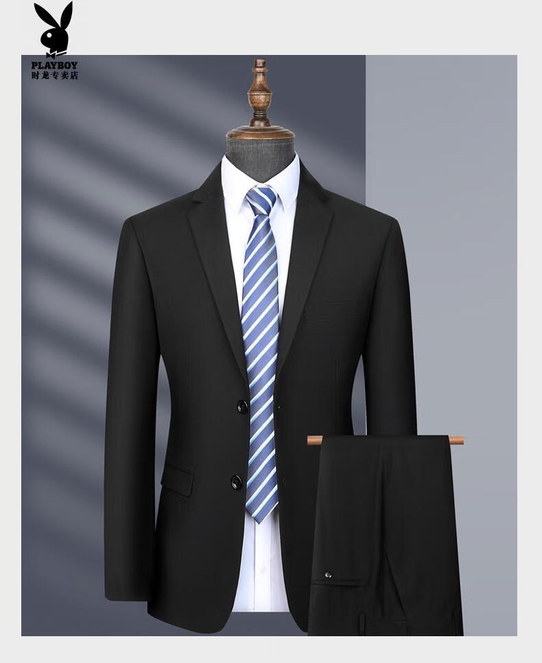 Playboy (PLAYBOY) high-end suit men's spring and autumn 2025 new middle-aged business casual marriage slim suit two-piece suit black + pants 4XL 195/108A recommended 190-205Jin Jin equals 0.5 kg