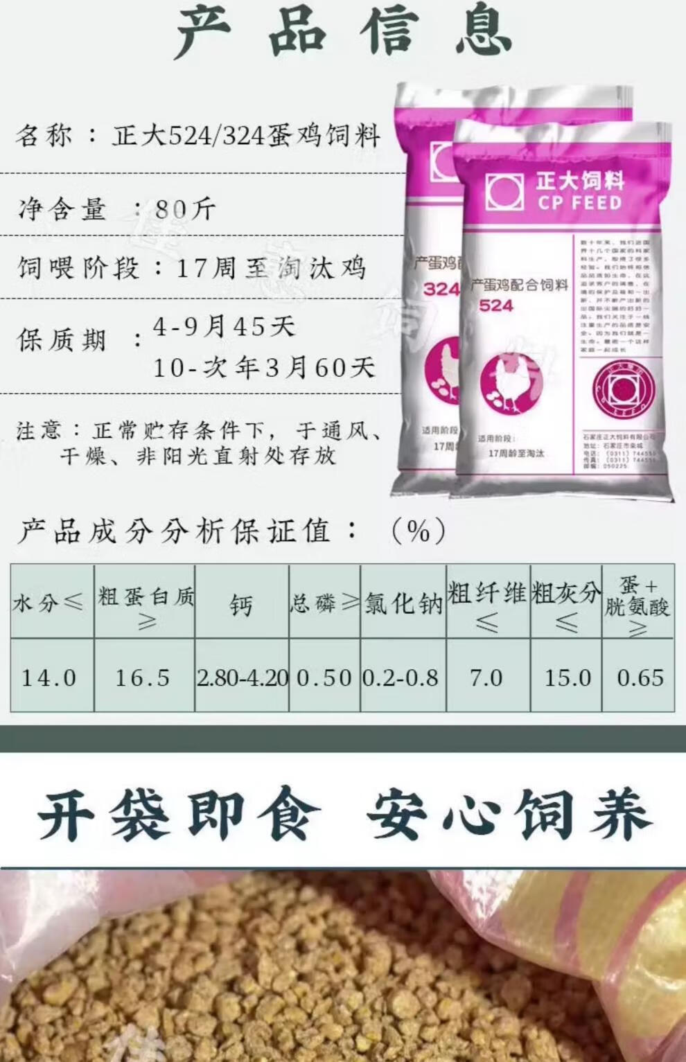CP Food 324 Laying Hen Feed Laying Hen Full Price Egg Production Pellets Corn Kernel Feed Chicken Feed Large Chicken 80 Jin Jin is equal to 0.5 kg CP 524 Adult Chicken Pellets 80 Jin Jin is equal to 0.5 kg