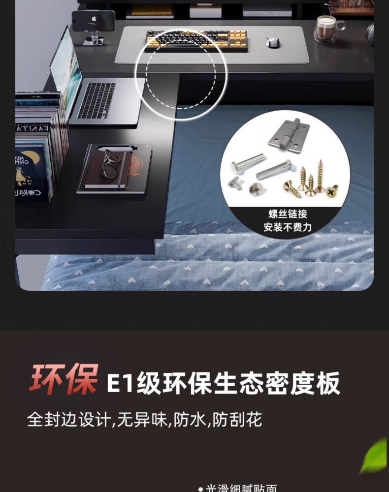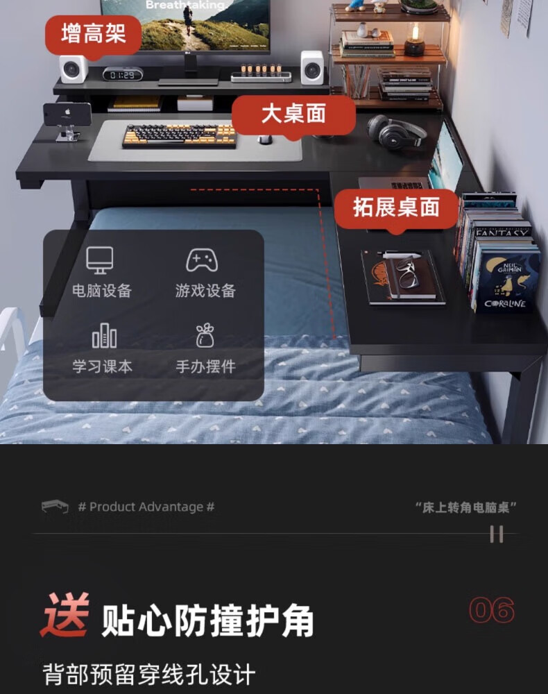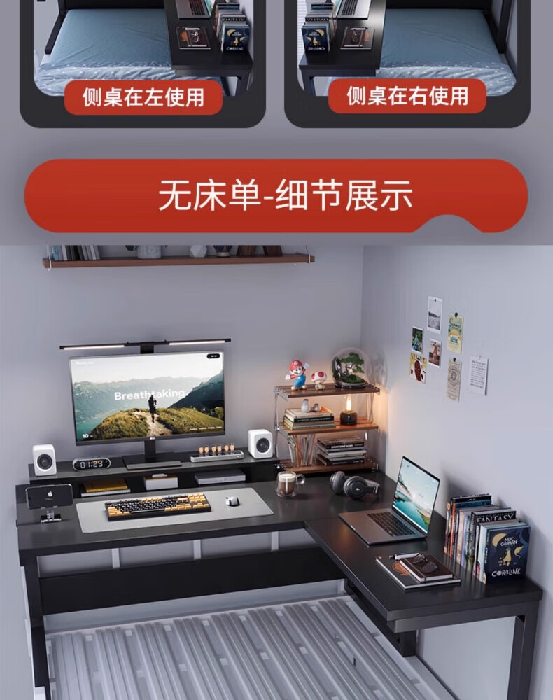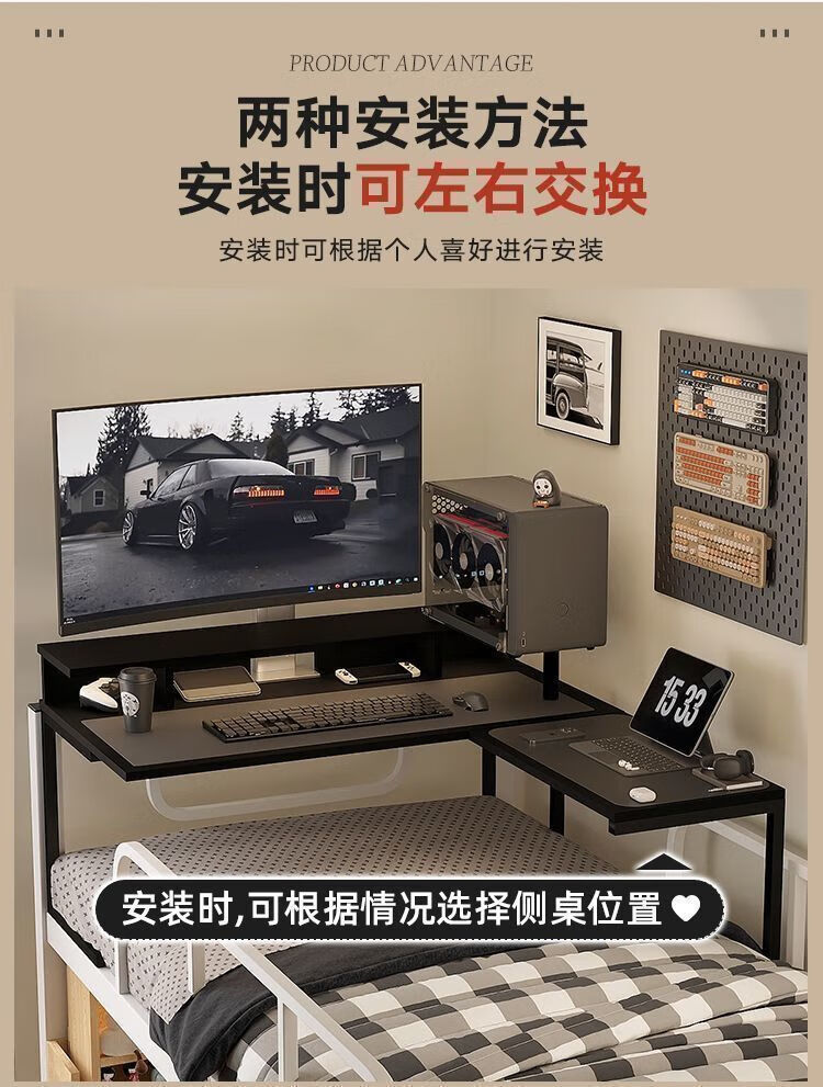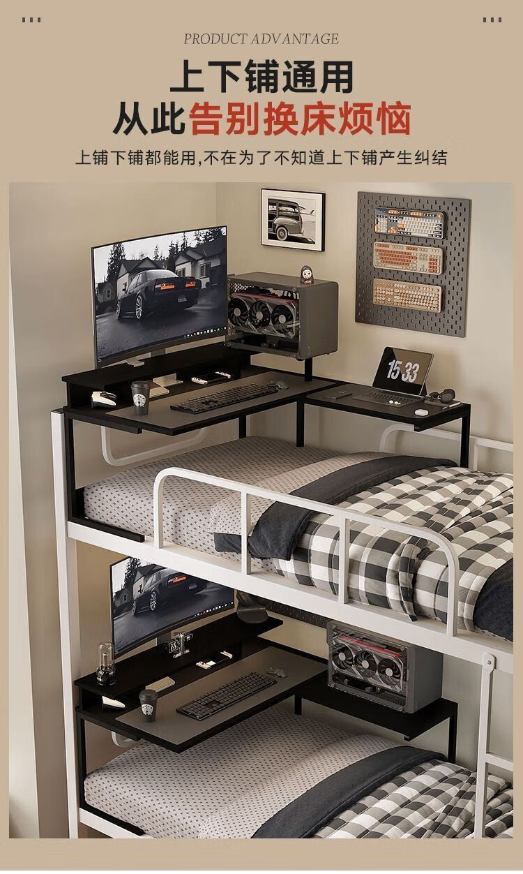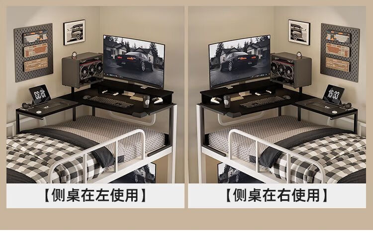 Pupai dormitory bed desk dormitory bed computer desk college student bunk bed lazy desk corner game computer table corner model 15MM thick desktop + elevated shelf charcoal black 90cm