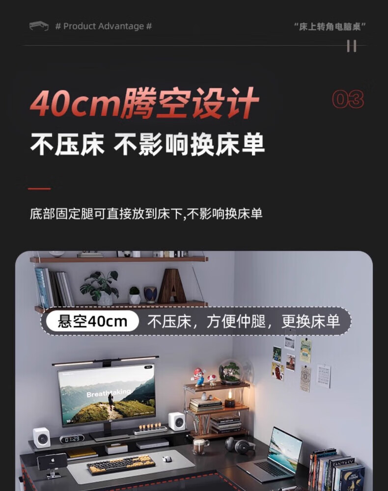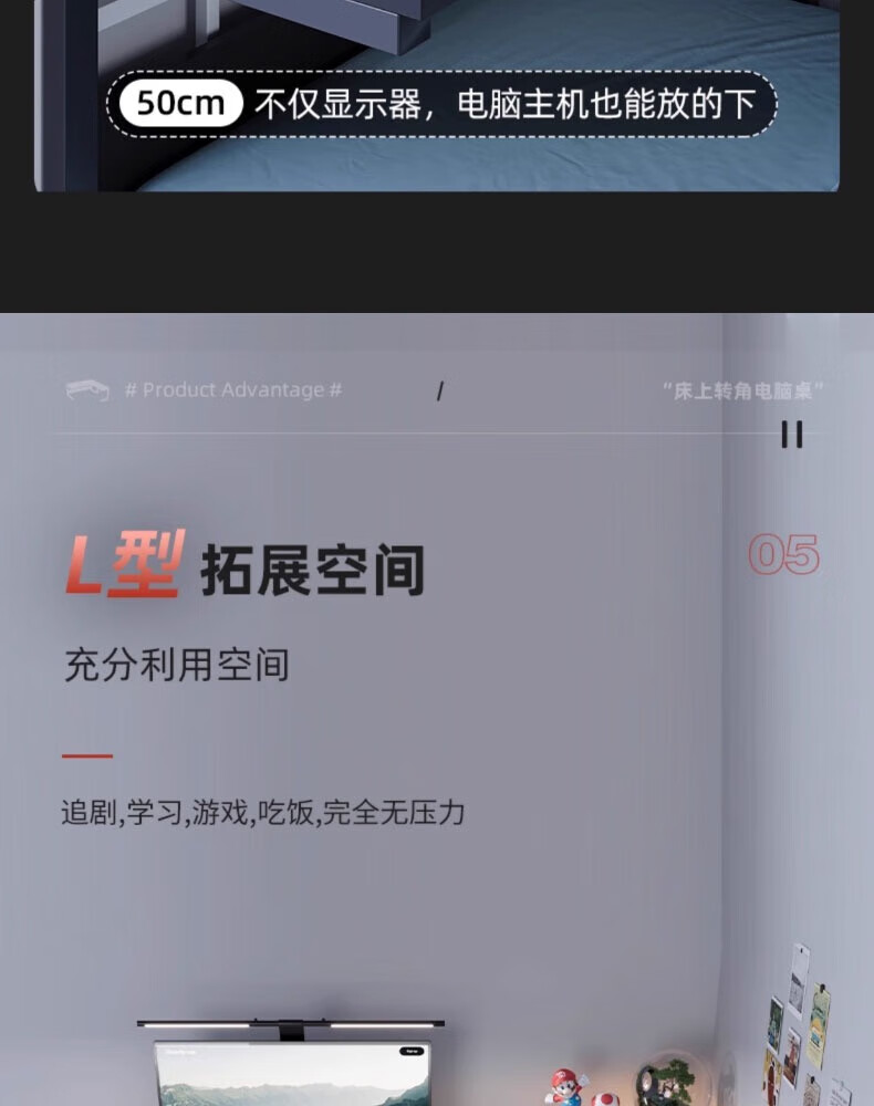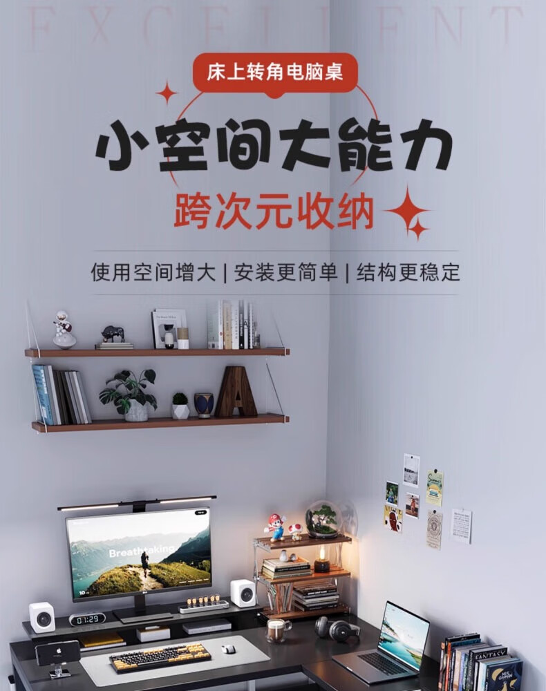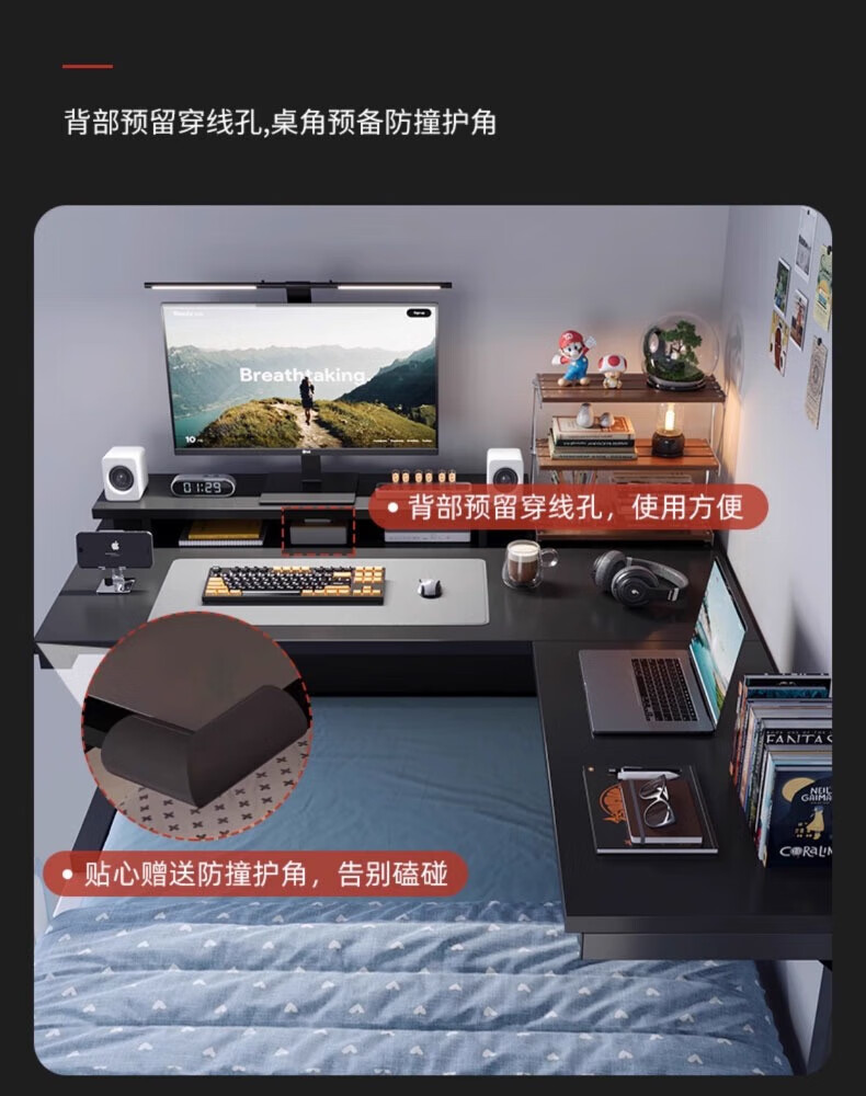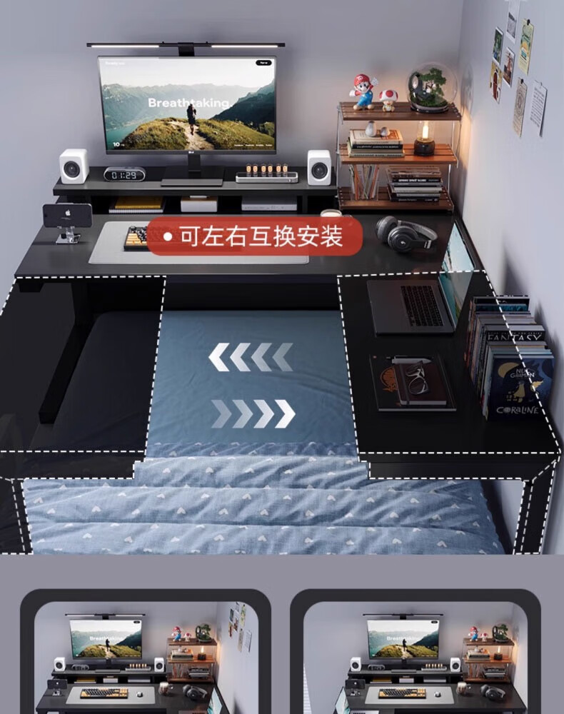 Pupai dormitory bed desk dormitory bed computer desk college student bunk bed lazy desk corner game computer table corner model 15MM thick desktop + elevated shelf charcoal black 90cm