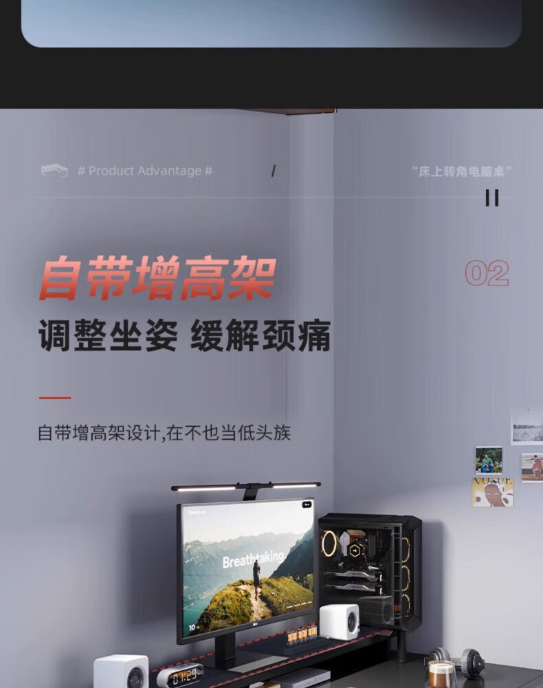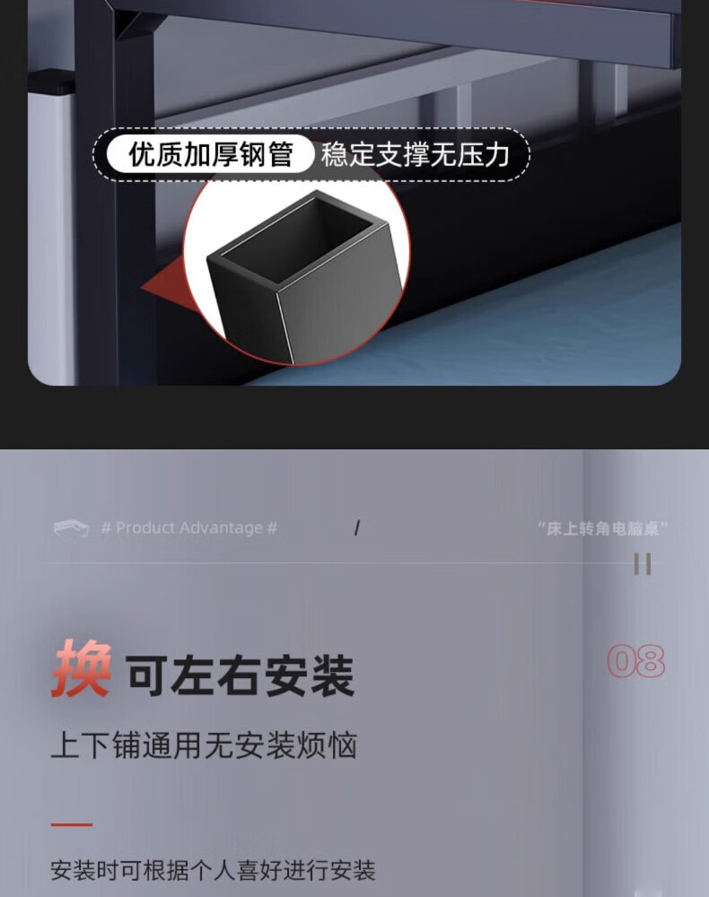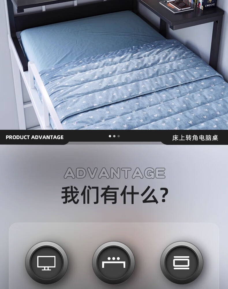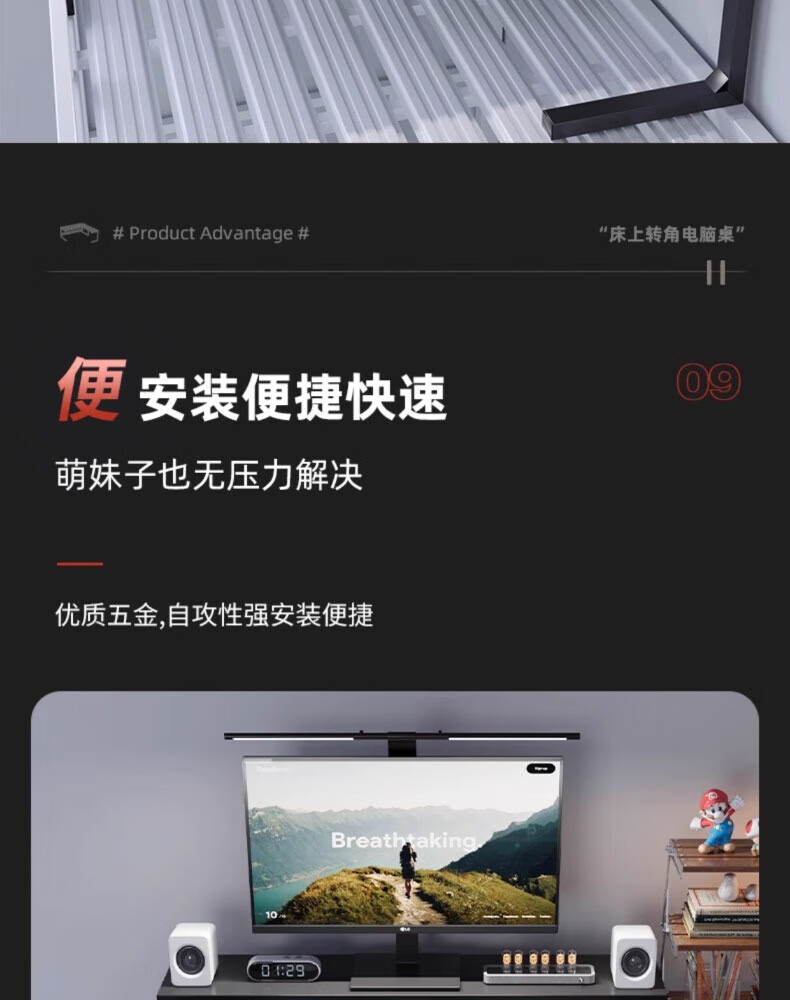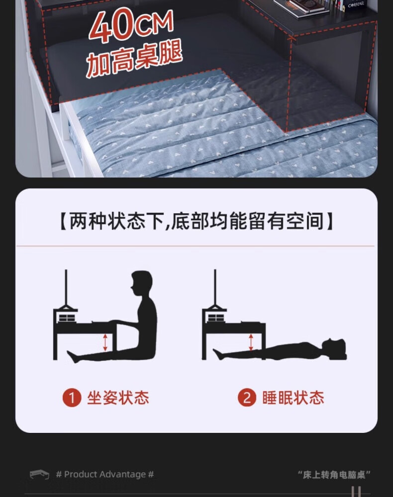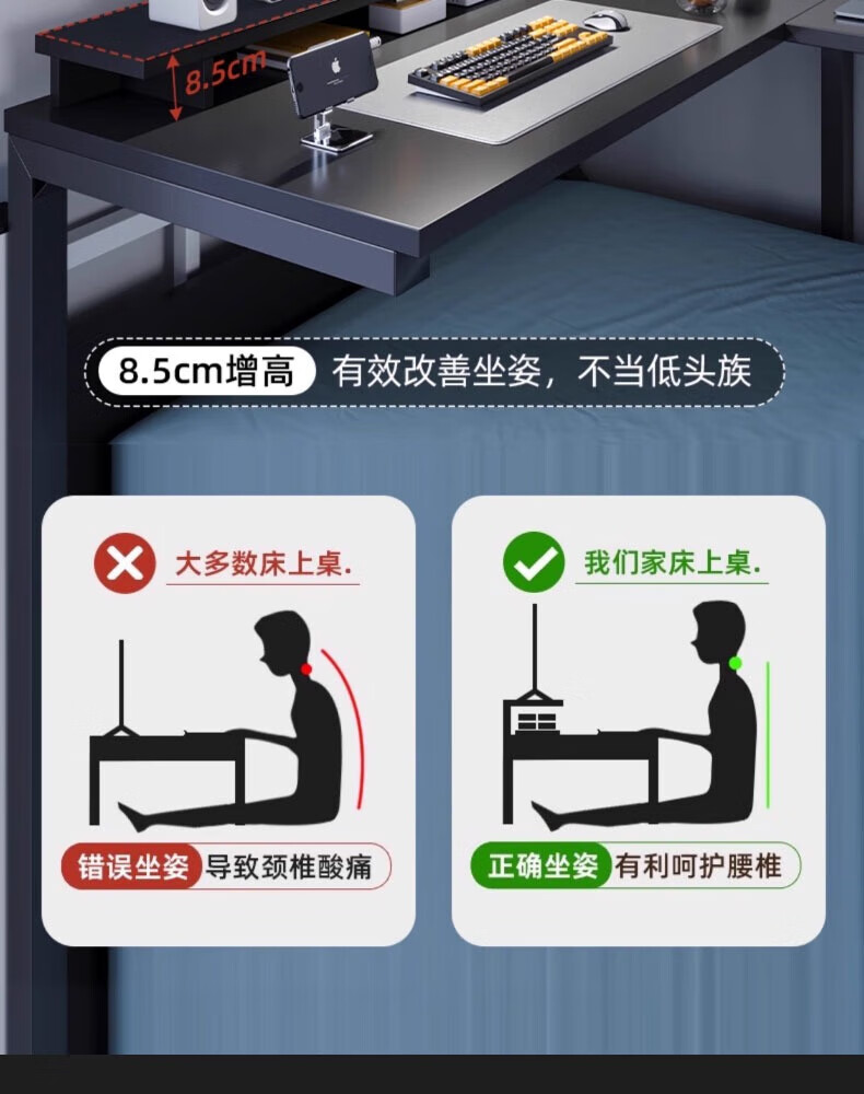 Pupai dormitory bed desk dormitory bed computer desk college student bunk bed lazy desk corner game computer table corner model 15MM thick desktop + elevated shelf charcoal black 90cm