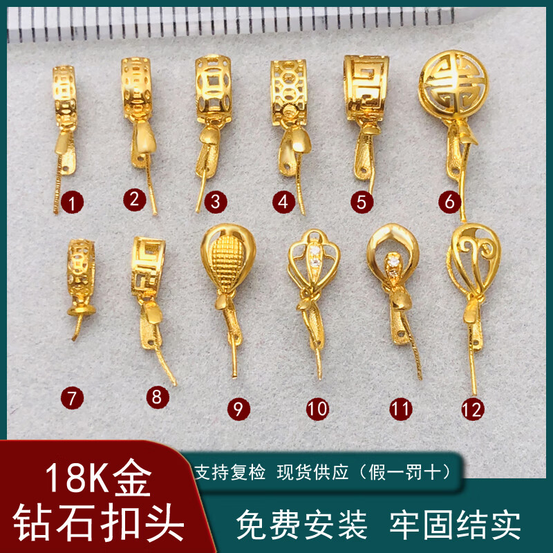 18k gold buckle melon seed buckle emerald beeswax pendant buckle money blessing clip buckle Au750 Ruyi gold buckle accessories hollow style thickened