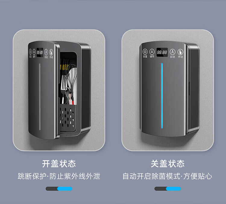 Huli German chopstick sterilization and drying all-in-one machine for smart home high-end new cage wall-mounted stainless steel spoon storage without star rating 1L graphite black upgraded model high temperature drying + intelligent sterilization + mildew prevention plug-in